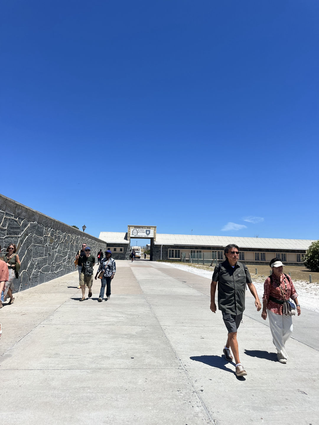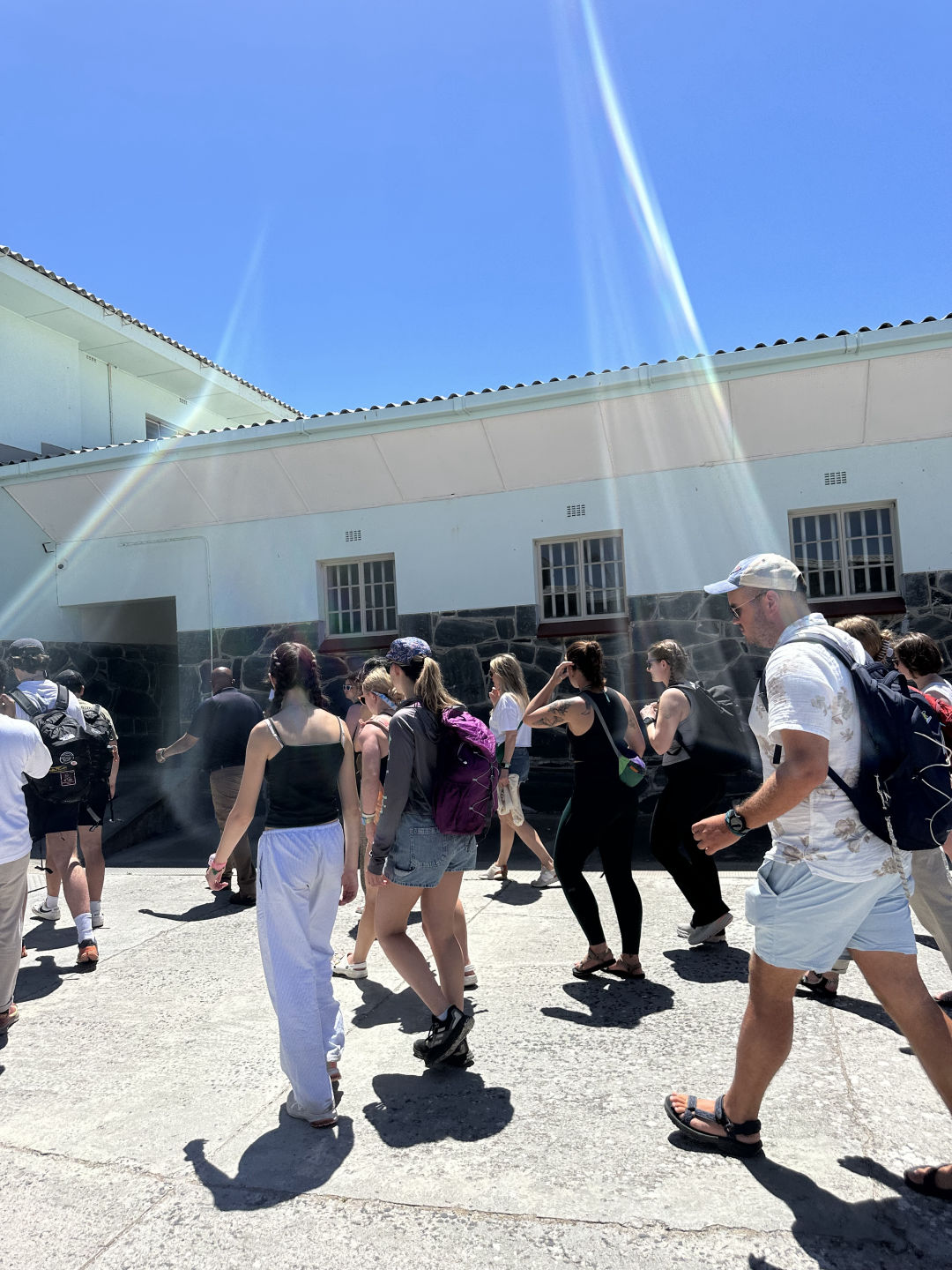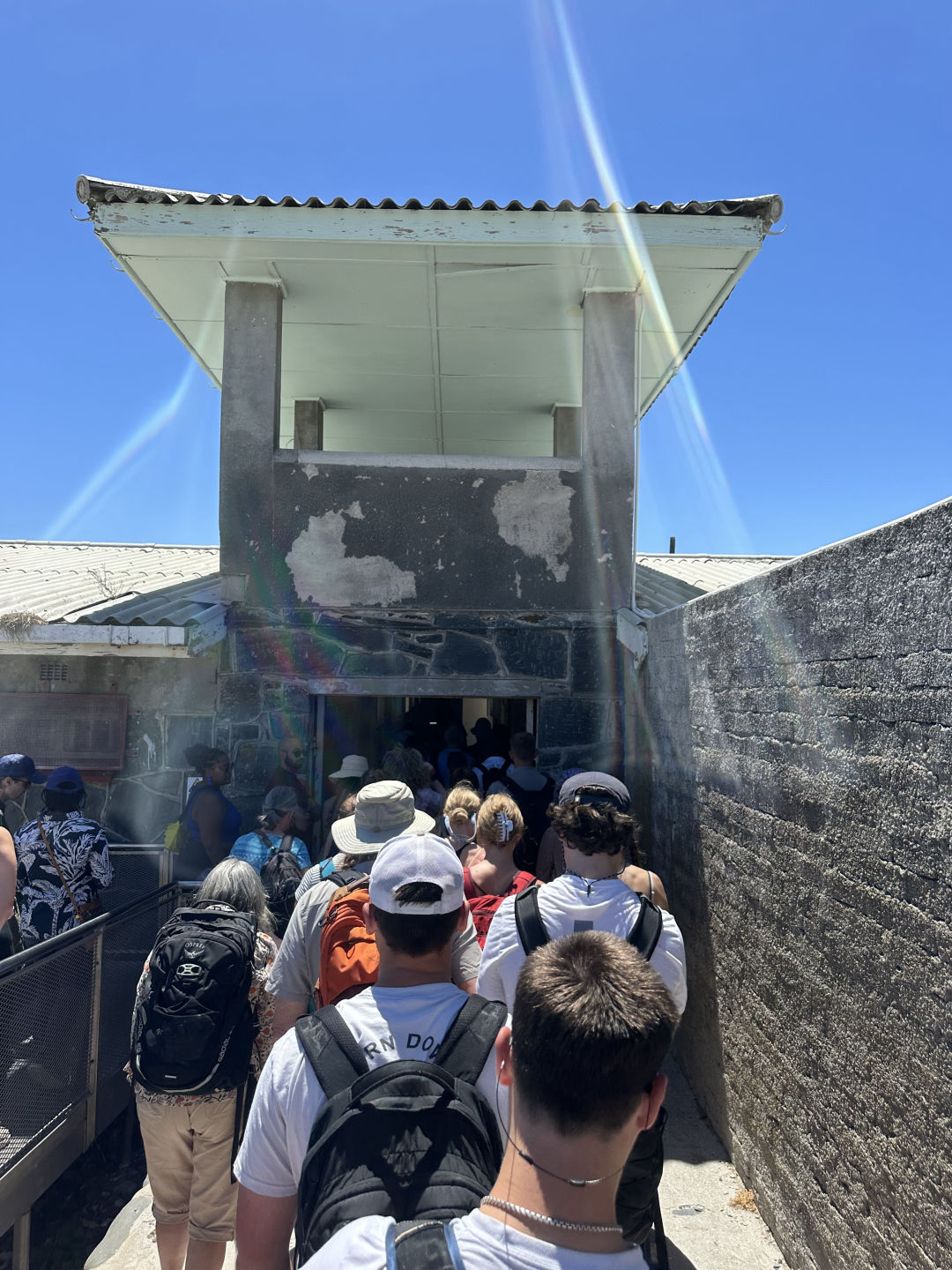 Hey friends and fam! Today was awesome, and we got a lot done! A few of us started the morning with a jog/run around the marina, which turned out to be a great way to get our day started. After breakfast, we all headed as a group to the ferry to Robben Island. We packed lunch for the trip but soon found out that we couldn’t bring our forks through the metal detectors, which was kind of a bummer. Even though we were forkless, we managed to make it to the ferry and head to the island.
