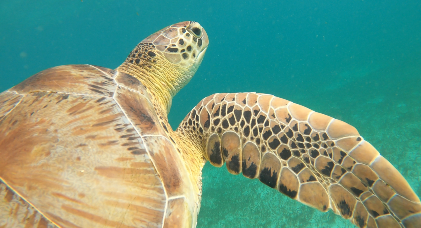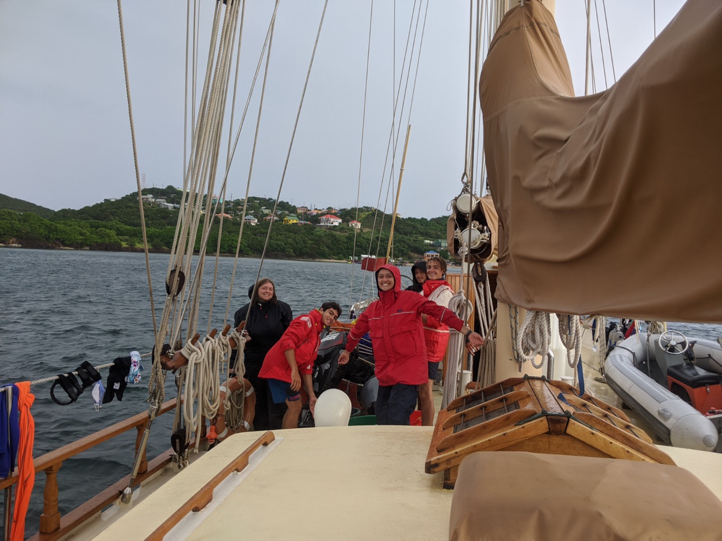 Once lunch was finished, and we were all cleaned up, we raised both anchors in order to head to our next destination. Raising two anchors means someone has to “flake” both chains. Flaking involves neatly placing the chain as it comes back into the anchor locker (A small compartment where both anchor chains are stored) in a Jenga-like pattern, first laying the chain as close to itself back and forth in its box, then perpendicular over the top. A properly flaked chain is important as it allows it to flow out freely without issue on the next drop. This momentous task was taken, very enthusiastically, by Ben, who did a stellar job of flaking both chains. Once this was done, we had a short motor over to Tobago Cays, near the island where Captain Jack Sparrow was marooned by the crew of the Black Pearl. The afternoon was then dedicated to snorkeling with turtles. A large area around the Tobago Cays has become a dedicated Marine Park, and the marine life is spectacular because of it. There are a large number of turtles that swim in these parts and of all ages. Juveniles were even spotted by our own turtle enthusiast, Adelaide.