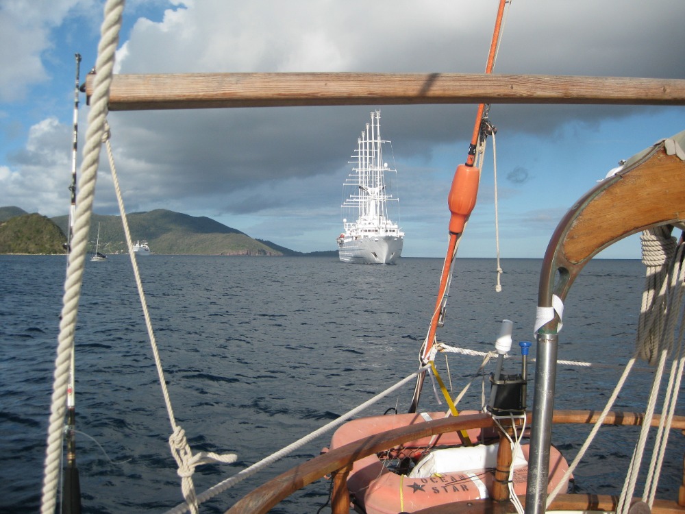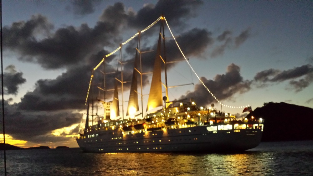 Today the students of Ocean Star rose to the sight of the massive sail-cruise ship Wind Surf passing closely by as it made its way into the Saintes. With our new neighbors dropping anchor, we had a morning of back-to-back Oceanography and Marine Biology classes followed by the afternoon off to explore the French island, taste some local cuisine, and stock up on baguettes for the next few days. While ashore, students and staff explored the fort, the cafes, boutiques, and especially the ice-cream parlors and even found time to goof off a bit at the local playground. After dinner was study time with the exception of a handful of students and resident oceanographer Emma, who couldn’t resist heading into town after dark for an exciting pick-up game of football on the local field. Bonne Nuit et a laprocaine! Cheers.