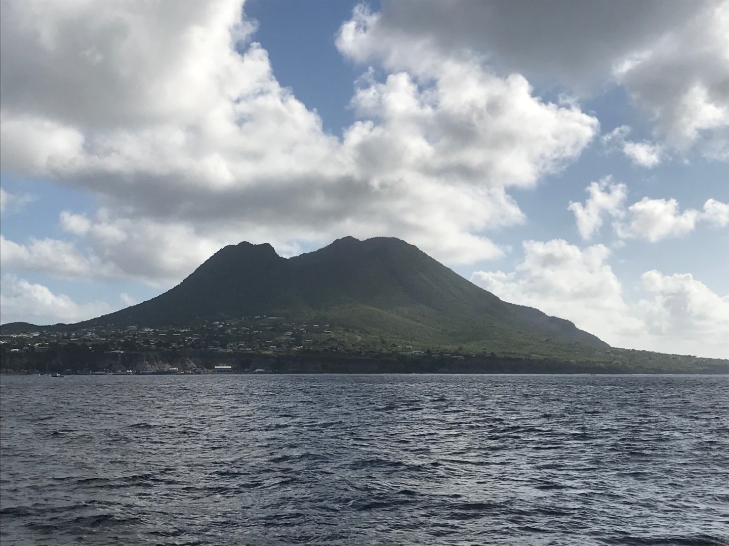 Today dawned bright and early as we prepared for our final student-led passage from Statia to Saba. Carolyn headed over to get us cleared out first thing, and we had a tasty breakfast with fresh fruit by head chef Jade. While we waited for Carolyn to finish with customs, we got off the anchor and set sails while standing off. Our goal was to depart no later than 9 am to make it to Saba in time to clear in before closing time. We left almost 30 minutes before our goal, and we felt very proud of ourselves. We really enjoyed our time in Statia, and we waved goodbye to Golden Rocks dive shop and Mt. Quill as we departed. The student leaders for the day were Nate (skipper), Matthew (navigator), Joseph (bosun), and Jade (engineer). They led us on a very calm and relaxed sail over to Saba. The students have their NavMaster exams coming up, so during the passage, they practice calculating ETA to get some real-life practice before their exams. Our lunch was build-your-own nachos, which was a bold move for an underway lunch because you risk the chips blowing straight off your plate! But it was delicious, and everyone ate their fill, with just a few chips overboard.