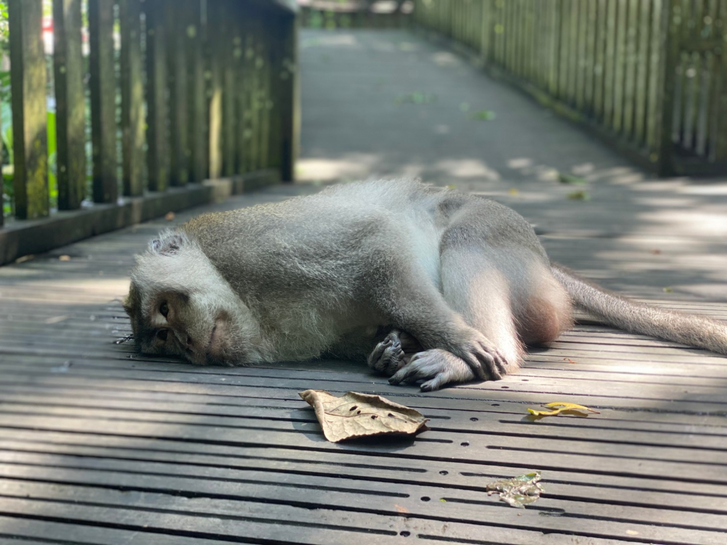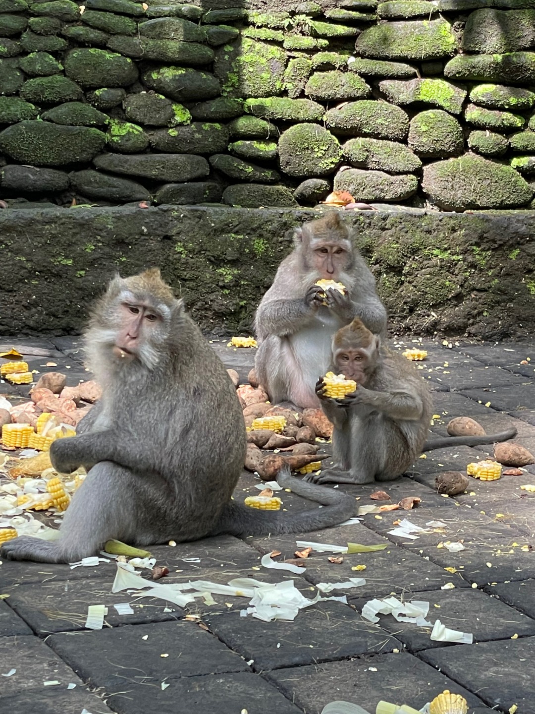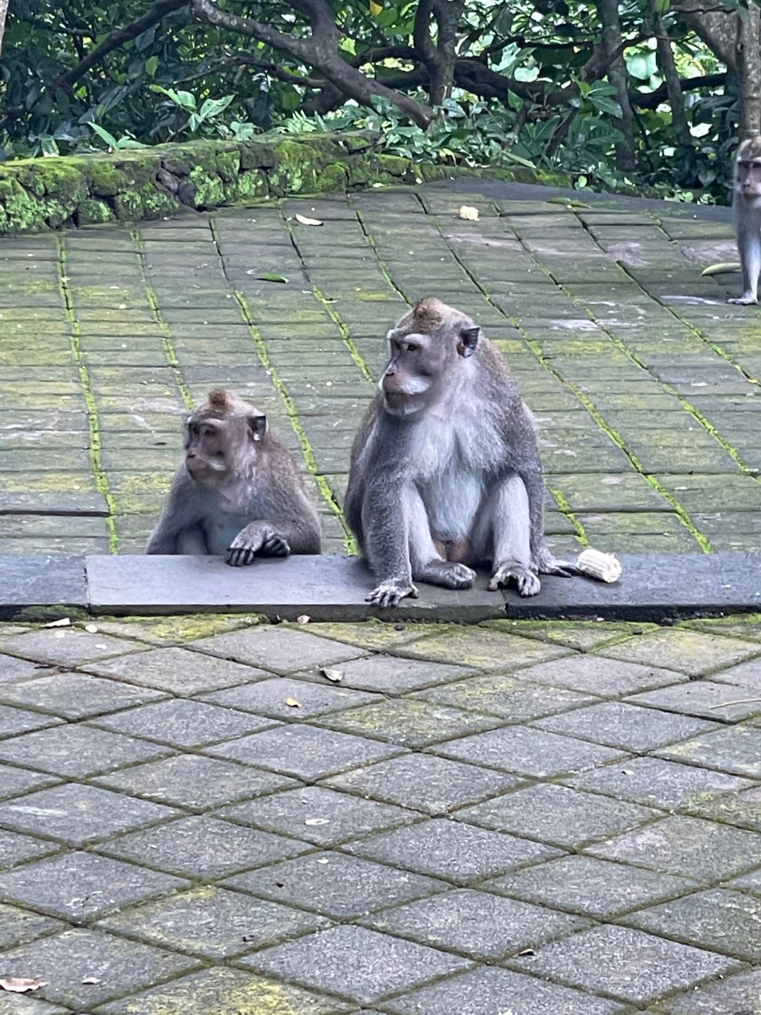 Today we went to a Sacred Monkey Forest Sanctuary. Now to me, this brings up a serene mental image of towering banyans, gently trickling streams, lichen-covered statues, and perhaps a glimpse of one of our distant relatives leaping through the canopya snapshot of serenity, a feeling of primordial connection to nature.