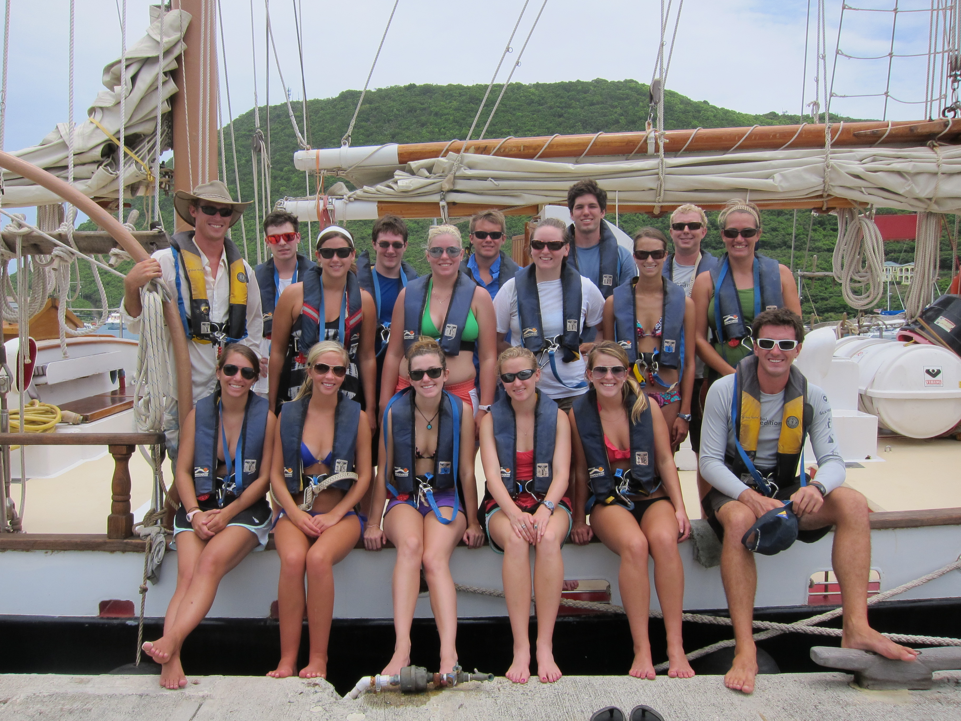 Yesterday, 13 complete strangers all excitedly boarded airplanes with one common destination, the S/V Ocean Star in Tortola, British Virgin Islands, their new home for the next 20 days. With everyone making it aboard safely yesterday today, the real fun began. Once the crew was outfitted with scuba gear and we had a chance to run through the particulars of life aboard, we made our way and left the dock in West End to not return again for 19 days. Making our way up the Drake channel, the crew set sail for the first time in my sailing crash course 101. Everyone got a chance to get their hands on the lines and learn the finesse of sweating up a halyard. Their hands are still soft from shore life, but soon enough, they’ll be hardy sailors with callused hands used to handling lines. By 1630, Ocean Star pulled into the anchorage of Savannah Bay on the island of Virgin Gorda, a pristine crystal clear bay surrounded by an outer reef and white sandy beaches. Once the boat was put to rest with sails flaked, the pool was opened to shower time. Already, the remarks were circulating amongst the crew about how amazing it was to be out anchored in such a tranquil setting. Afterward, the crew sat down to their first “squeeze” and dinner on the water. The night’s activities were taken to their open water diving studies. To say the least, it was a very full day! But a full day is a rewarding day, and although the crew might be tired, all of their spirits are high from the pure adrenaline that comes with the start of a grand new adventure. In the next few weeks, we will have traveled to 5 countries, experienced four very different cultures, earned various scuba certifications, learned how to sail an 88′ schooner throughout the Caribbean, and, all along the way, made 16 new best friends. Right now, you might be asking yourself, “Man, what am I going to do with my summer?”