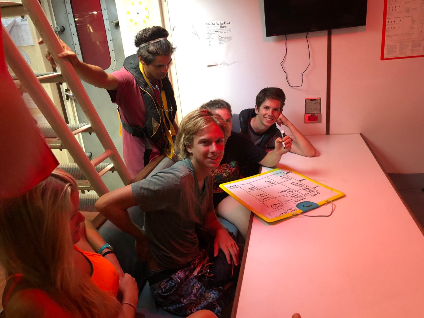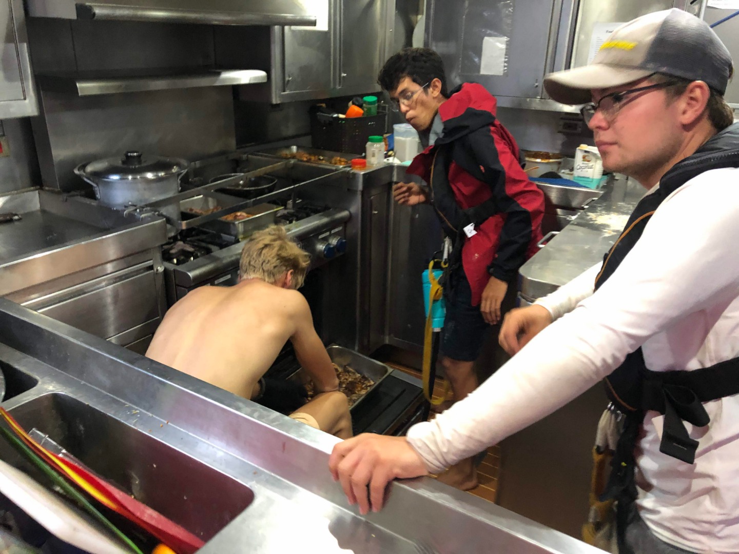 Today went off with a sudden bang as we continued into the third day of our two-week passage. In preparation for the days to come, the crew set out with scrub brushes and spray bottles to give Argo a little bit of well-deserved “boat appreciation.” We split off into our newly formed watch teams and set out to clean our trusty vessel. After a few hours and many bottles of cleaning fluid later, Argo was looking (and smelling) better than ever.