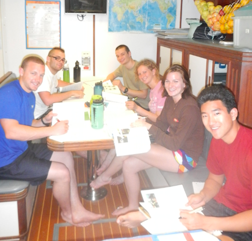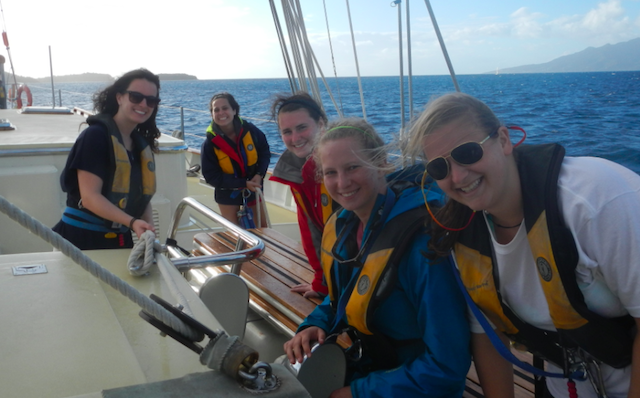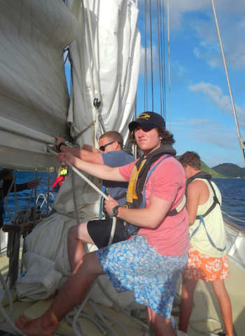 Today, we set sail from Antigua to Les Saints. The total trip was 93.9 nautical miles, and we reached a top speed of 12.2 knots. Argo left port around 7 am, and we had all sails raised within an hour, which I thought was great considering this was our first voyage. Personally, I haven’t been around boats that often and have never sailed. At first, it was extremely difficult to figure out how to raise a sail and the proper way of tying a knot, but after patient instructors continuously explained the process, it began to click. Although at times I was extremely frustrated, after glances around, I realized that I had never been anywhere this beautiful and hadn’t experienced anything like it before. Upon looking around this unknown blue abyss, I could feel nothing but peacefulness and hope the feeling never ends.