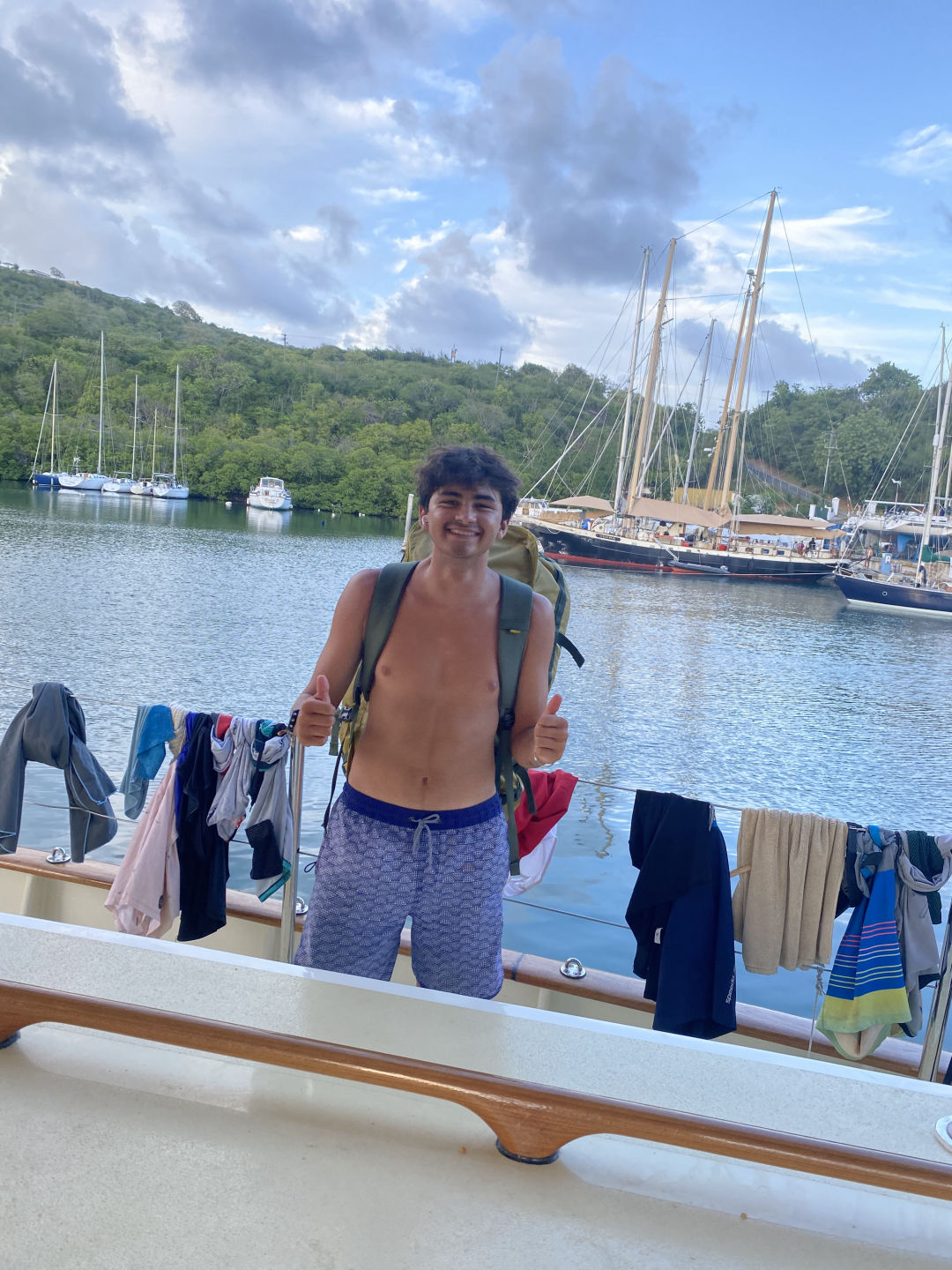 Might even rival the laz for my favorite spot on the boat. Once we docked, “Messy,” BA began. Every inch was scrubbed and wiped down. I was part of the laz squad (Will, Emma, DeMop, Katie, Elisabeth, Tim, and Amanda Cole). We emptied, cleaned, and refilled the laz with loads of dive equipment, sail covers, and more. For lunch, we had delicious pad thai. The tofu was on point. After lunch, we got back to cleaning Argo. This time, I was in the head bilges with Golden and Claire. We got very soapy, and it was quite a challenge, but eventually, we got it done. I did several odd jobs following that “experience” for other groups, such as putting on sail covers, cleaning PFDs, helping with the main bilge, and finding Ben’s tiny yellow bucket. Argo is looking so clean, possibly the cleanest she has ever looked. In the evening, between BA and dinner, we had some free time. Several people went on shore for the showers, David went for a run, a few wrote cards, and I packed. It may be a bit early, but I like to get ahead and have a more relaxed time later. For dinner, the cooking crew made chicken, mushrooms, and plantains. Tonight, for our squeeze question, I said, “Picture yourself talking with a family member or friend after the trip and them asking you to share your thoughts/experience about Seamester in 3 words or well” Everyone had a good answer. Some said a three-word sentence, while others gave three separate words. I said, “I loved everything.” Right after the squeeze, we had cake! I am not completely sure why, but cake is cake, I suppose. All in all, a great day. I think everyone will sleep soundly tonight.