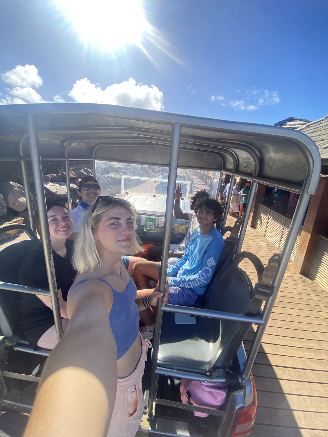 GOOD MORNING, GOOD MORNING, GOOD MORNING (how I woke everyone up today)! Will here! We had a scrumptious breakfast of pancakes made by Claire and MG! After an efficient clean-up, we packed our snorkel gear and got ready to explore. Last night the Plaii (our dinghy) squad put her together. This process took quite some time and a lot of trial and error, but eventually, we got it! Gabe supervised😄 We used Plaii to get from ARGO to the dock (she was so great). We got in the back of pickups and headed inland. A quick convenience store stop later, and we headed to our first beach.