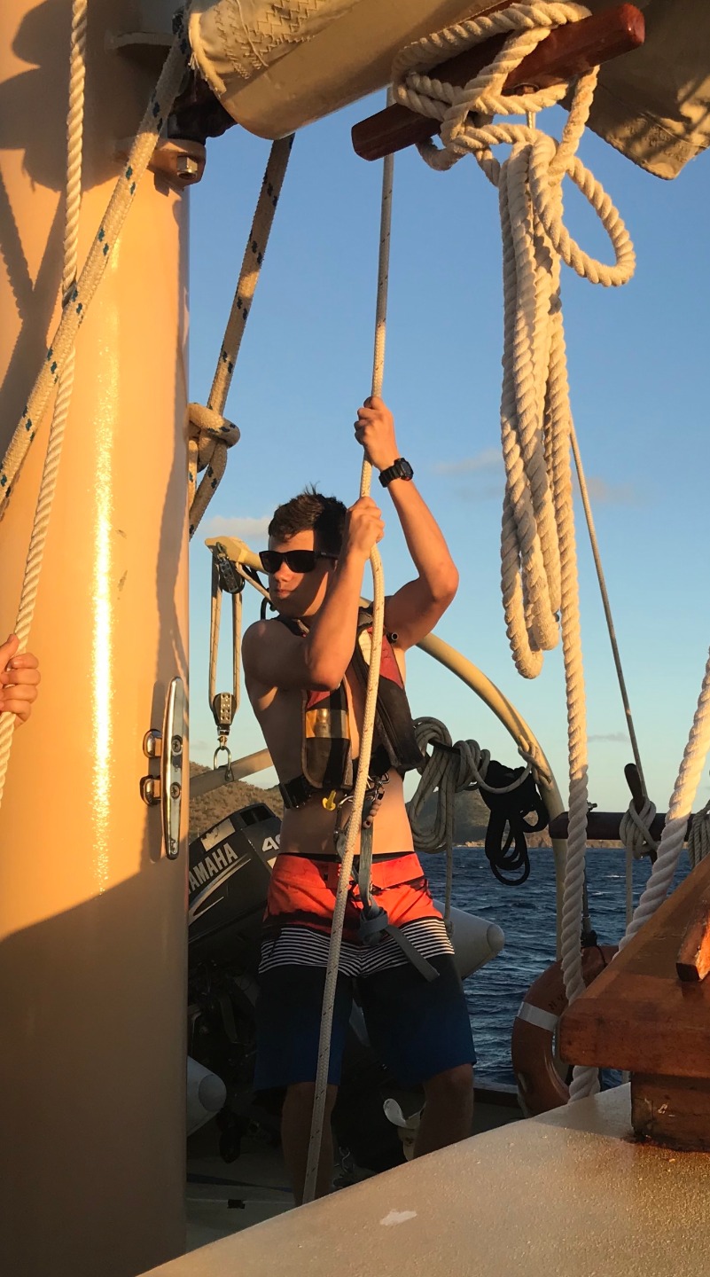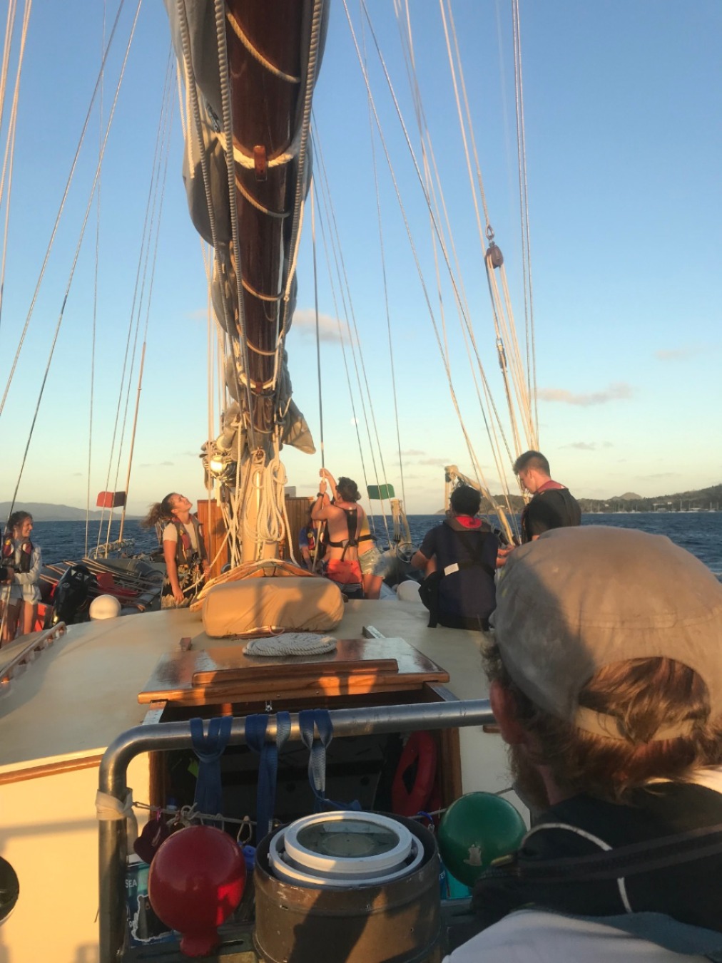 The whole time we enjoyed the shore. The staff was doing whatever it was they did when we were off the boat, which probably broke out all the good snacks and celebrated the peace. We were then ferried back to the boat for another lesson by oceanography extraordinaire Alex. Halfway through, the classroom began to rock back and forth, and before we knew it, we were on the passage to Nevis.