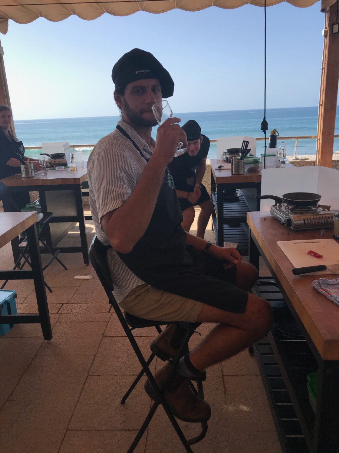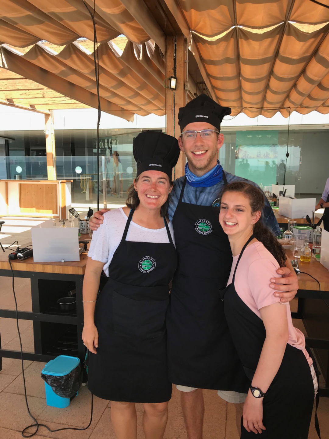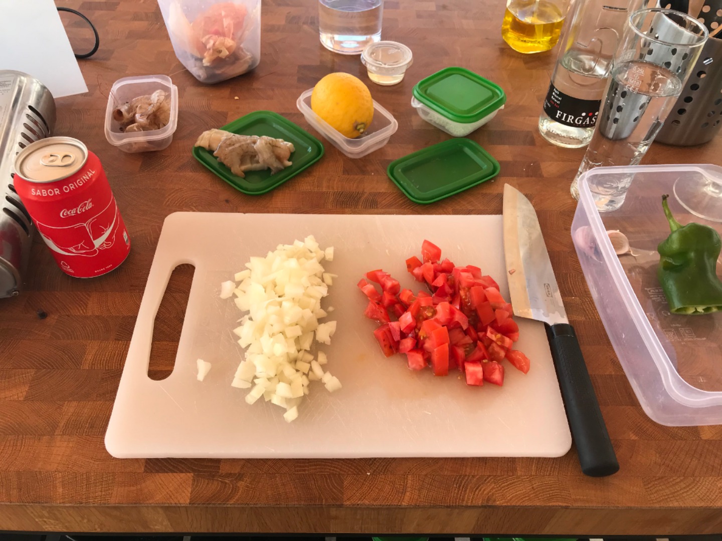 First things first, I was awoken at sometime-around-when-I-was-not-supposed-to-get-up to the sound of Avery saying, “There are people trying to sleep” (Thanks Bella and Julie, for that). Little did I know at the time this would be the perfect way to wake everybody else up for the start of the day. I’m sure everybody enjoyed it as much as I did, especially Avery. After a great breakfast of eggs and hash-browns by today’s chefs, we had an amazing clean-up (It was really fun with lots of singing and dancing). After a very hype clean up we had marine biology about estuaries and how there formed and their salinity contents and how animals survive with high and low salinity (It was fun too), but I threw Brian a lollipop without Amanda knowing, so that was cool. Guess you know now. Whoops, sorry, Amanda. Then the cooking day began. Half of us went to a cooking class on the southern coast of Meloneras at Green Point Cooking Academy. We made papas arrugadas with Mojo Rojo sauce, gazpacho, and paella. The meals were amazing. There were smiles and laughter never before seen on shore, and also local beer and wine (Hoorayyyy)! All jokes aside, we all had many fun moments while cheffing it up. We made some great meals with greens, garlic, and meats. Plus some seafood which was delicious. Jake had some great tomato sauces for these amazing potatoes Aleksander whipped up. They were divine. But still, overall a great time. Also, our driver was very nice. Group 1 saw a bunch of windmills throughout our drive. One of them was in the water, which was so cool. Then we had dinner about an hour early thanks to Avery’s caffeine addiction – amazing spaghetti and meatballs. Then we had fun after appreciations. Now, if you’ll excuse me, I’m going to go and carve some pumpkins.