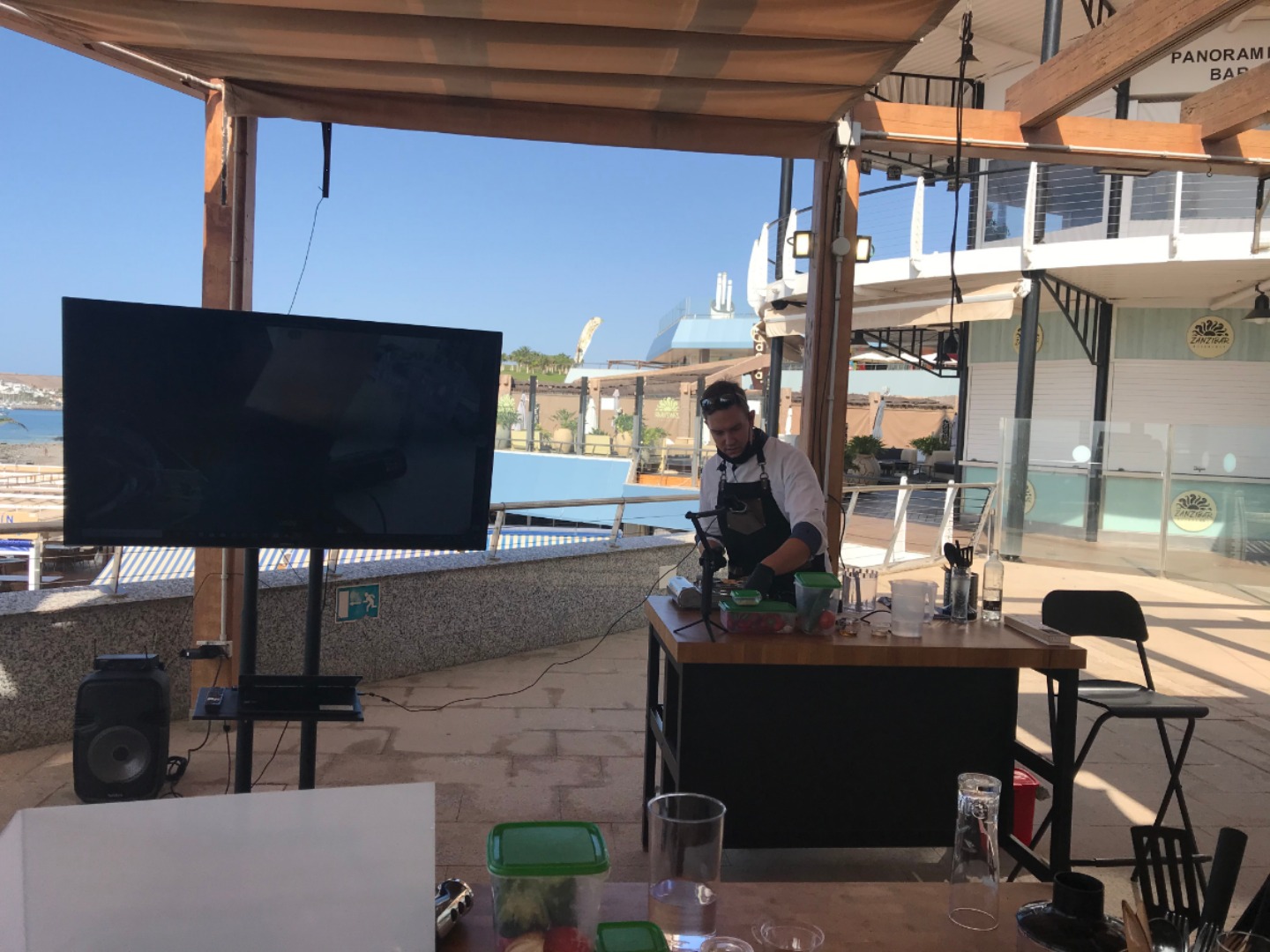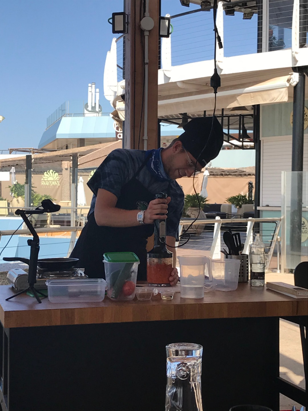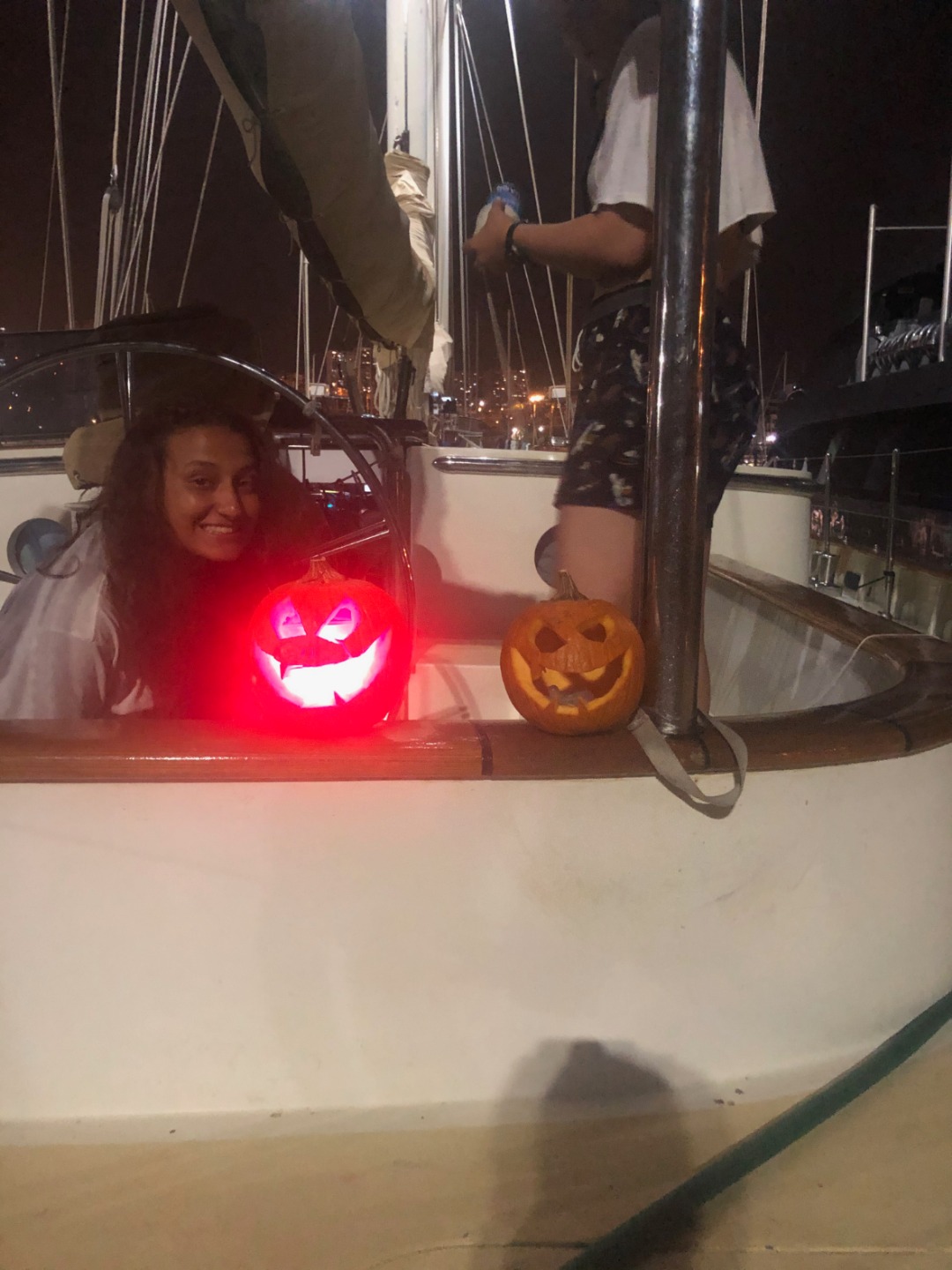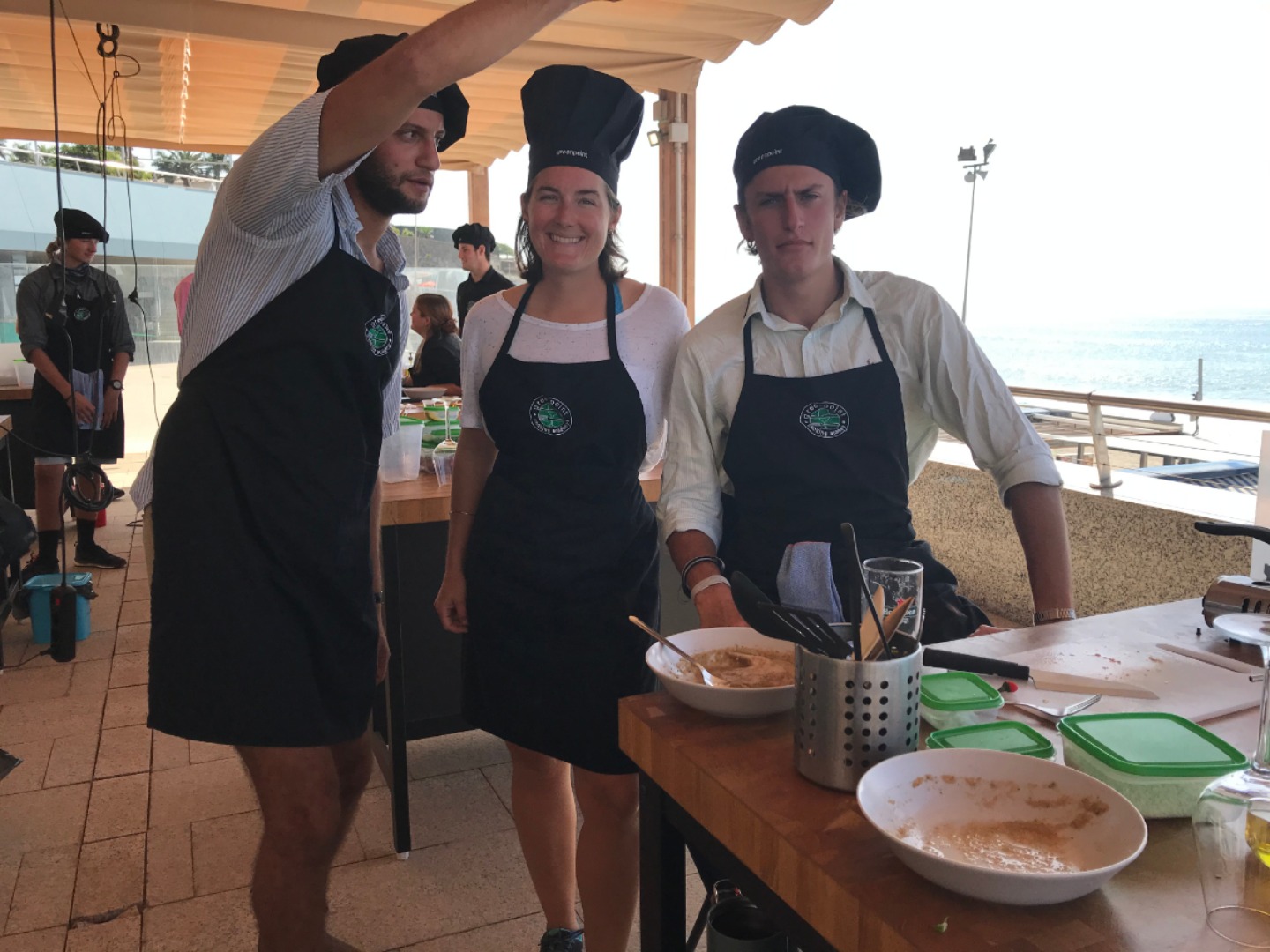 First things first, I was awoken at sometime-around-when-I-was-not-supposed-to-get-up to the sound of Avery saying, “There are people trying to sleep” (Thanks Bella and Julie, for that). Little did I know at the time this would be the perfect way to wake everybody else up for the start of the day. I’m sure everybody enjoyed it as much as I did, especially Avery. After a great breakfast of eggs and hash-browns by today’s chefs, we had an amazing clean-up (It was really fun with lots of singing and dancing). After a very hype clean up we had marine biology about estuaries and how there formed and their salinity contents and how animals survive with high and low salinity (It was fun too), but I threw Brian a lollipop without Amanda knowing, so that was cool. Guess you know now. Whoops, sorry, Amanda. Then the cooking day began. Half of us went to a cooking class on the southern coast of Meloneras at Green Point Cooking Academy. We made papas arrugadas with Mojo Rojo sauce, gazpacho, and paella. The meals were amazing. There were smiles and laughter never before seen on shore, and also local beer and wine (Hoorayyyy)! All jokes aside, we all had many fun moments while cheffing it up. We made some great meals with greens, garlic, and meats. Plus some seafood which was delicious. Jake had some great tomato sauces for these amazing potatoes Aleksander whipped up. They were divine. But still, overall a great time. Also, our driver was very nice. Group 1 saw a bunch of windmills throughout our drive. One of them was in the water, which was so cool. Then we had dinner about an hour early thanks to Avery’s caffeine addiction – amazing spaghetti and meatballs. Then we had fun after appreciations. Now, if you’ll excuse me, I’m going to go and carve some pumpkins.