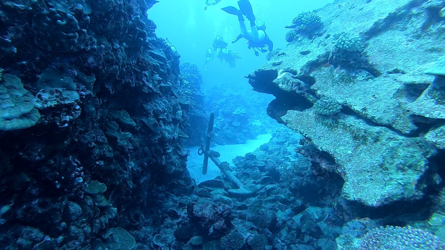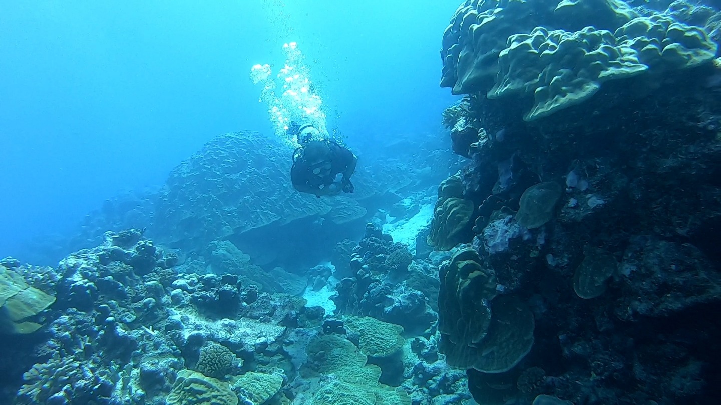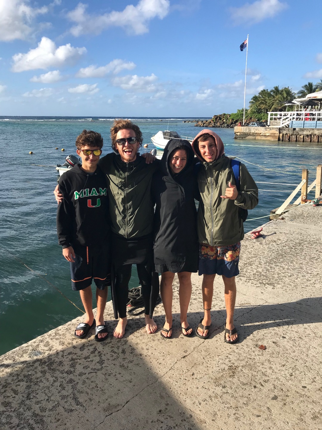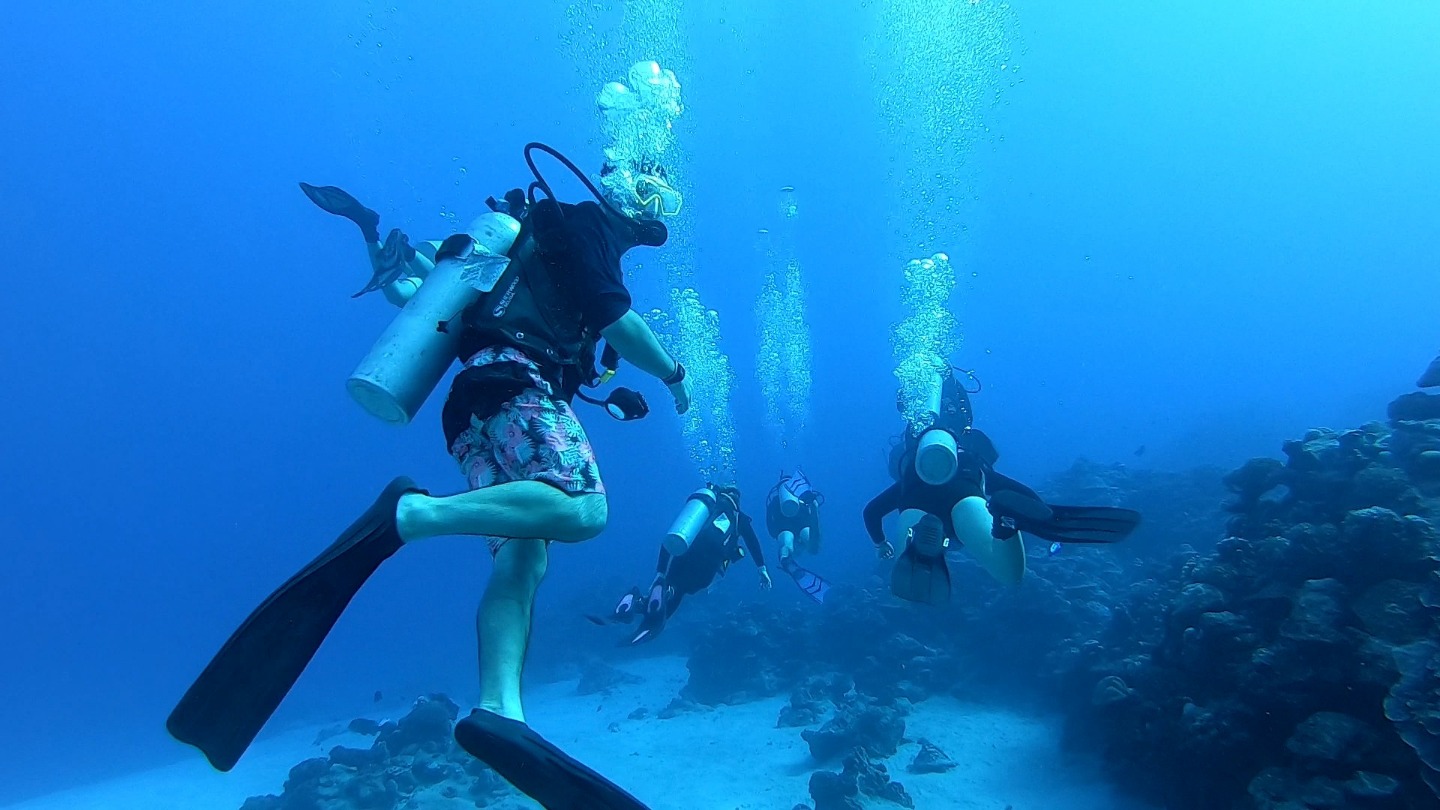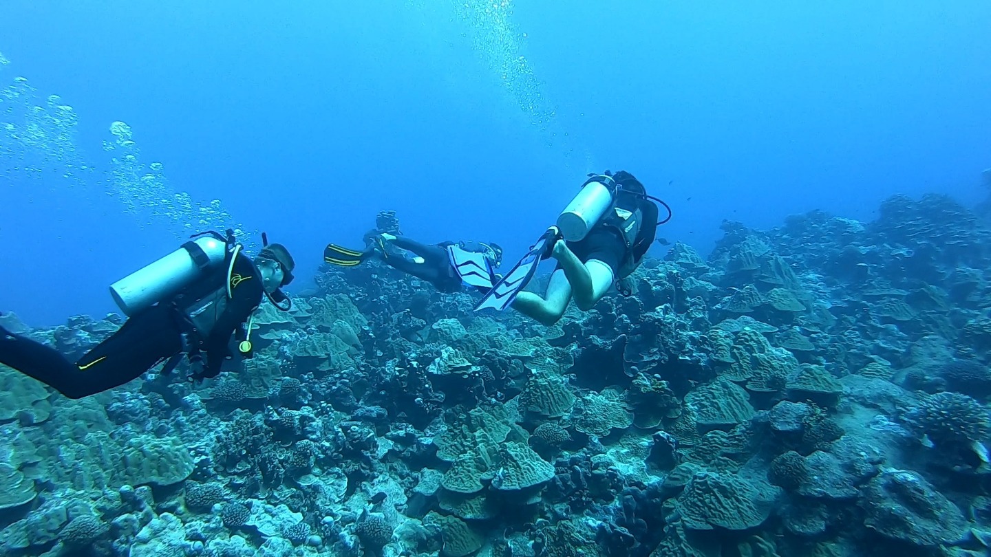 It was another excellent day here in Rarotonga. Two more dive groups went out today to dive the beautiful reef, and the visibility was incredible. The health of the reef is spectacular compared to many of the other sites I have dove over the past few years. There were some amazing swim-throughs and coral structures, and there was a myriad of reef fish tucked into the nooks and crannies. Rarotonga is a very lovely place to be. The harbor is a bit of a challenge because of how exposed to the ocean swell it is, but this deters most other boats from visiting and has therefore kept the marine environment pristine. It also has made Argo the talk of the town because we are the “big yacht” on the dock that everyone sees. The students and staff spent many hours cleaning and polishing the vessel over the past few days, and the onlookers who have stopped by have taken notice of how fine Argo looks. The gentleman who gave us the tour at Te Vara Nui the previous night came by this evening for a tour of Argo and brought some gifts of coconuts and bananas. The students and a few staff members were thrilled to learn how to safely and properly open the various species of coconut and sample the differences in the meats and waters. It was a really fun and interactive demonstration that the students got involved in. They eagerly look forward to their next shore leave, where they plan to test out their coconut opening skills, and where they will hopefully enjoy a refreshing beverage on the tranquil beach as a reward. The evening wound down with a marine biology class taught by Margaux.