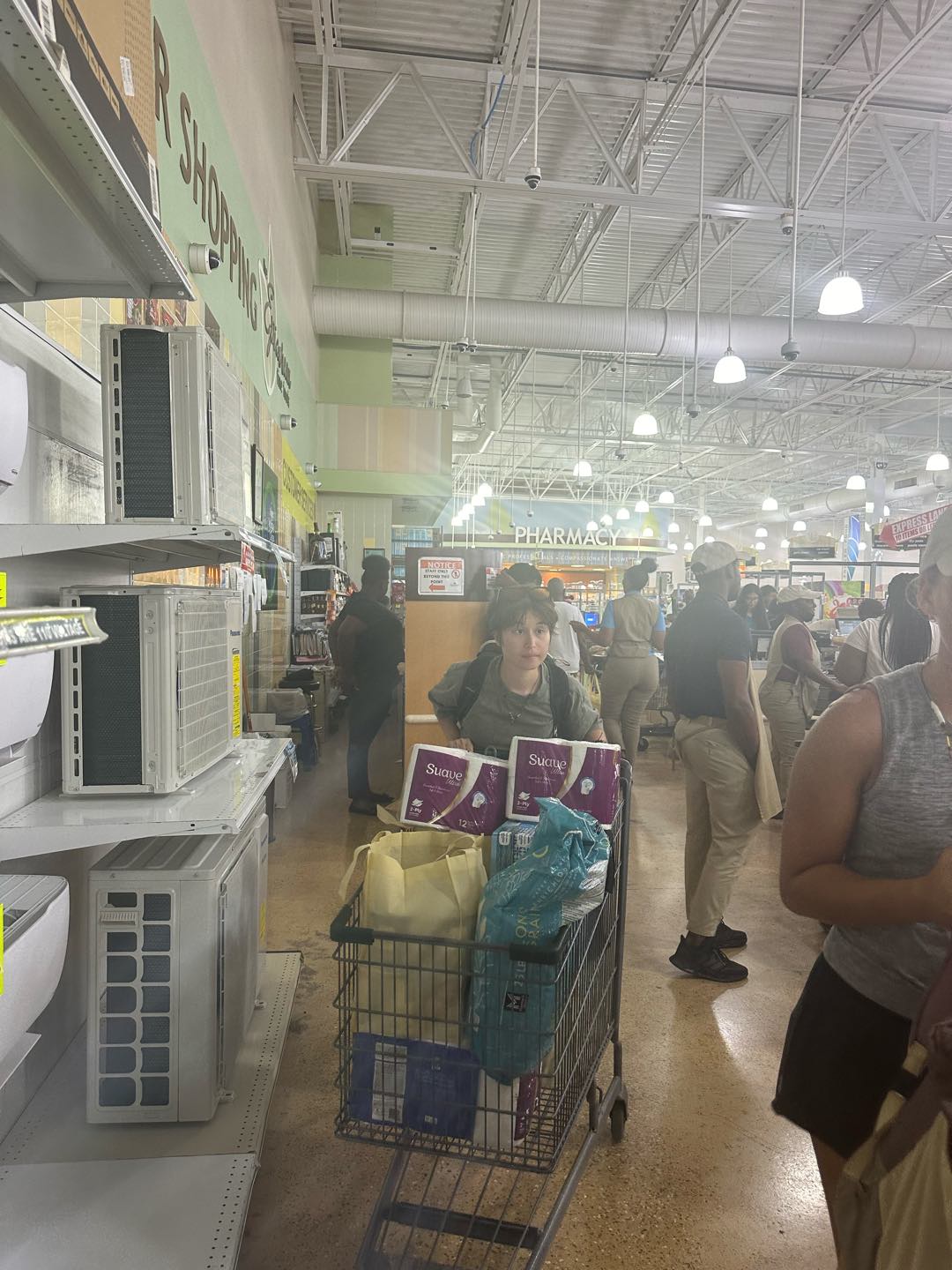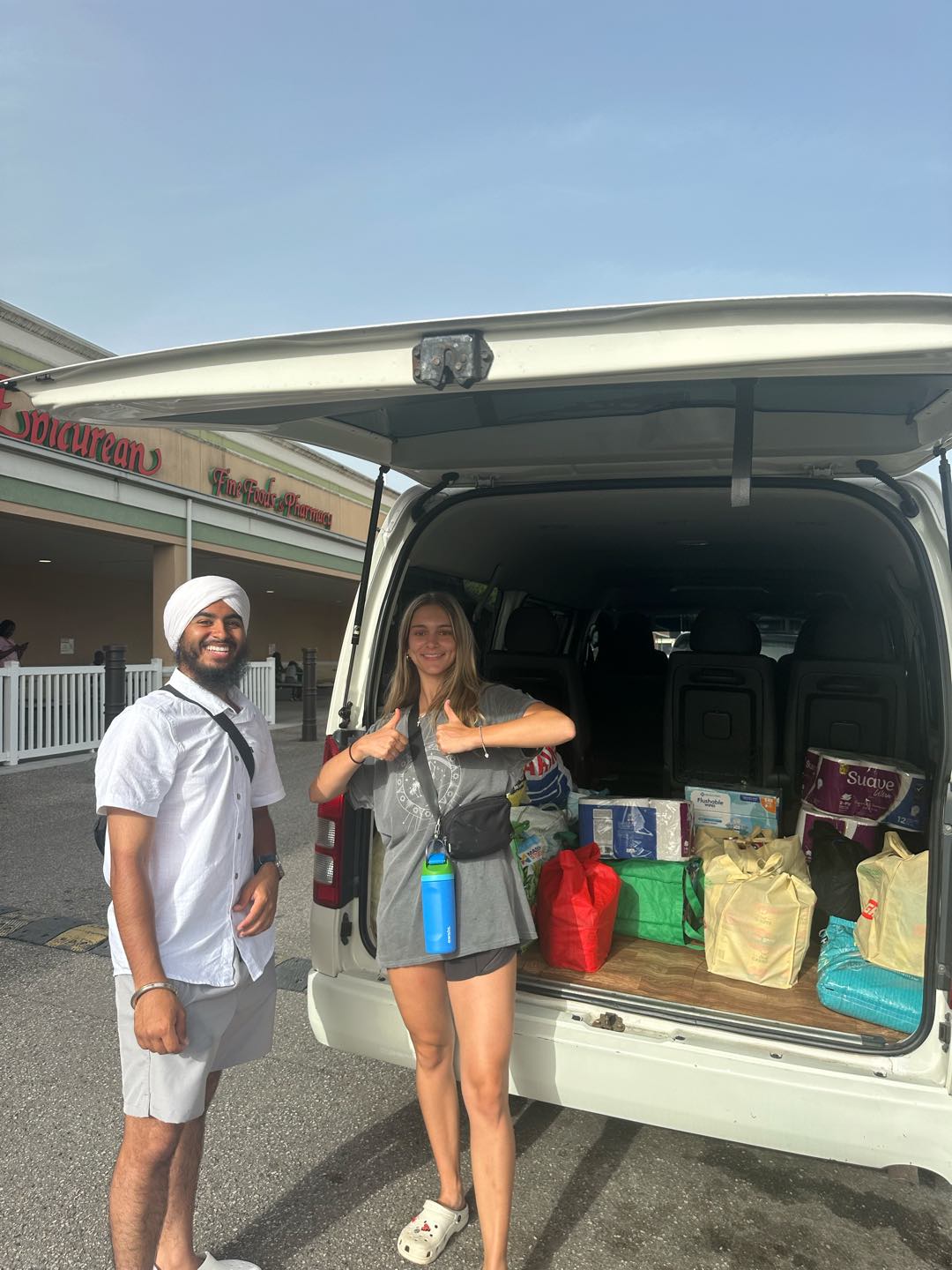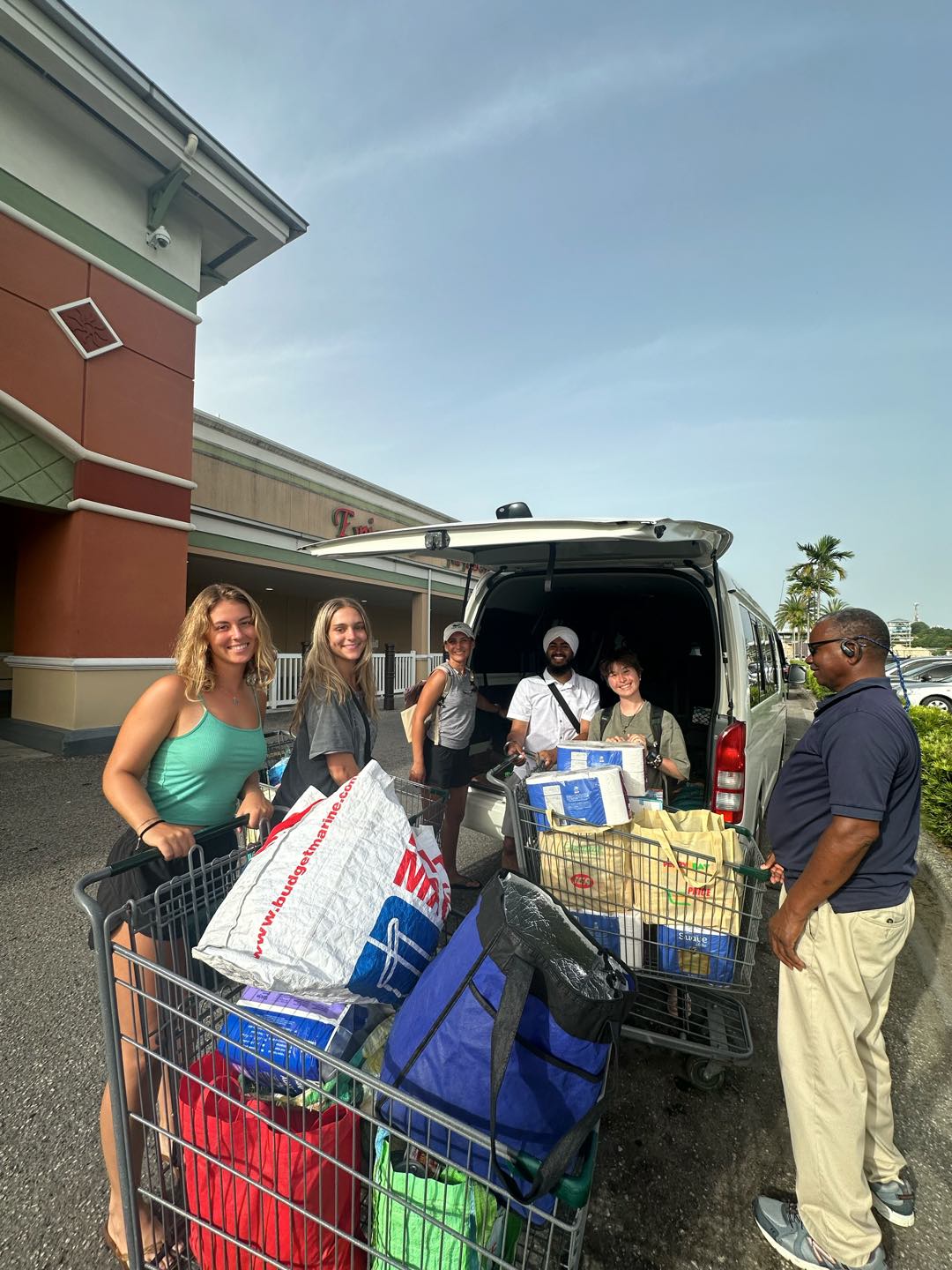 Once the AOW divers returned, Meg gave all of us a scientific writing chat, where we were given guidelines and tips for our scientific papers due in a few weeks. After our lesson, we enjoyed some barbecue chicken sandwiches before cleaning and heading to shore. Chloe, Kathrine, Jackson, Max, Owen, Rhianna, Robert, and Will ventured to Nelsons Dockyard, where they found drinks, snacks, wifi, merch, dive gear, and (best of all) real showers! The other group (Annika, Claire, Mani, Zoe, and I) traveled to the local grocery store with Allie. Union Island was significantly affected by Hurricane Beryl, so our crew is collecting supplies to donate once we reach the island. Once we got shopping carts, we got right to work collecting baby formula, canned food (corn, pineapples, beans, etc.), diapers, milk powder, rice, sanitary products, and so on. Once we finished, Allie gave us 15 minutes for personal shopping, and we hunted for coconut water, coffee, local snacks, and soda.