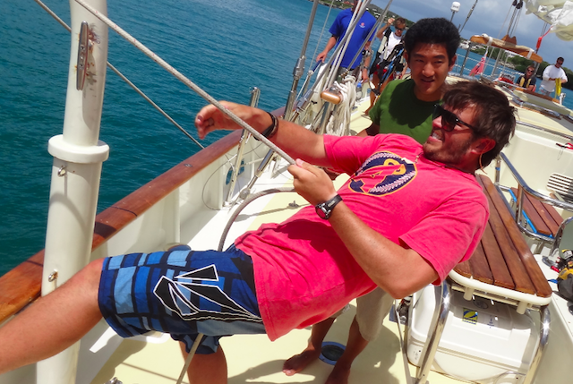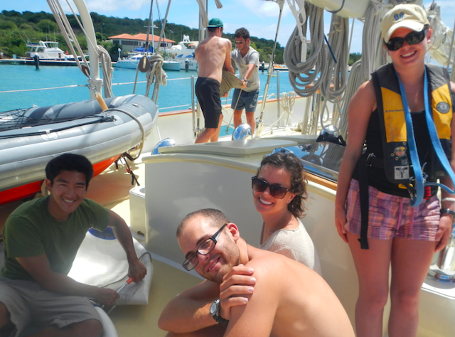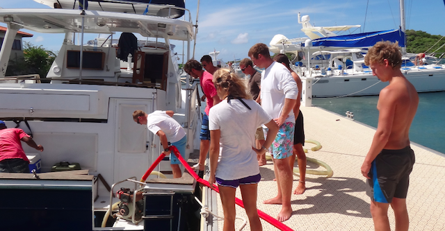 This morning, Argo’s crew became Argo’s rescue crew by assisting a neighboring boat that was quickly filling with water. As the boat limped onto the dock, everyone aboard flew into action, pulling out the crash pump and having it on the dock ready to go. It seems like tasks like these are now second nature after so many times practicing what we would do in case of flooding. Within moments, we were quickly emptying their bilges and eliminating their list to starboard. An hour later, with smiles on everyone’s faces and our neighbor’s future secure, we prepared ourselves for our longest passage to date. As we rolled the sail covers and ran the sheets, excitement grew amongst the crew for passage life and our next destination of Port Antonio, Jamaica. With 580 miles to go, this passage is expected to take us a little over four days. But as we get out of the lee of Curacao and the wind begins to fill in, it appears that this passage could be a fast one.