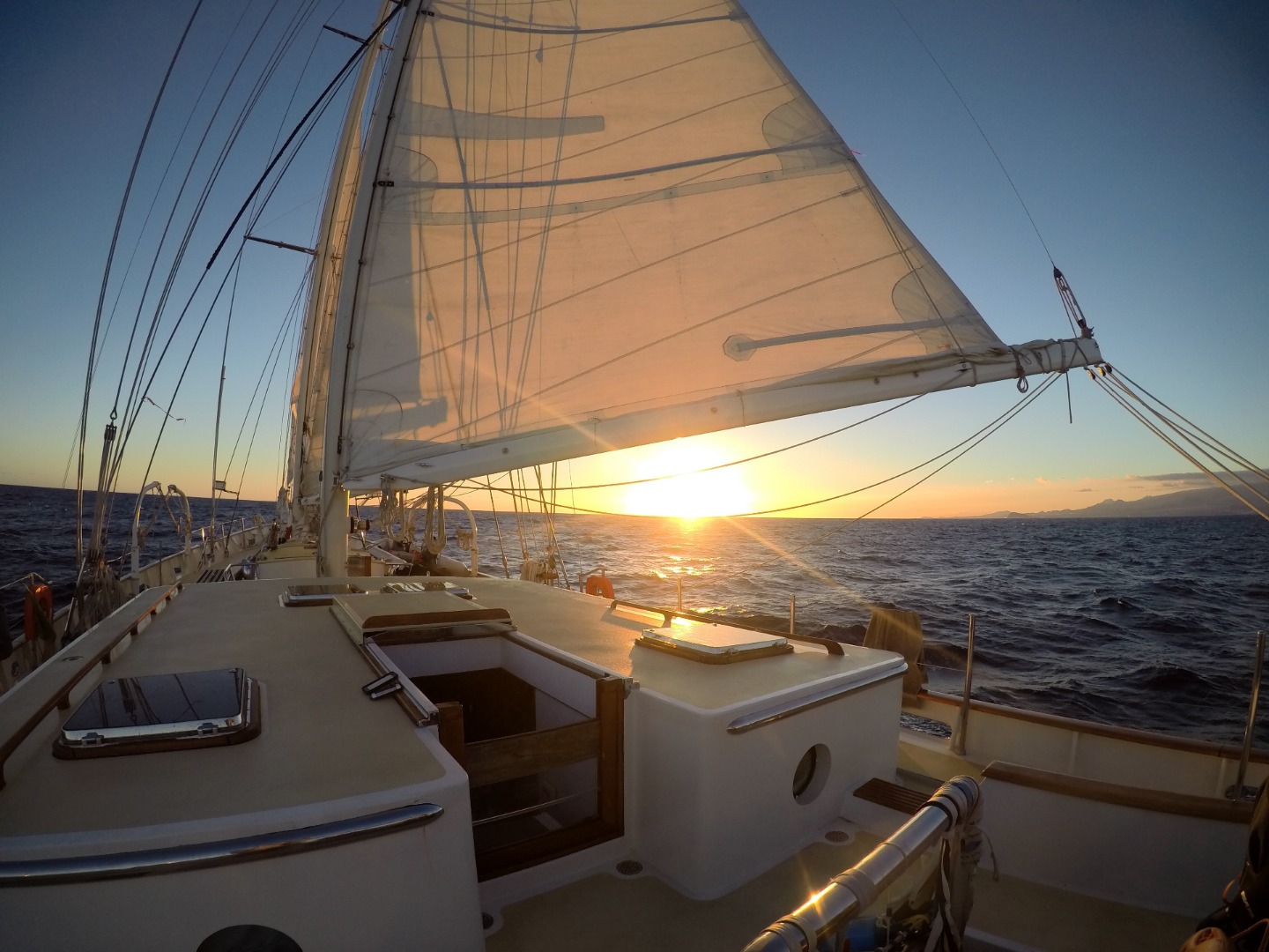 Today was a day one of the Atlantic crossings, and it could not have been a perfect day on which to set off! We started the day with French toast, which was excellent, and then moved into passage prep. The marina where we were tied up had a wall running along the dock where people would paint the names of their boat, so before we left, several people went ashore with spray paint and painted Argo’s name on the wall with all the others and then we were off! We got off the dock a little after 12:00, and as soon as we cleared the harbor, we were surrounded by a pod of pilot whales which we drifted along with for a couple of minutes while we were preparing to get the sails up. The wind was about 20kts from behind us, and we were able to put up the mainsail, main staysail, fore staysail, and jib right away. After all of the motoring that we had to do in the Mediterranean and along the coast of Africa, it was nice to be able to start with sails up and the motor off. The seas were almost flat for most of the day, and it was warm and sunny all day, which felt good after all the rain we had been getting on and off. Today was also the first day of our new watch teams, so for most people, that means getting to have a different pair of staff to watch leaders and different jobs when we do emergency drills. It’s nice to be underway again, and I’m looking forward to settling into the routine of watches and being at sea for the next couple of weeks.