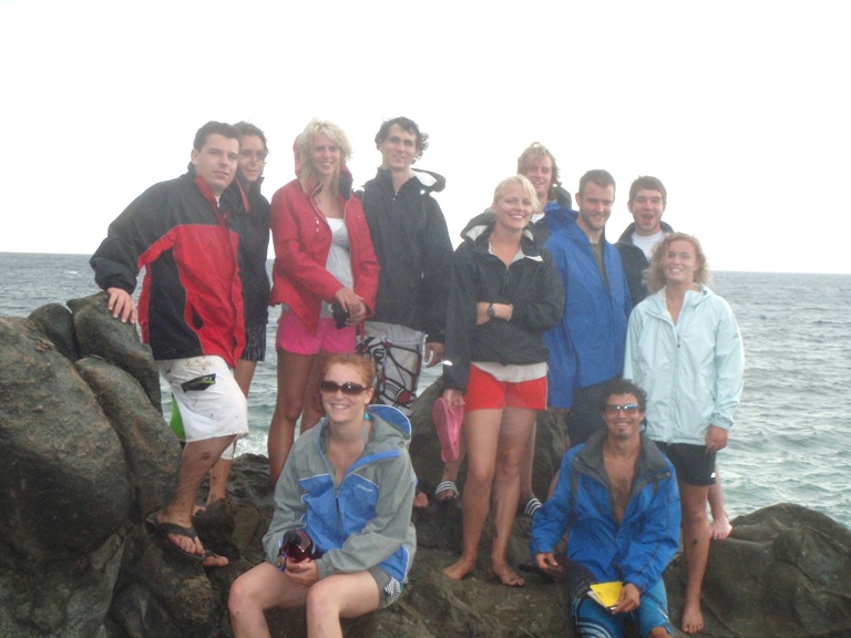 Right as lunch was ending, a storm came towards us, causing a rush to clean up. We couldn’t do it in time, but who minds a little rain? The waves didn’t get too big, but there were several bolts of lighting that hit quite close to the Ocean Star. When it was clear that blue skies were on their way, we took the dinghy, Exy, over to the beach for a leeward/ windward lab. We explored the leeward side first because that’s the side of the island we are staying on. We then walked through a salt lake, which was very muddy. Everyone got a little dirty. After a short hike, we made our way to the windward side of the island. This side of the island faced the Atlantic Ocean and had some fierce waves. Pretty soon, we’ll be sailing through those conditions. We just ate dinner and, in ten minutes, will begin our CPR/ first aid training. Until next time.. peace