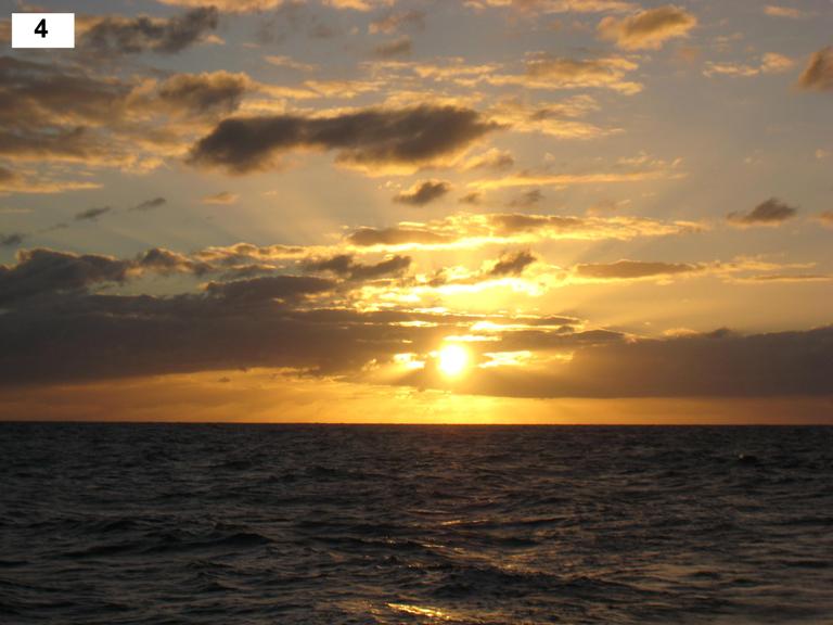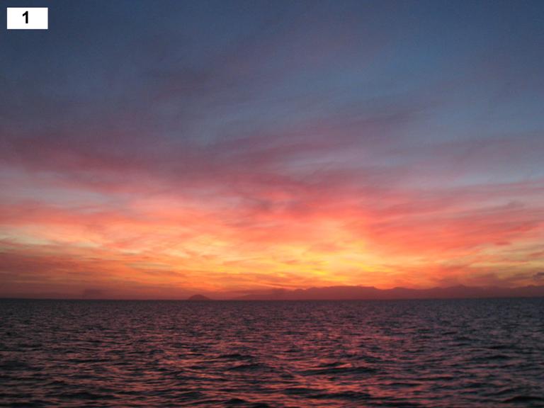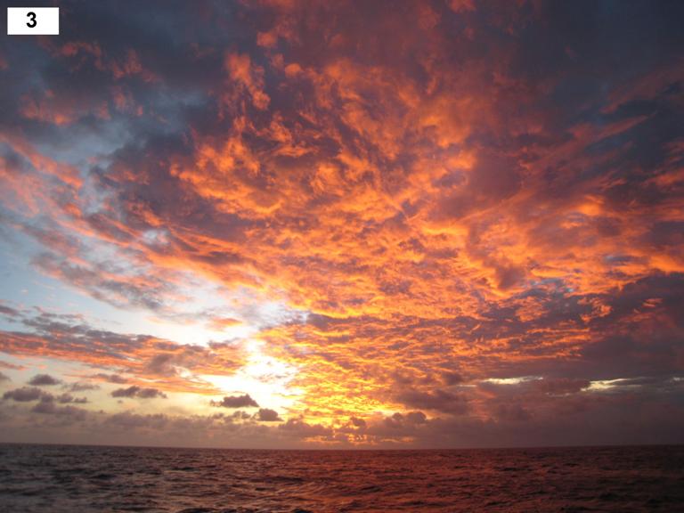 Essentially, what I’m interested in is whether humans, without a concept of time or place, could instinctively differentiate between sunrise and sunset. Having seen my fair share of sunrises and sunsets during my time with Seamester, I return to this question time and time again with no clear answer. So, I share my thoughts as often as I can to collect the insights of others. And when I do, most people like to believe they could distinguish. If you are in this camp, then take a look at today’s pictures, which include various sunsets and sunrises. See if you can identify which is which. Tomorrow’s blog will reveal the answers, but a word of caution: the answers may haunt you.
