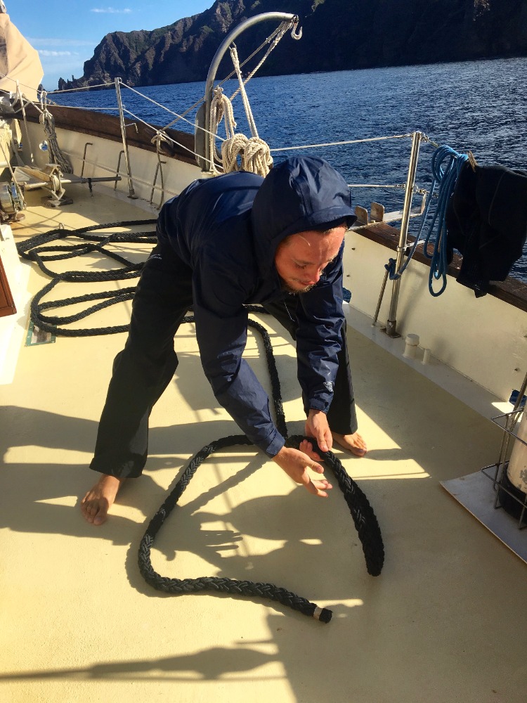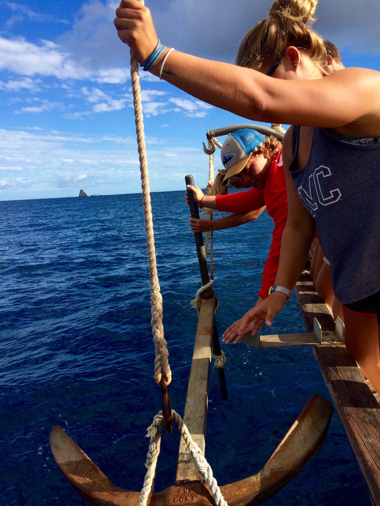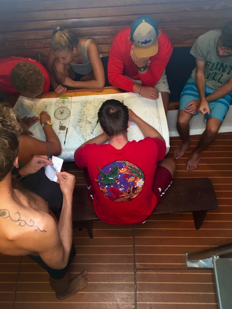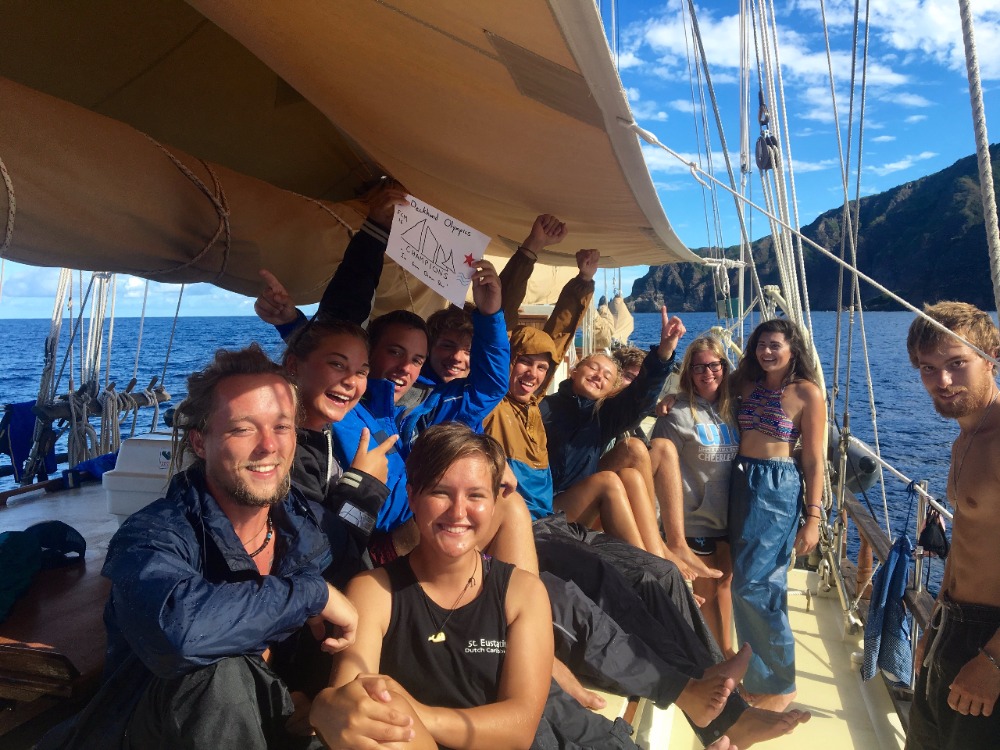 Today was a rather slow day by our standards, but still an action-packed day when compared to the average day for any landlubber. This morning we had our last PEN (Seamanship) class, during which the crew broke into two teams to compete in the Deck Olympics. The events in this competition included timed charting, an anchor raise, a knot-tying relay, and a pin rail relay. Each team won two events, so for a tiebreaker, the crew competed in a line-coiling relay under simulated squall conditions. The competition was fierce, but it was all smiles afterward. Lunch was followed by a two-tank dive with local operators Sea Saba. The underwater natural beauty of the island is indescribable, and we were lucky enough to experience it on a pristine dive of the twin seamounts at Man O’ War Shoals. Some students even claim to have seen a small reef shark circling the outskirts of the site. Much of the crew was on deck to enjoy another picturesque Saba sunset as the day came to a close. All that’s left now is to present our Oceanography research projects before getting some rest in preparation for another big day, one of our last aboard Ocean Star.