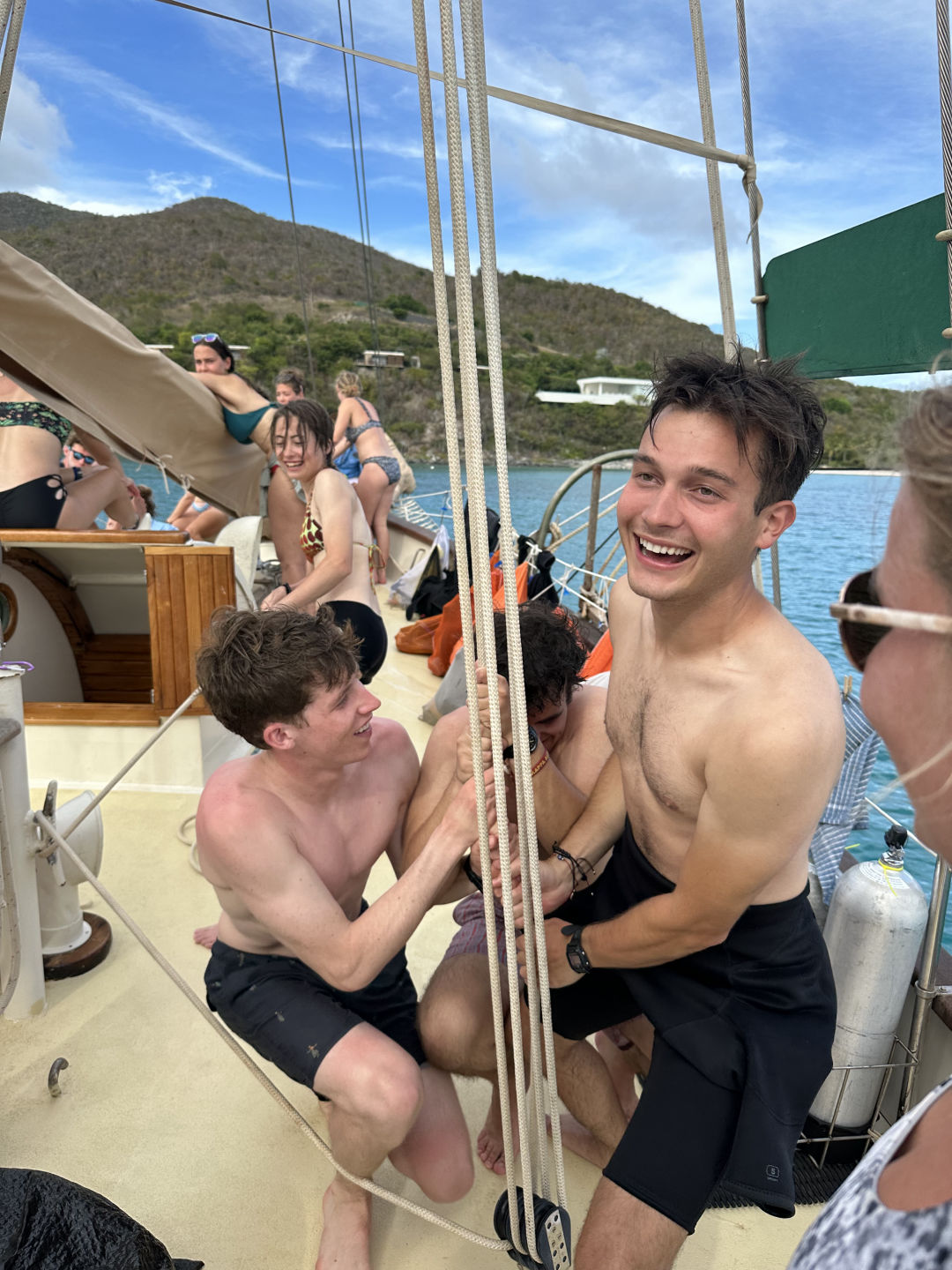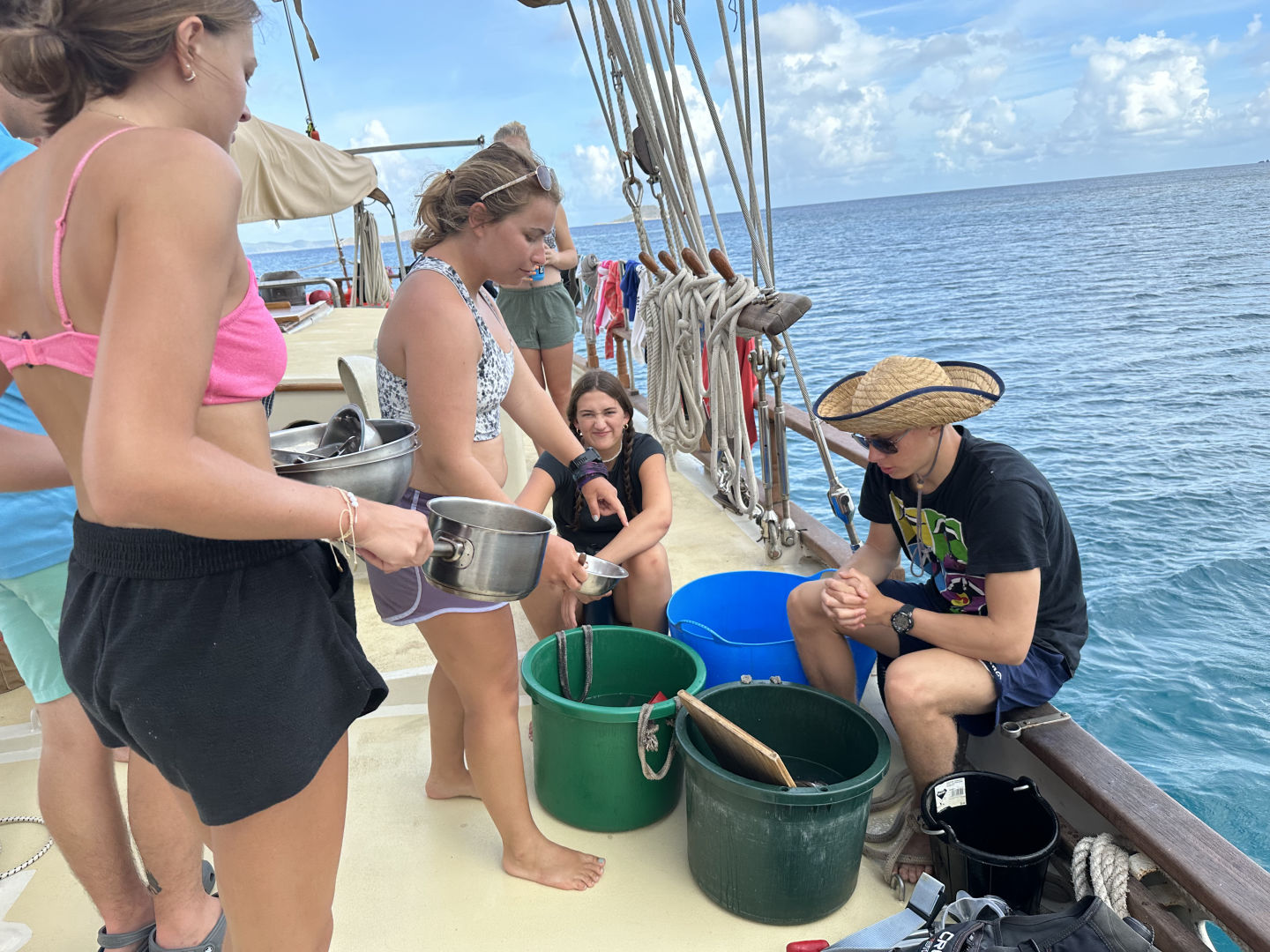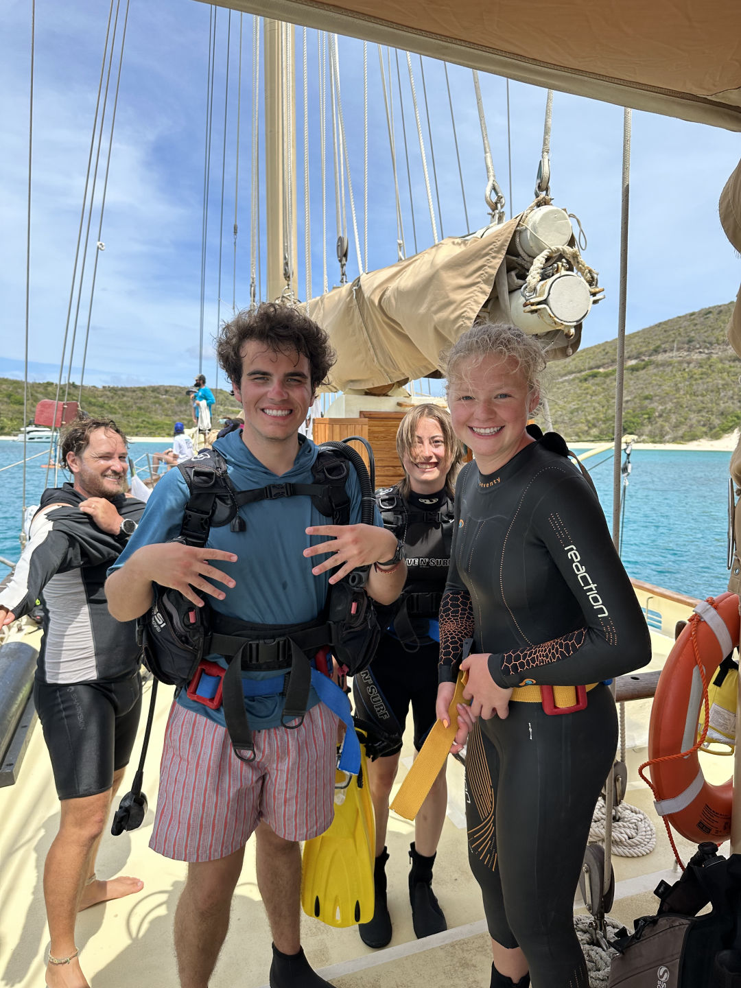 Split into two activities today, the crew of the Ocean Star is proud to say: “We found adversity and overcame it” -Michael: Tonight at Squeeze. Truly inspiring words. It was largely agreed that the Advanced Open Water students certainly put in some effort to both find adversity AND overcome it when putting on the jib. Here’s what a participant on the scene had to say: “Lots of teamwork. Harder than expected. We got it done and are proud.” -Sydney: Tonight, when I asked her about it.