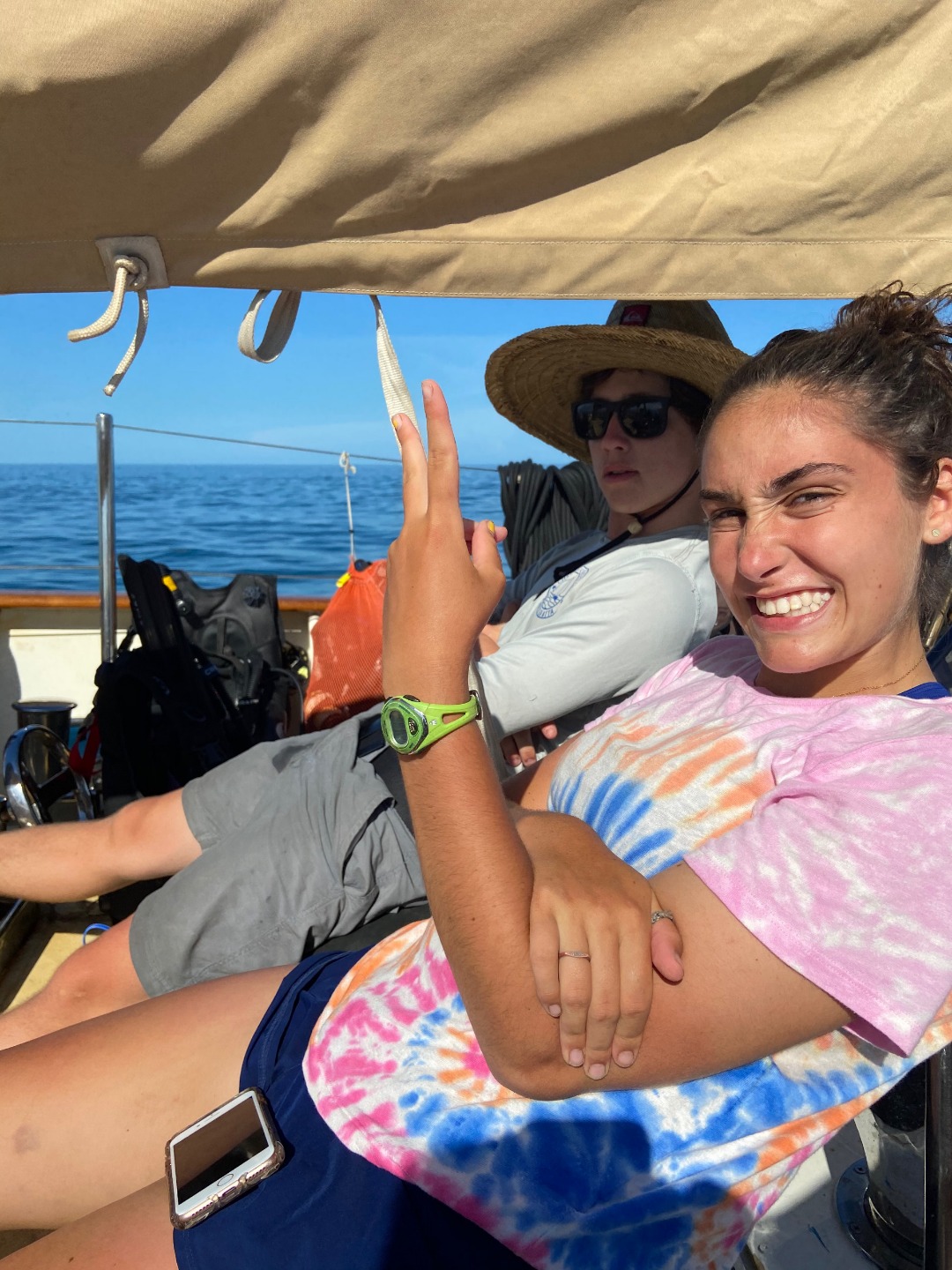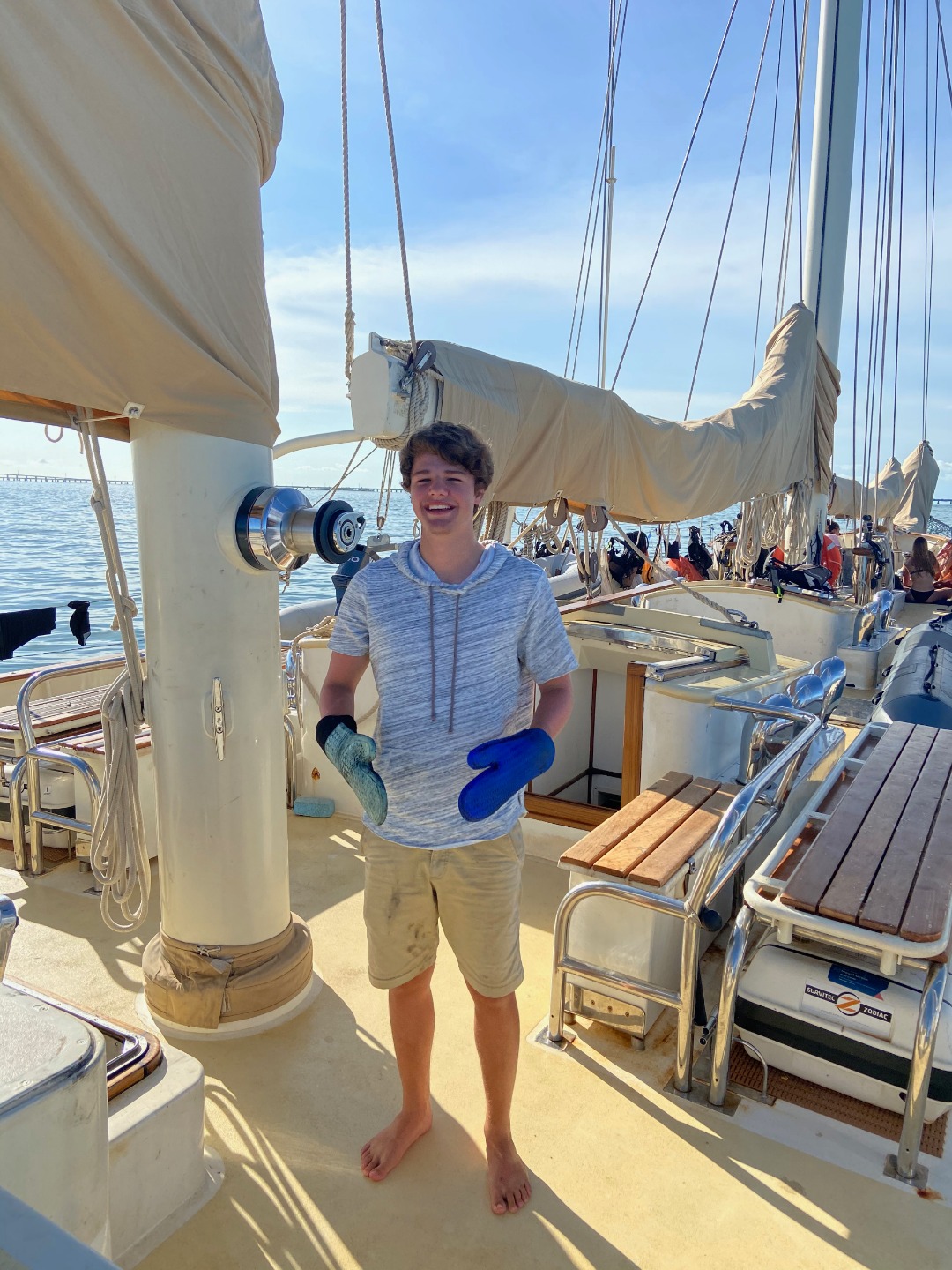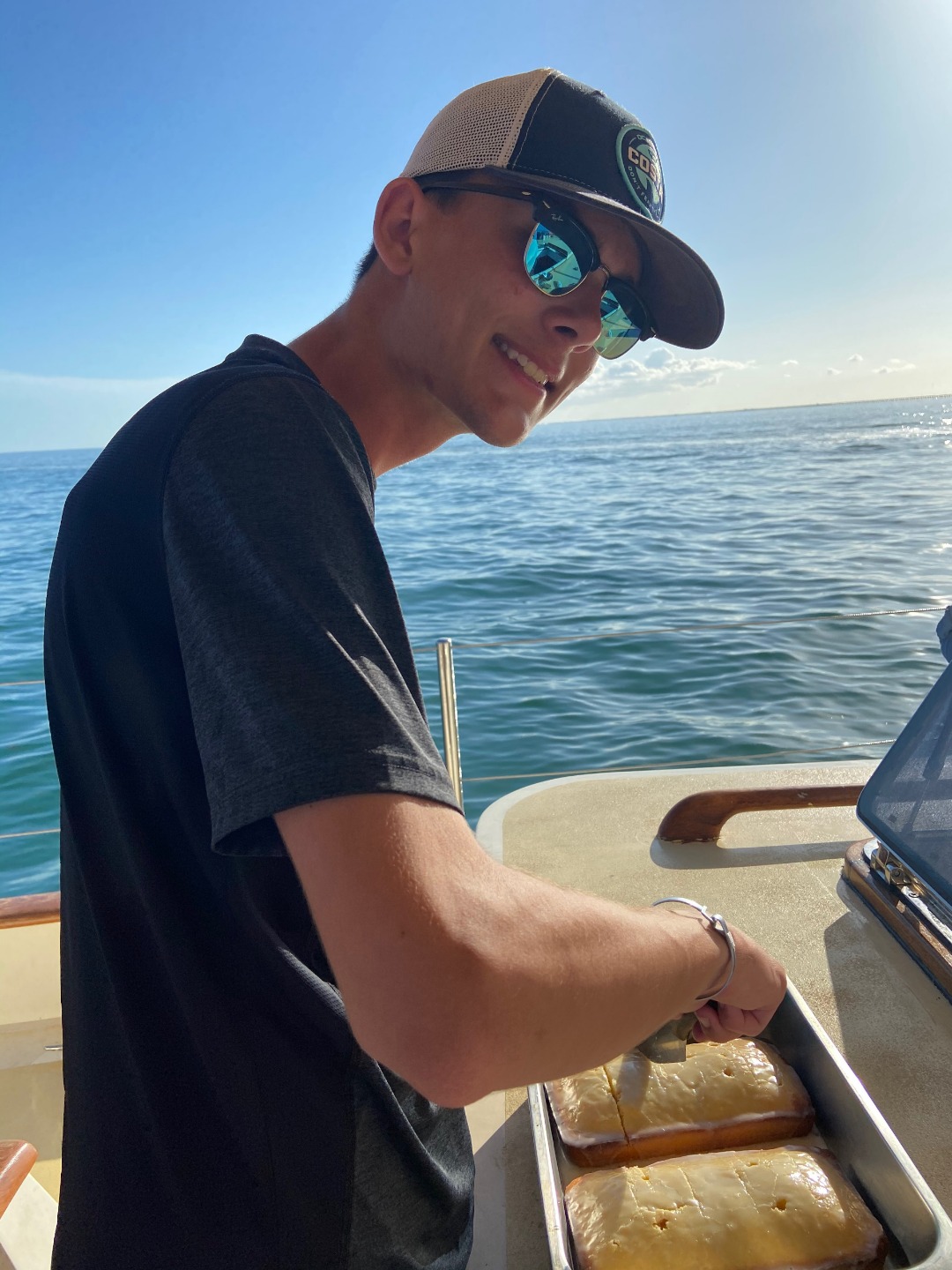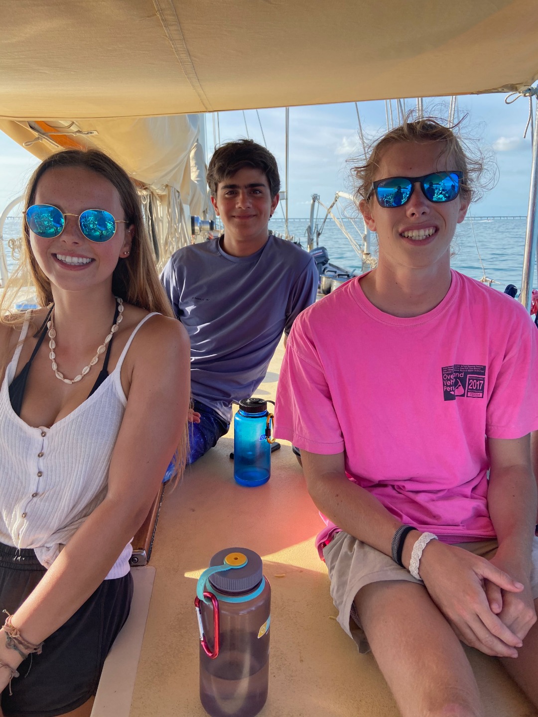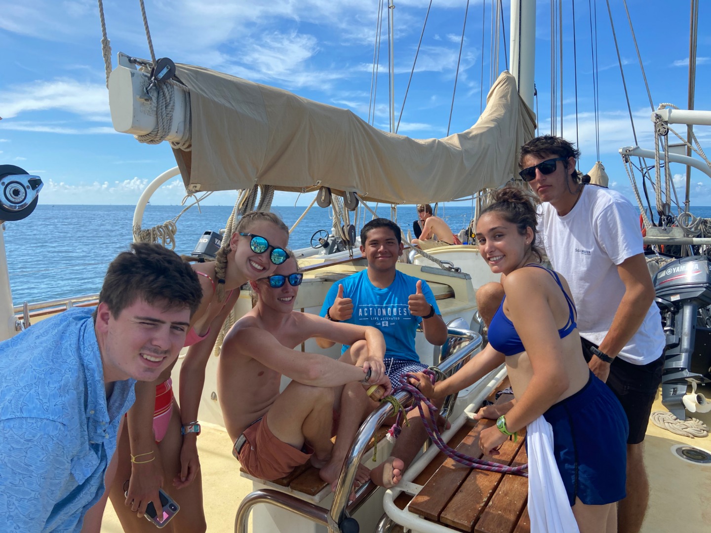 Today my birthday started bright and early at 7 am with some classic cereal and with everyone singing Happy Birthday at their own pace, all overlapping voices and tones. Once we had finished breakfast, we hung out for a little and cleaned up breakfast, while the staff did a little tune-up to the engine. Once they had finished, we moved to our first dive site for the day at Sombrero reef, where some people had seen sharks and some other cool fish, although I thought the dive after lunch was much better. The 2nd dive of the day was at delta reef, which had been quite shallow, but that had made our bottom time be a little more than an hour long. After reaching the bottom, we immediately saw a really old looking turtle that swam right past us with barnacles all over its shell. A few minutes later, we saw a nurse shark that was just in the shadows of the water. We continued to swim around and finding all sorts of things buried in rocks and hiding from the snorkelers above. We all surfaced to see where we ended up compared to our dingy, but we all had about 2000 psi left in reserves, so we went back down and continued to dive. We didnt find much on the 2nd portion of our dive but a yellow-spotted ray hiding in the sand. Then we surfaced, came back to the boat, raised the dingy, and headed back to the anchorage where we shall stay the night. Dinner was chili and rice with a surprise of lemon pound cake for my birthday, which had been really good after diving all day. Everyone sang happy birthday again, and we continued with the squeeze and clean up. Now we are just about done with clean up and looking forward to waking up for anchor watch.