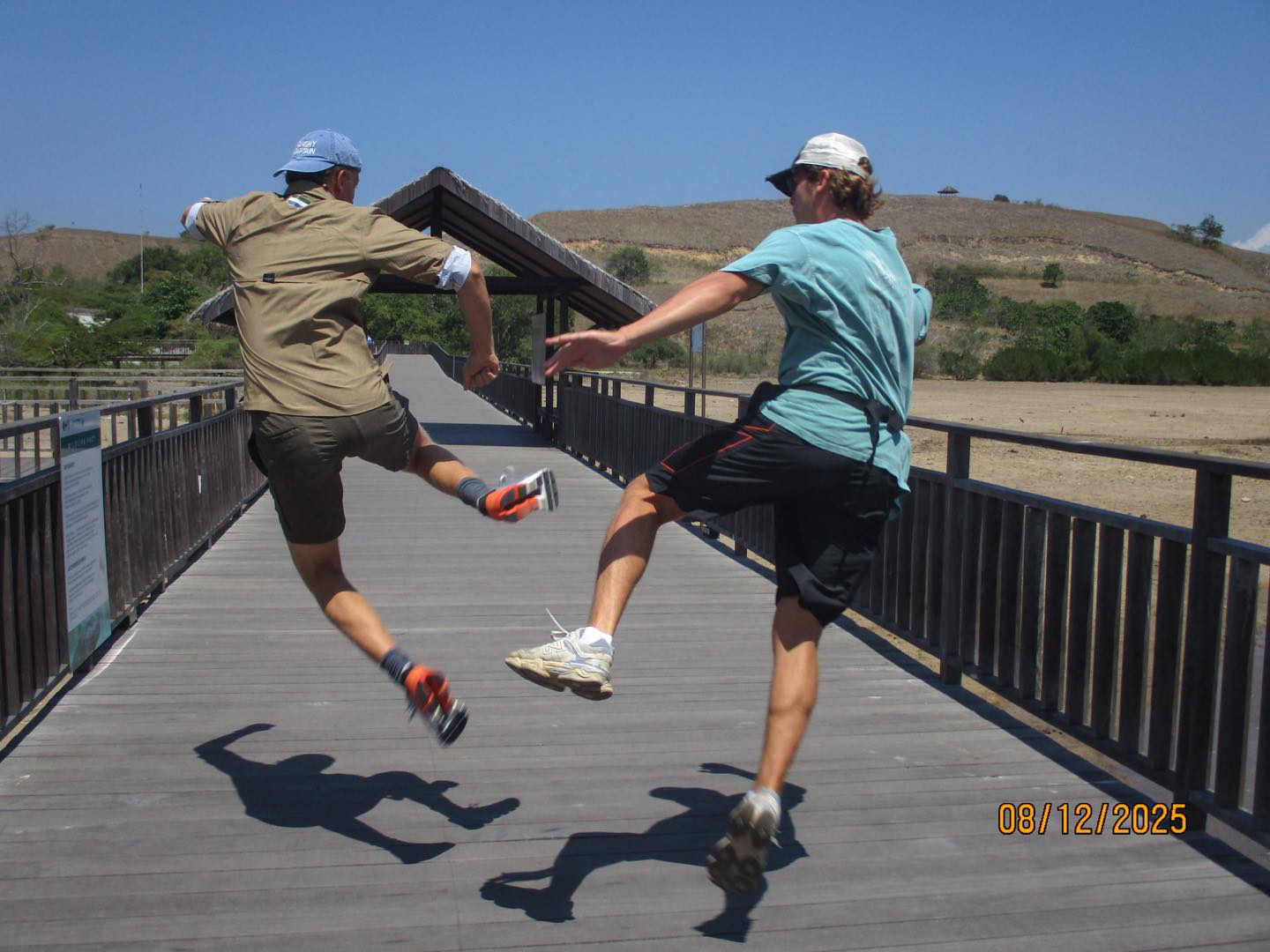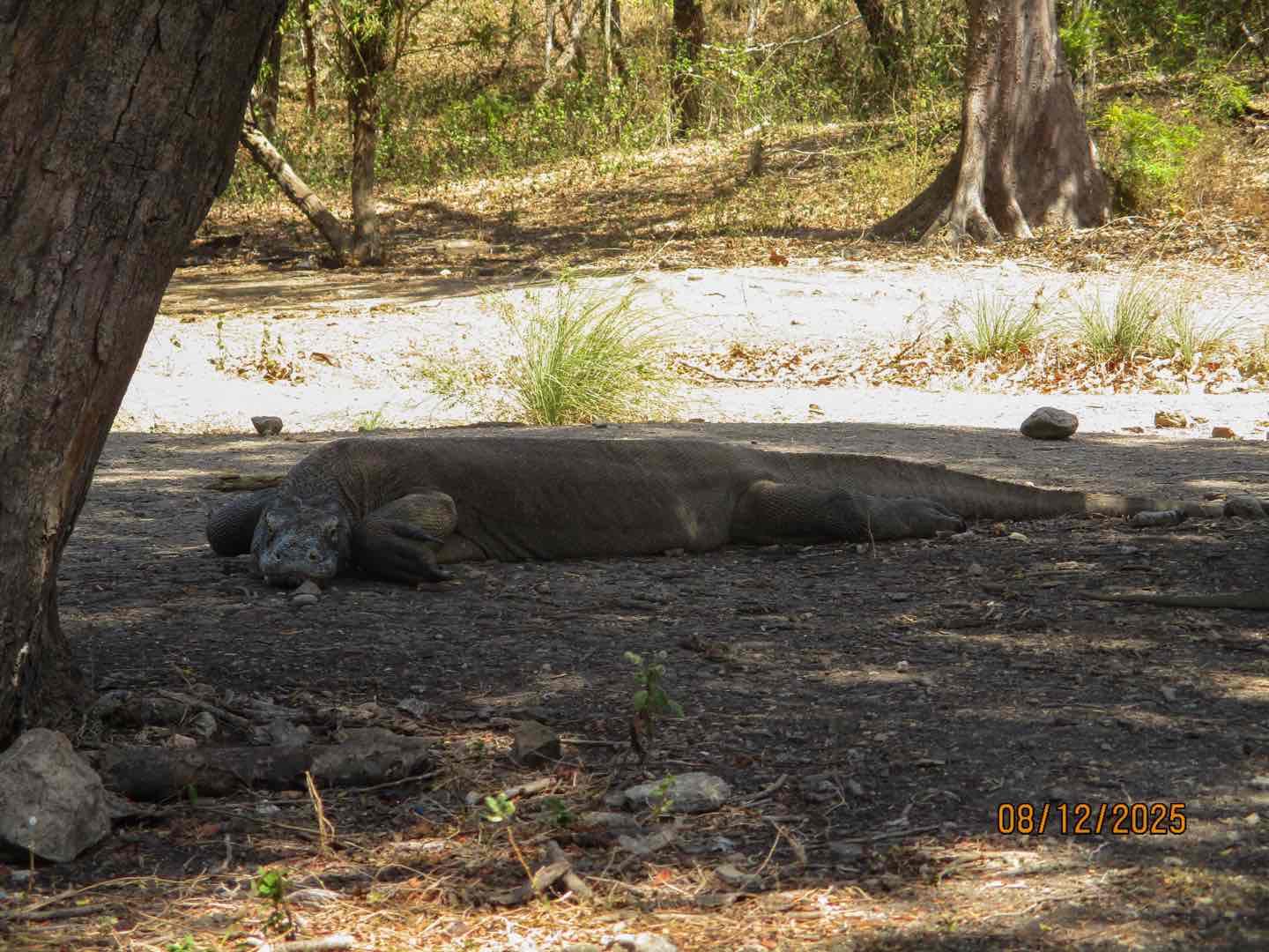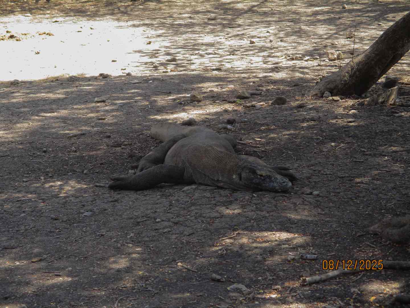 A long-awaited day for us on Vela. We have already been in Komodo for a few days, but we were able to visit Pulau Rinca (Rinca Island), which holds many interesting specieswater buffalo, deer, monkeys, wild horses, but most importantly, komodo dragons. We got to the park around 12, and began our three-hour hike through the park. Our tour guides were quite helpful, explaining the dragons life cycle, mating habits, and habitat. Making sure we kept a safe distance from the dragons at all times. The first half of our hike went through a more rocky, but shaded area. During that half we saw many dragons, monkeys, and water buffalo. Our halfway point was marked by a very fat dragon, which had just eaten and will not eat for another two weeks at least. We then walked through a very scenic, grassy savannah. Didnt see many animals, but we were able to enjoy the rolling hills, hundreds of palm trees, and a view of the island coast from above. At the end of our hike, we were able to purchase some cold drinks and souvenirs before dinghy-ing back to Vela for dinner. Besides the national park, we also celebrated Arden and Brookes birthdays, 20 and 27, which were quite special. Lots of cake and brownies were enjoyed after dinner. On a sadder note, it was our last day with Josh L, so for a squeeze, we all said happy birthday, Arden, happy birthday, Brooke, and farewell, Josh L.