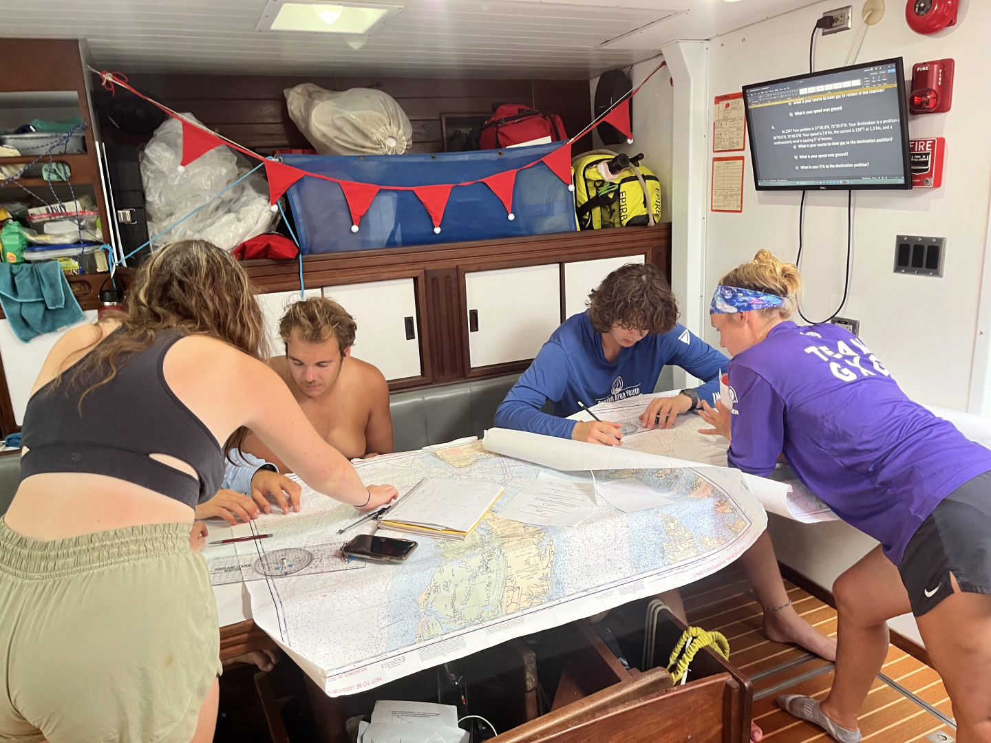 Wow, it is weird to think this will be the last time I’m writing a blog on argo. It feels like just yesterday, I was skipper walking around Rome. It really is amazing how far we have come from asking each other what their names are to have the first-ever cargo boat rave tonight in the middle of the Atlantic Ocean! I really couldn’t have asked for a more amazing group of peopleenough of this time to talk about today. Watch team 3 had a lovely wake-up at 12 from Greta and Hillary, who sang us a song they had made up. As we walk up on deck, we hear… well, nothing. It was so quiet with the engine off. It was the first time Argo had sailed for 24 hours straight without the engine on this semester. We had a pretty good watch where we worked on our Christmas song. It is honestly kinda good, but don’t let the rest of the team know I said that. After watch, I worked on my fish ID book for a little and went back to bed. After a tasty lunch, we had our final oceanography lecture and nav master. I have to say nav master is really hard, but I get so into it. I can already hear people getting ready for the boat rave. I think its going to be pretty good as everyone has such good music taste.