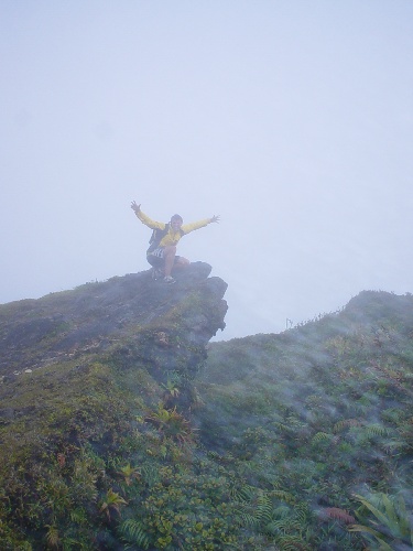 This morning, we woke up to Curry’s delicious crepes, which was a good start for an adventurous hike up the active Mount Pelee (last eruption 1902). We met our bus driver at 8 a.m. to bring us up to the base of the volcano. I was pretty intimidated because clouds covered the top of the peak, and there was no telling how far it went up. We started our ascent up the pathway that was dubbed “the spirit breaker,” and it just seemed to go on forever. Once we reached the caldera, we ventured down into the crater and up the new cone. It felt like a dream being surrounded by lush green foliage and dense clouds. The winds were so intense, and the trail was so steep that one wrong step could have been catastrophic. Once we conquered the volcano, our spirits went way up. While descending “the spirit breaker,” I was thinking to myself, maybe it should be called “the spirit maker”!