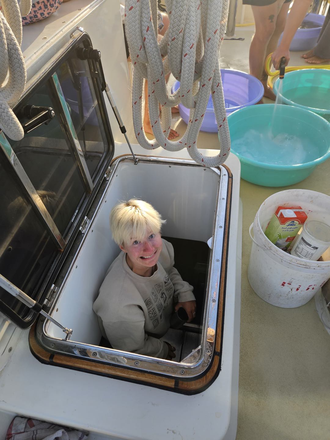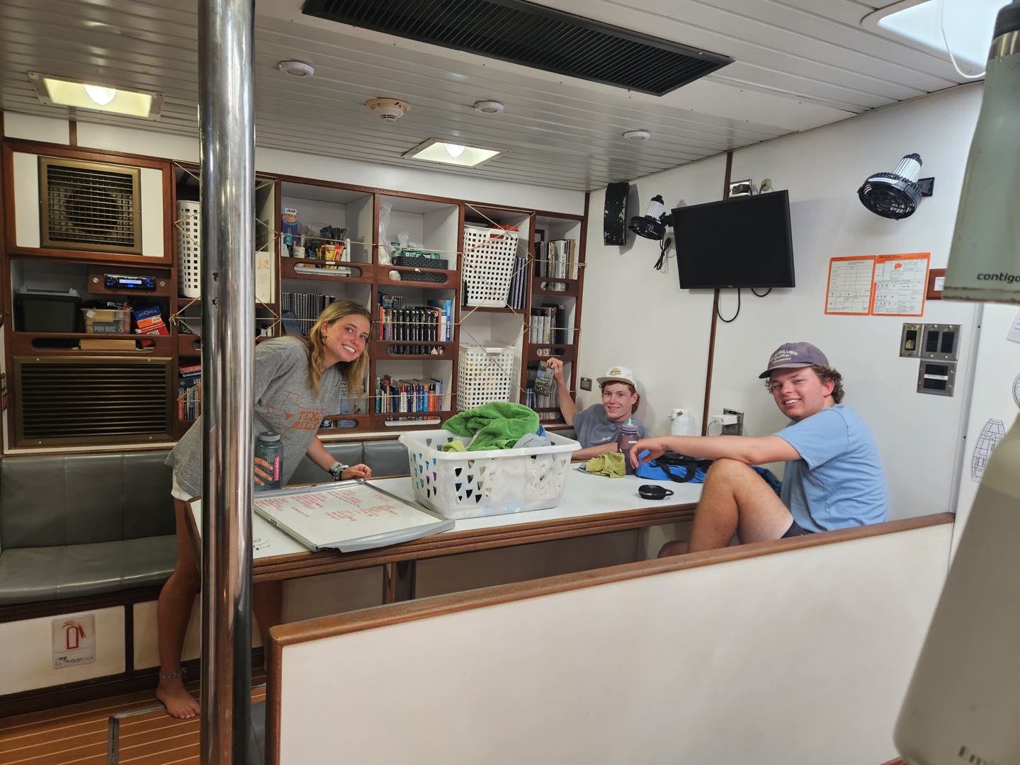 It has been a crazy ride these last 38 days, but today is the last full day on board Argo for this crew of 32 people. Today was full of lasts. Last time the chef would forget to wake up and cook breakfast, last (full) meal on Argo, last count off, and last squeeze. Today started off pretty slow as many of the crew were up late finishing up their cards and taking time to sit down and have some final guitar sessions. After doing three rounds of wake-ups, I decided it was time to use the lights to my advantage, so after turning on every white light up forward to brighten things up, the crew crawled their way out of their bunks and moved their naps to the cockpit so they would be ready for cleanup.