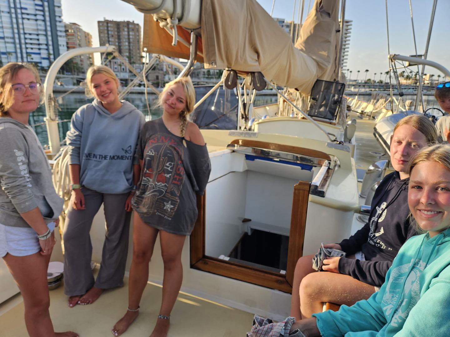 Our last afternoon was spent doing the last floor scrub before heading to shore for some last-minute souvenir shopping. To wrap up our night, we did the final squeeze, where everyone shared the first story they are going to tell their families when they get home. Final dinner was out at a tapas restaurant where many people tried some local dishes, and other pickier eaters (like myself) enjoyed a burger. As we are winding down our final hours on the boat, I can hear Shane playing guitar on top of the chart house with Rook and Alex singing along. Lou Lou, Jack, Mimi, Henry, Macie, Logan, Brady, and Avery are all sitting in the saloon reminiscing about all of the adventures they have had.