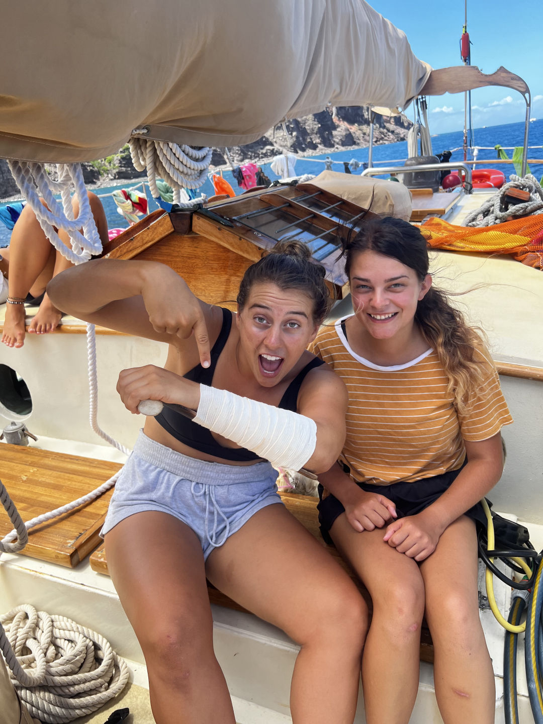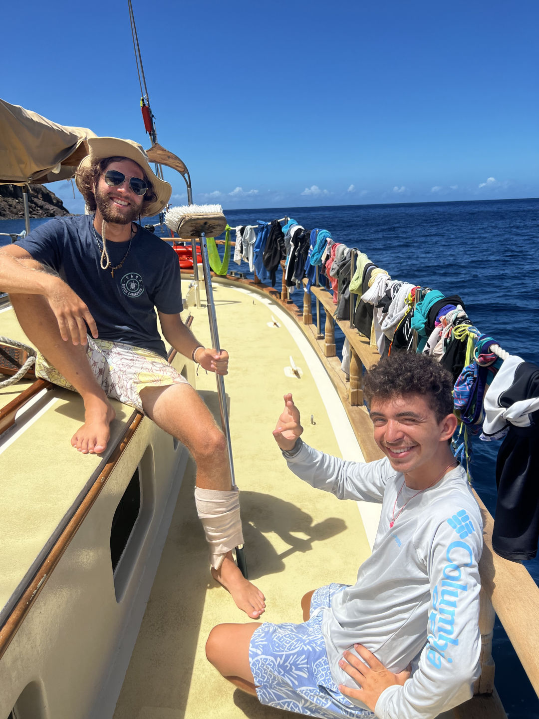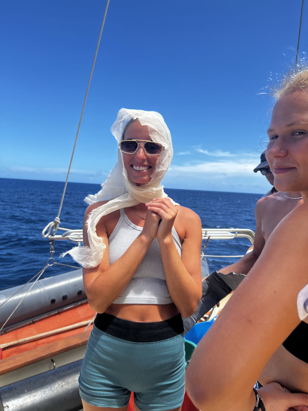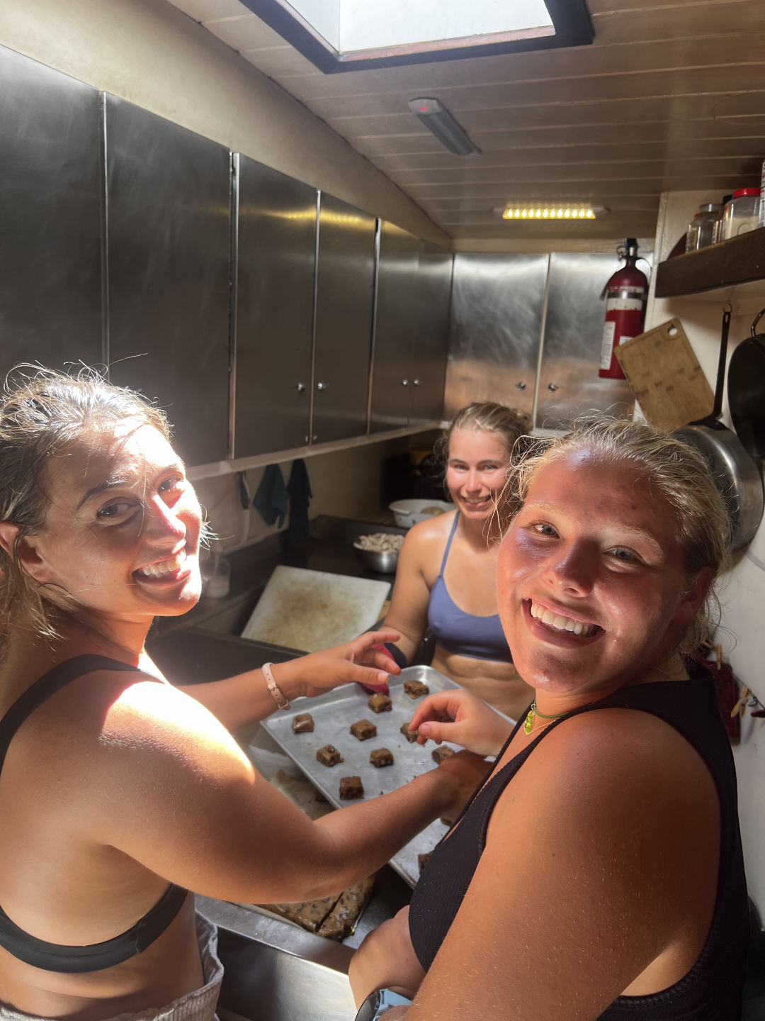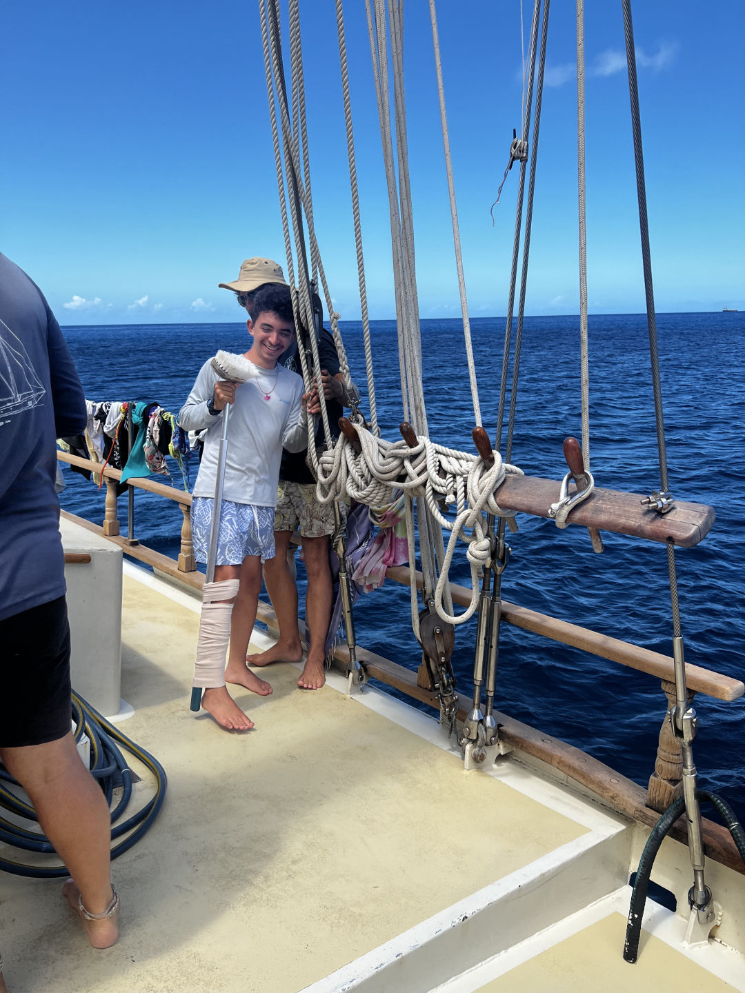 We started the Final Passage to the BVI, starting the day with oceanography and learning about Fisheries and Aquaculture (a personal favorite of mine). Then we moved to our final EFR class, where we did SAMPLE, injury assessment, splinting, and bandaging. We also had some fun acting out different situations and having all of us figure out what was wrong with them and how to properly treat it. We also had an amazing lunch followed by some free time, some used for charting and some used for lounging. Then we did our last big boat prep and set sail. The dinner was absolutely amazing, chicken pot pie and cookies, and then we headed straight into the storm, tossing and turning in the rain till we switched watches and went to bed.