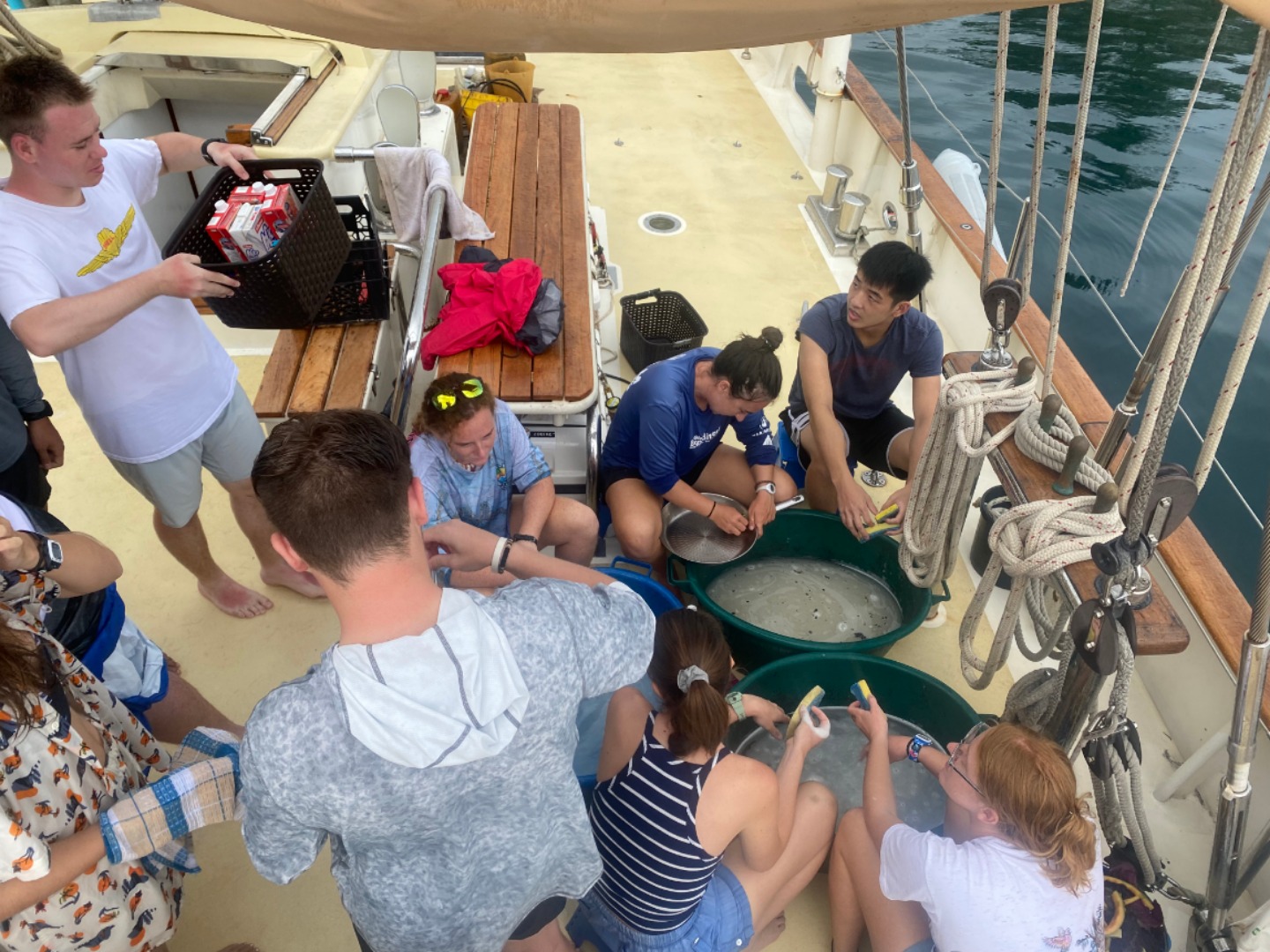 10. The deckies (Matt, Chloe, Grace, Amelia, and Sydnei) hard at work scrubbing the deck after breakfast