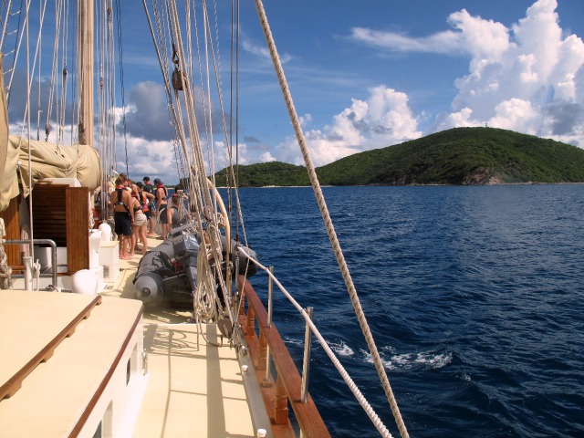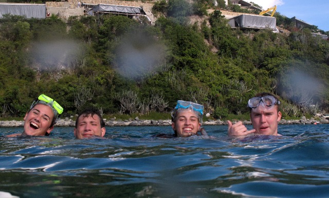 I woke up this morning with a party on deck. Then, I started as a skipper, which meant that I got to brief everyone on the agenda for the day during breakfast. After that, we started working on the diving certifications. Some of us are going for their Advanced Open Water, while others are hopefully going to be Open Water certified before we leave the BVI’s. It was really fun to set up all the dive gear for the first time onboard Oceanstar as an advanced diver. Then we went sailing. We raised the staysail, and I got to steer for the first time, which was also a fun thing to do. We got to Savannah Bay, and the first thing we did was jump in the water and start snorkeling. We saw a lot of fish and weird-looking plants, and we also took a lot of pictures underwater. We went back on deck, where it was the open water diver’s turn to learn how to set up their dive gear. Right after that, we started to get everything ready for the Mexican fiesta. I hope we can have an evening like this for the whole three months!