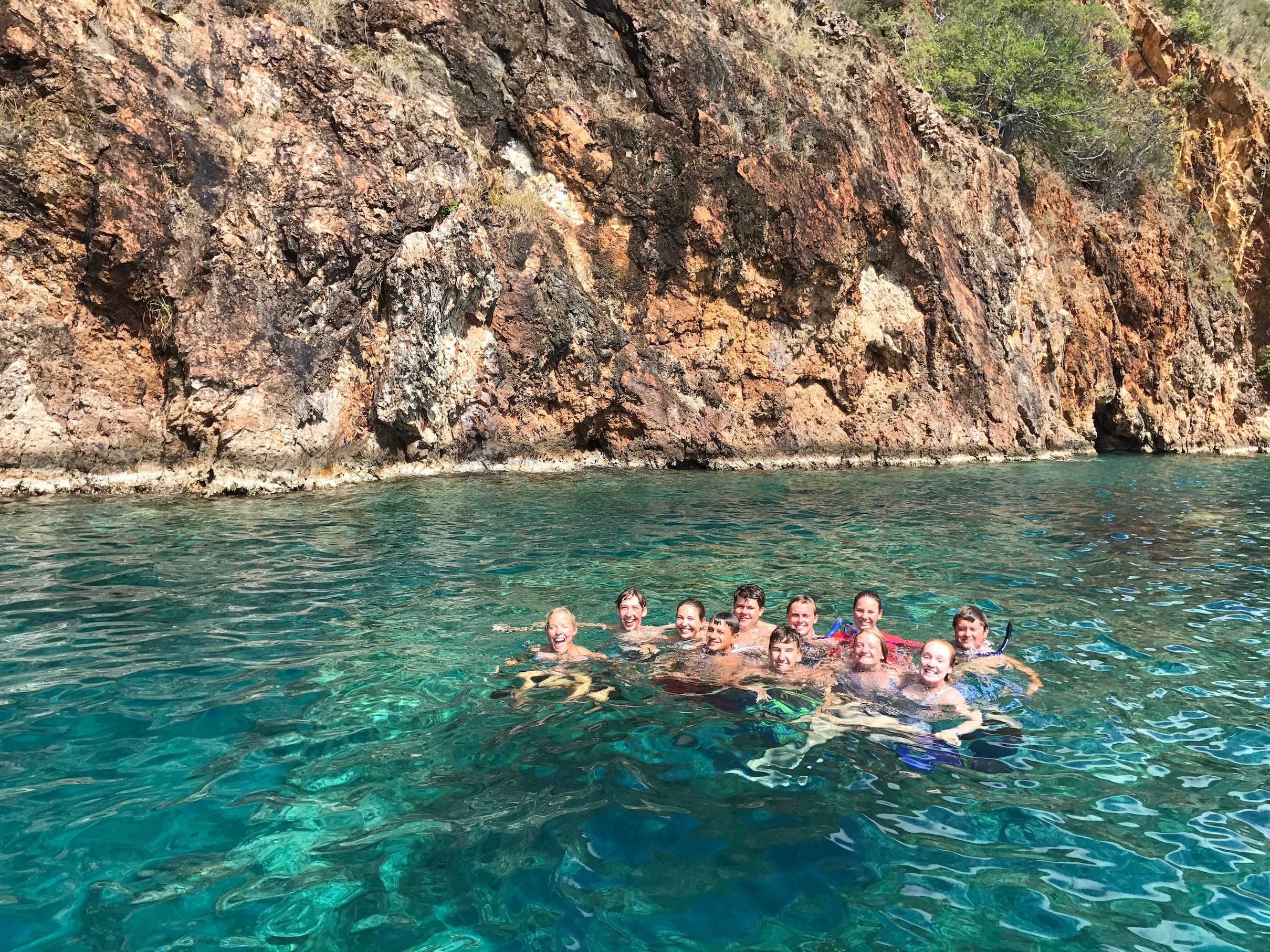 We dropped anchor a little afternoon and ate lunch: Kraft mac n’ cheese and hot dogs. You either hate it or you love it. After lunch, we grabbed our snorkel gear and dinghied over to the caves on Norman Island, and we spent a couple of hours exploring. There were some squid and octopus sightings, as well as many reef fish. Those of us in the rescue course will get our exams back tonight (cross your fingers we all passed), and then we have the rest of the night off. We’ll likely stay up late playing cards or watching a movie. In the morning, we’re off to Sandy Spit for a little more adventuring.