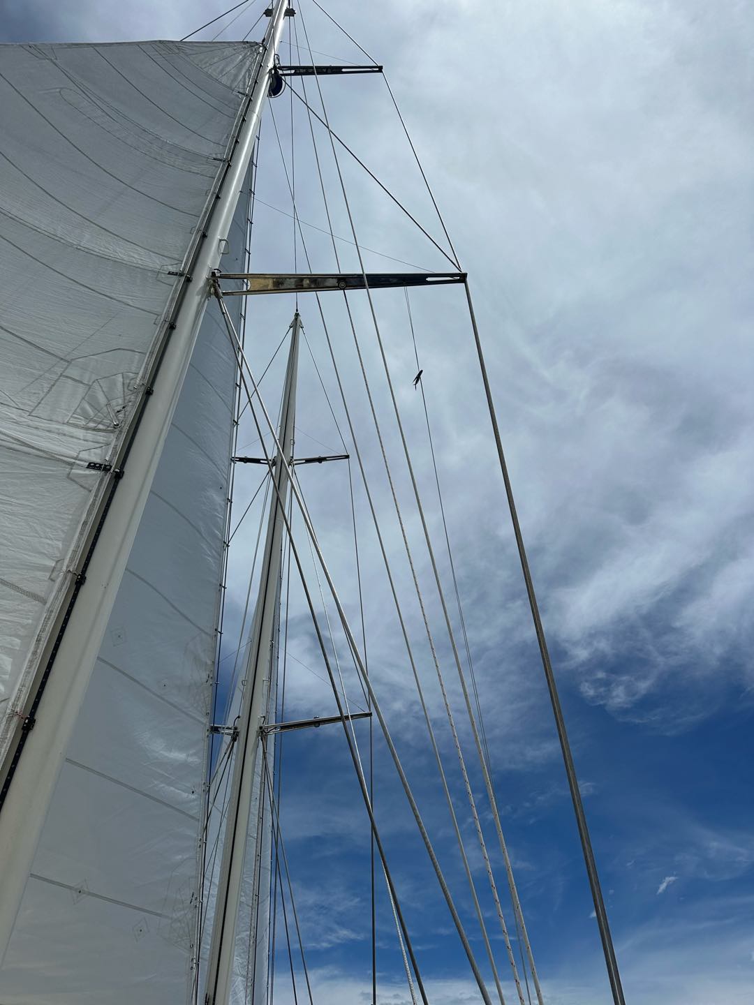 Our next shift at 8 am found the vessel in much the same state as we left it. Light air from the southwest, the gale was not to be. The sky was filled with crazy cloud formations, and it was clear the weather was quite confused. Swell came in from multiple directions and led to the boats French press taking a dive off the hot box. A funeral and memorial service for the main source of coffee will be held in the coming days. My team found a flying fish on deck and set about surprising me by raising it up the flag halyard. I happen to love puns and, since we have a sail named the fishermans sail, I loved it when they said, Shane, look! We raised the Fish!