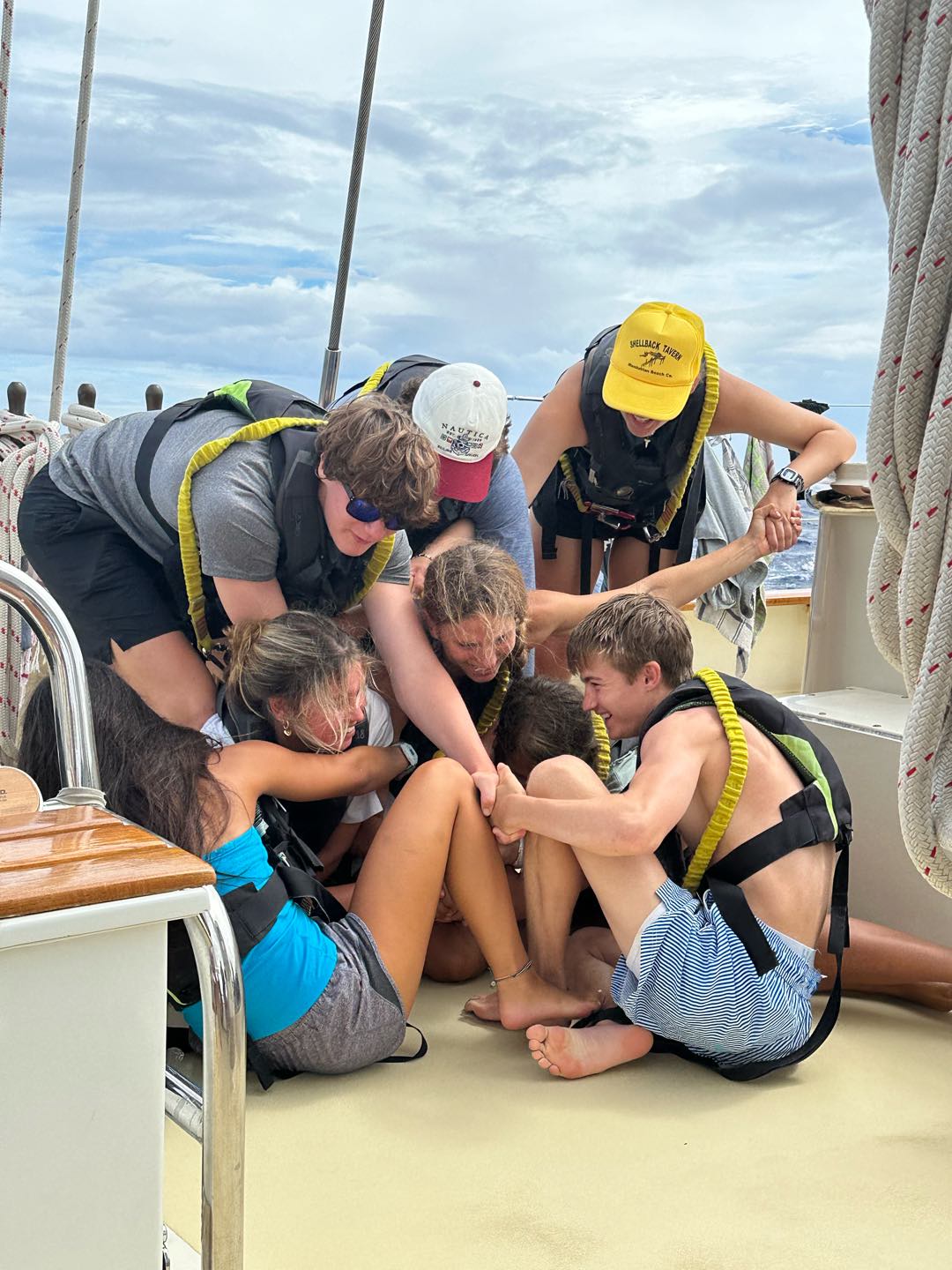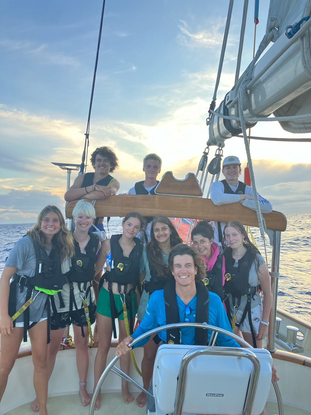 Lunch was some delicious black bean burritos prepared by Alex, Meg, and Charlie. Classes consisted of the final lecture on chart plotting and untying human knots. As I write, we have just finished another lovely curry mea,l and it looks like we are in for a wonderful sunset over the deep blue Atlantic water.
