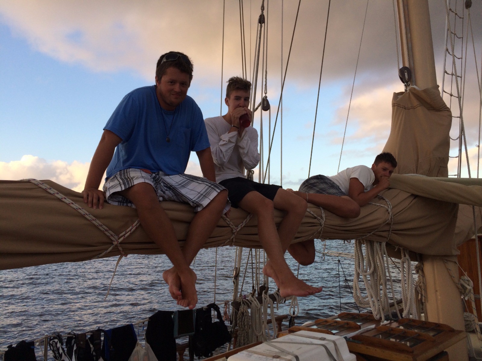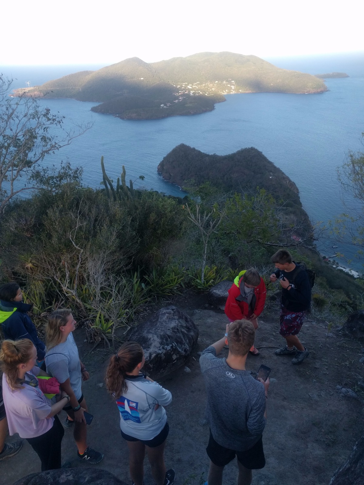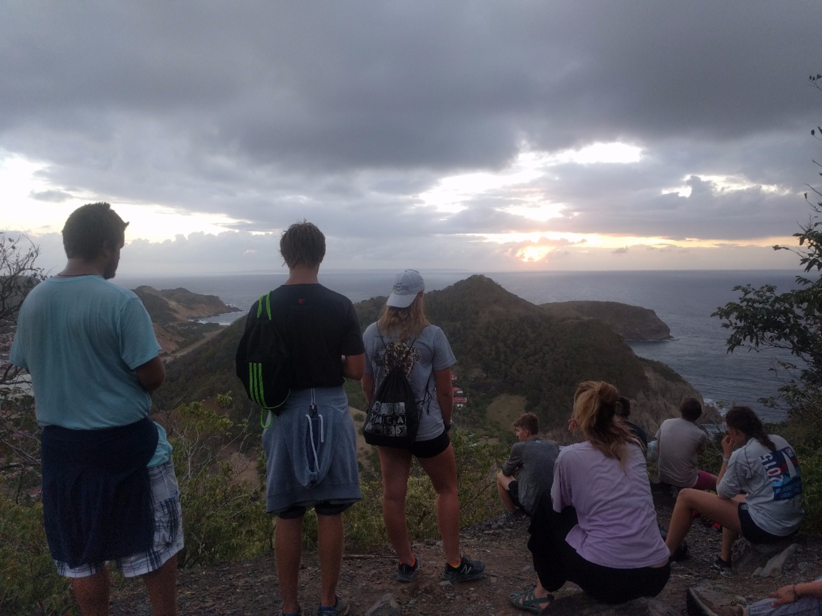 Today, some of Ocean Star’s crew started their morning very early and landed themselves on the dock just in time to watch the moonset. These brave souls set out to catch the sunrise by hiking up to the top of La Chamaeu. They watched the sunrise out of the east as they reached the top of the hill and then continued over to a 1700’s 1700s-era abandoned French outpost. When the crew got back to the ship, they had huge smiles when they saw that we were having some French pastries and baguettes for breakfast. After breakfast, we had a marine biology class and then set up to go scuba diving for research on our projects coming up. After the research dive, we had lunch and some time to rest before some of the crew got back into the water to continue their rescue and advanced open water scuba certifications. After the crew returned from their dives, it was time to get some work done before dinner was served. Leadership class is the final item on the agenda tonight, and then it is off to our bunks following a busy, busy day.