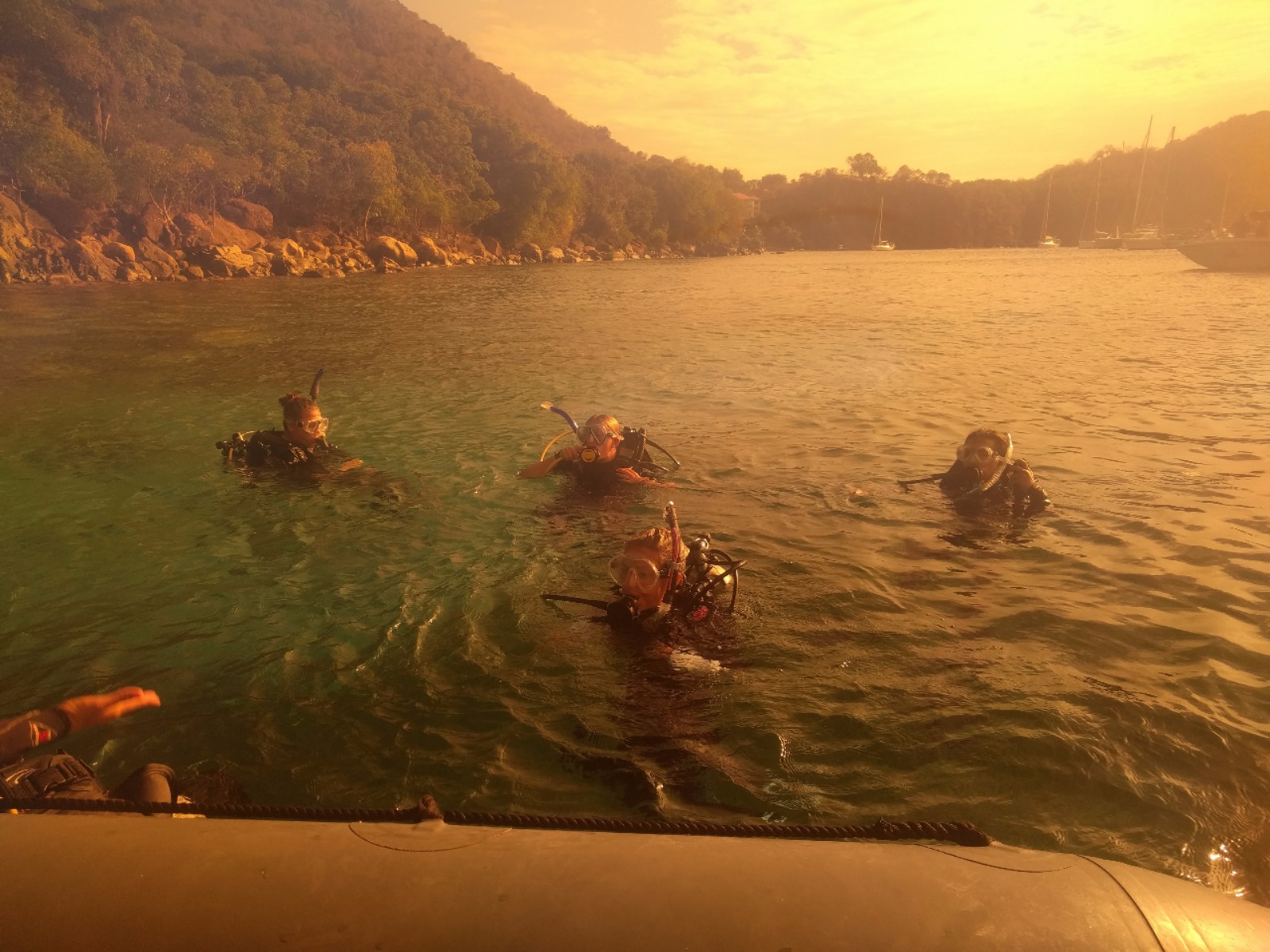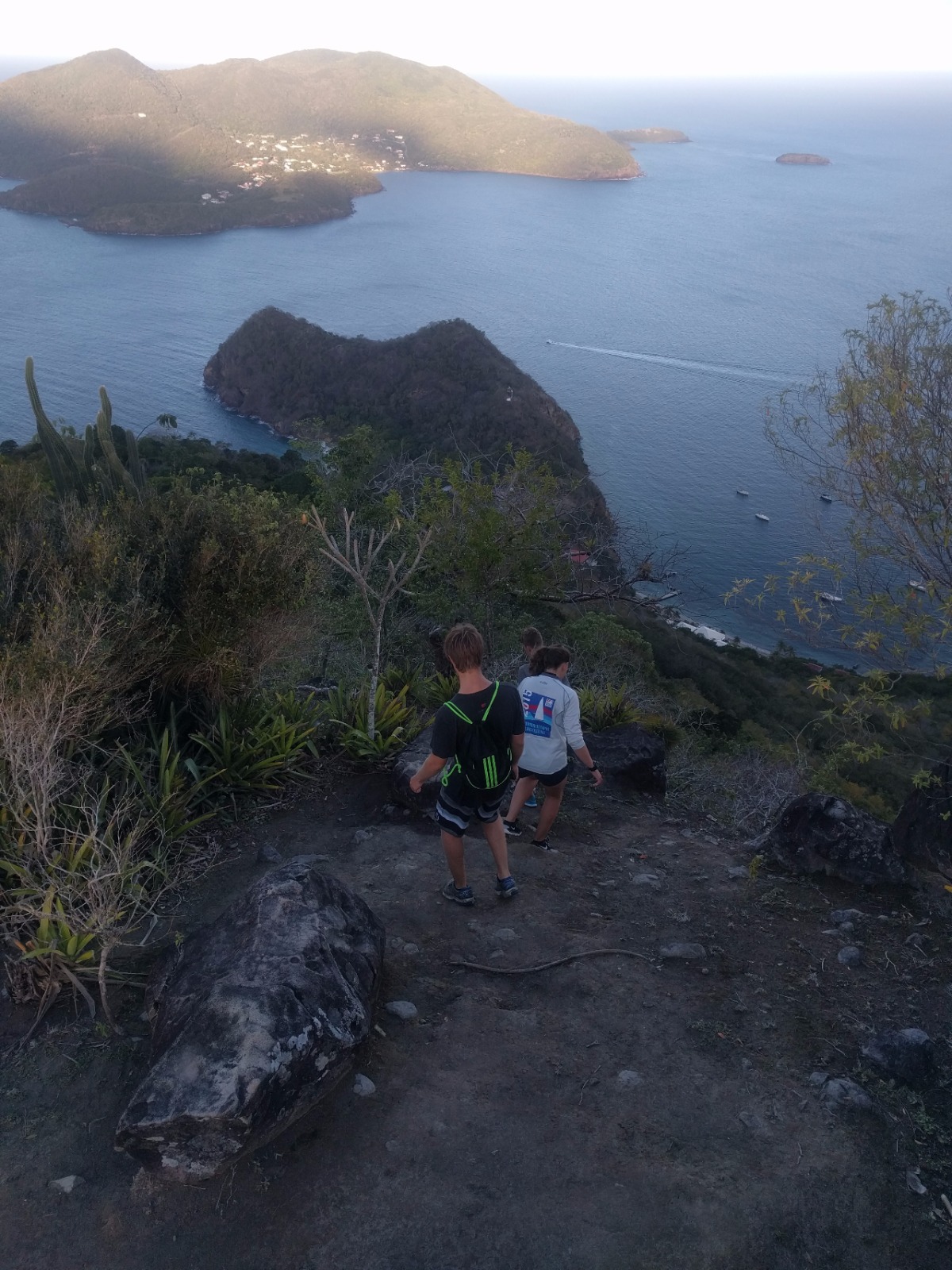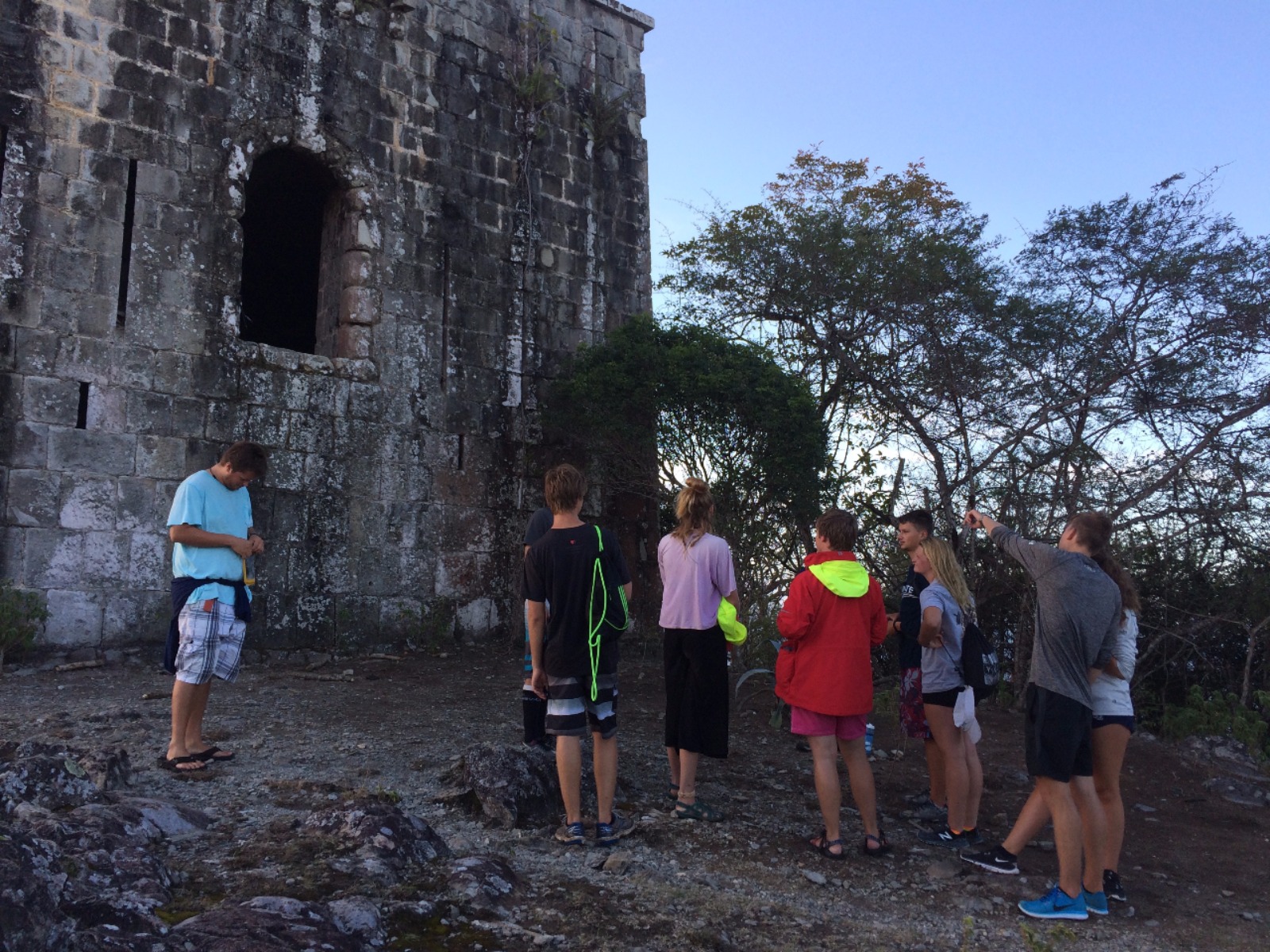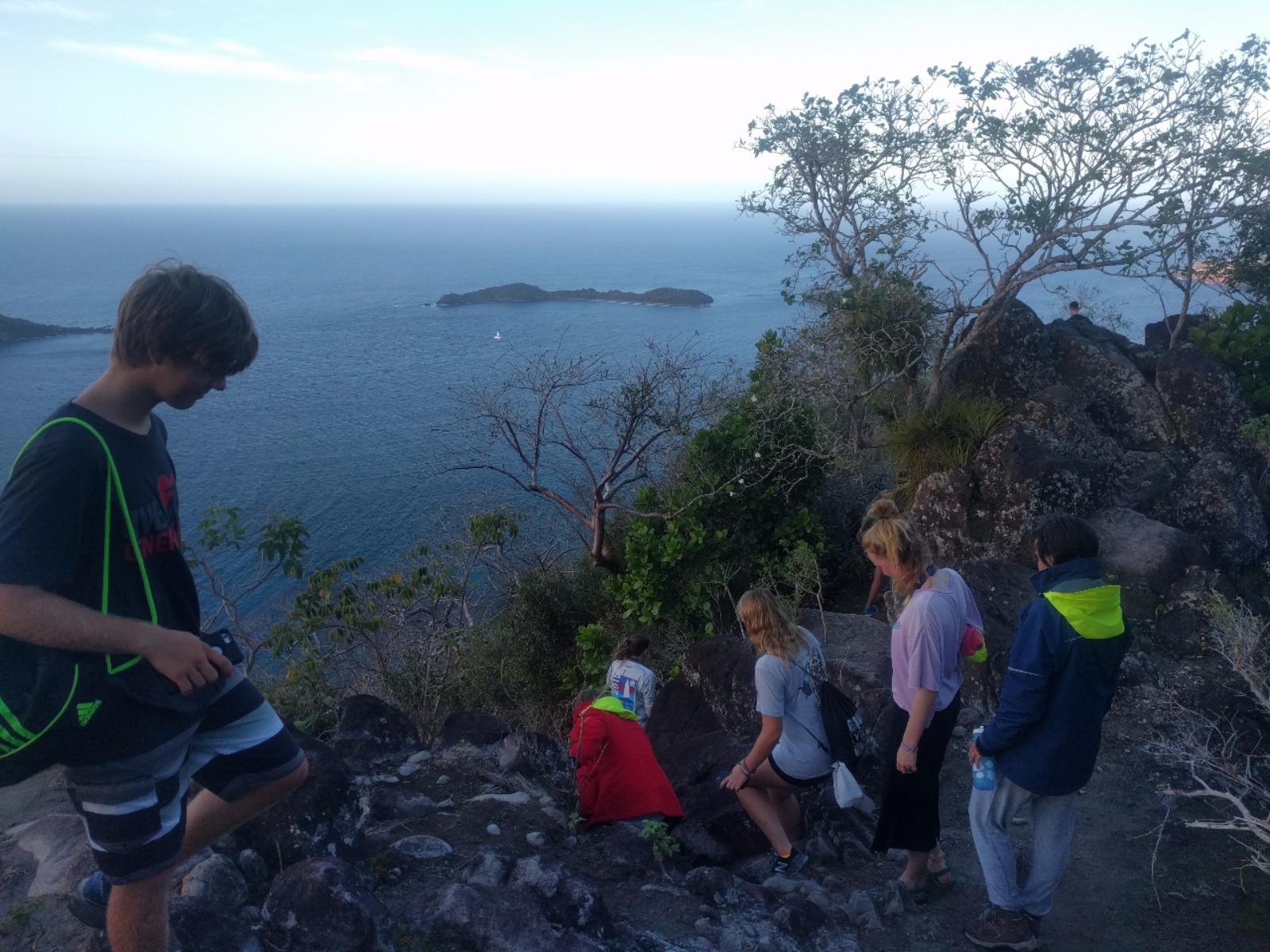 Today, some of Ocean Star’s crew started their morning very early and landed themselves on the dock just in time to watch the moonset. These brave souls set out to catch the sunrise by hiking up to the top of La Chamaeu. They watched the sunrise out of the east as they reached the top of the hill and then continued over to a 1700’s 1700s-era abandoned French outpost. When the crew got back to the ship, they had huge smiles when they saw that we were having some French pastries and baguettes for breakfast. After breakfast, we had a marine biology class and then set up to go scuba diving for research on our projects coming up. After the research dive, we had lunch and some time to rest before some of the crew got back into the water to continue their rescue and advanced open water scuba certifications. After the crew returned from their dives, it was time to get some work done before dinner was served. Leadership class is the final item on the agenda tonight, and then it is off to our bunks following a busy, busy day.