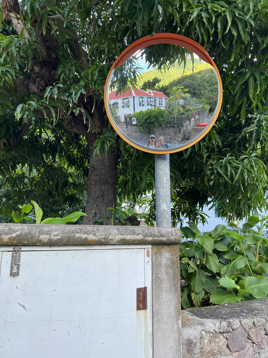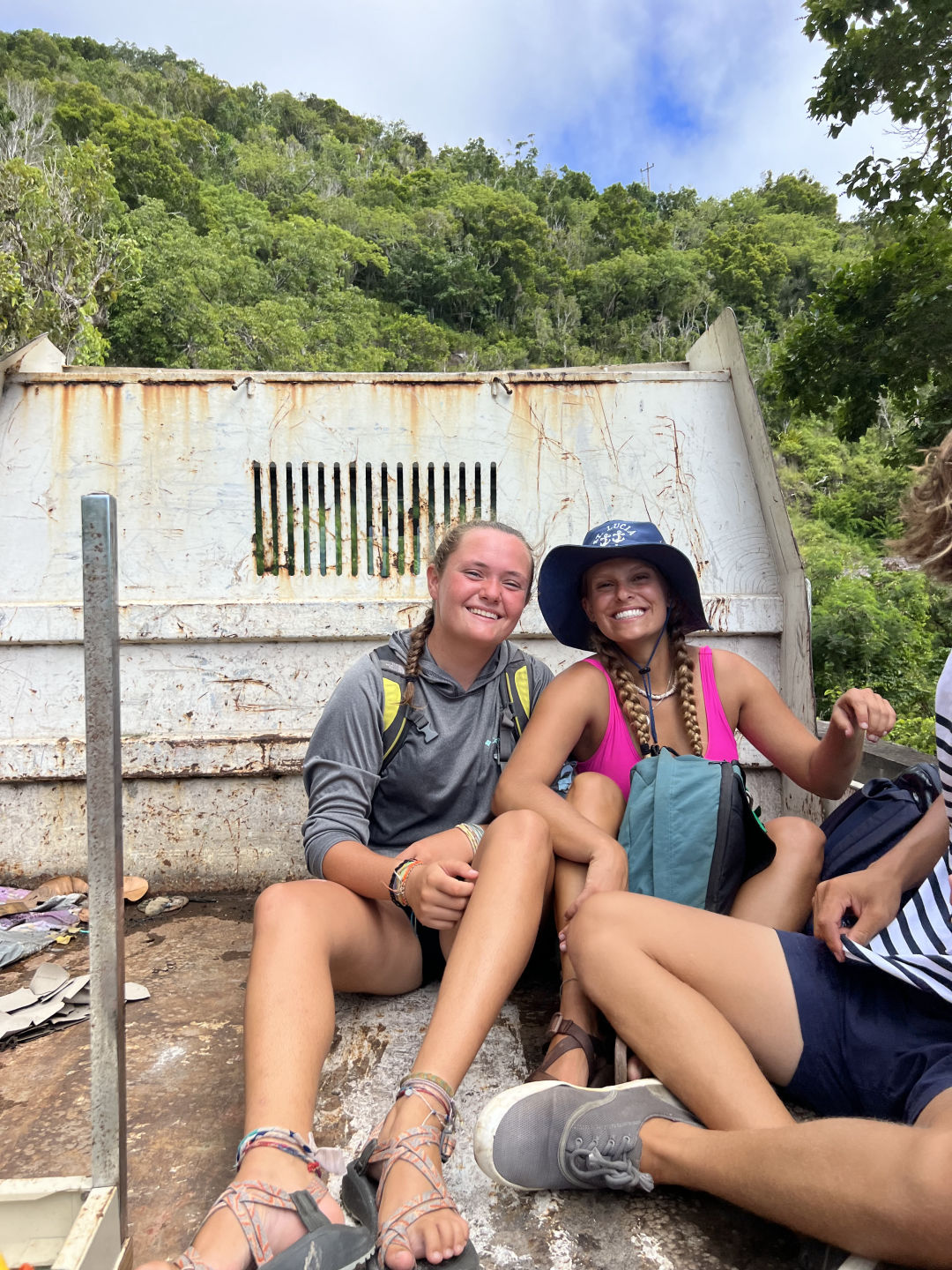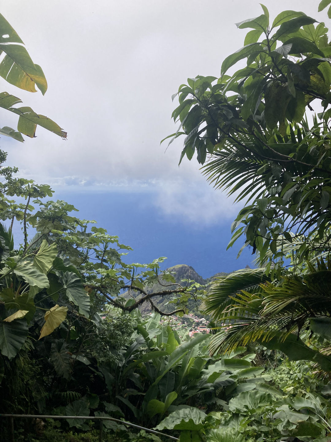 Crazy seeing you guys here! My shore day started off a little rocky, literally and figuratively. The ladder. WOW. That ladder was like the stairway to heaven. Unbelievably long and almost killed me. But do not fret! I persevered and made it to the main road to catch a ride. After about 15 minutes of standing in the middle of the road with my thumb up, feeling (and I’m sure also looking) like a fool, a nice man in a truck drove by and turned around to pick us up. Here in Saba, the main mode of transportation is hitchhiking; the locals are very familiar with picking people up for no other reason than kindness. The first man that gave us a ride only made us pay in the currency of helping lift a table into the back of his truck. The feeling of riding through hilly Saba and seeing the views from the peaks and valleys of the road was unbelievable. He then dropped us off at the bottom of the Mt. Scenery Trail! The crew on that ride began our trek up the highest peak in the Netherlands for a few minutes until we stopped lying to ourselves and turned right back around to check out the town. Kebo, KT, and I began a whole new trek, one to the infamous JoBean. A wonderful woman on the island that makes beautiful glass art that we all visited to admire her work. Post-JoBean, I do what I do best onshore days, which is sit my butt down and eat at a restaurant. We enjoyed a wonderful meal and then proceeded to walk all around the island (partially because we got lost but mostly just to explore). We then circled back around to where it all began, the trailhead, and awaited for another driver to come our way.