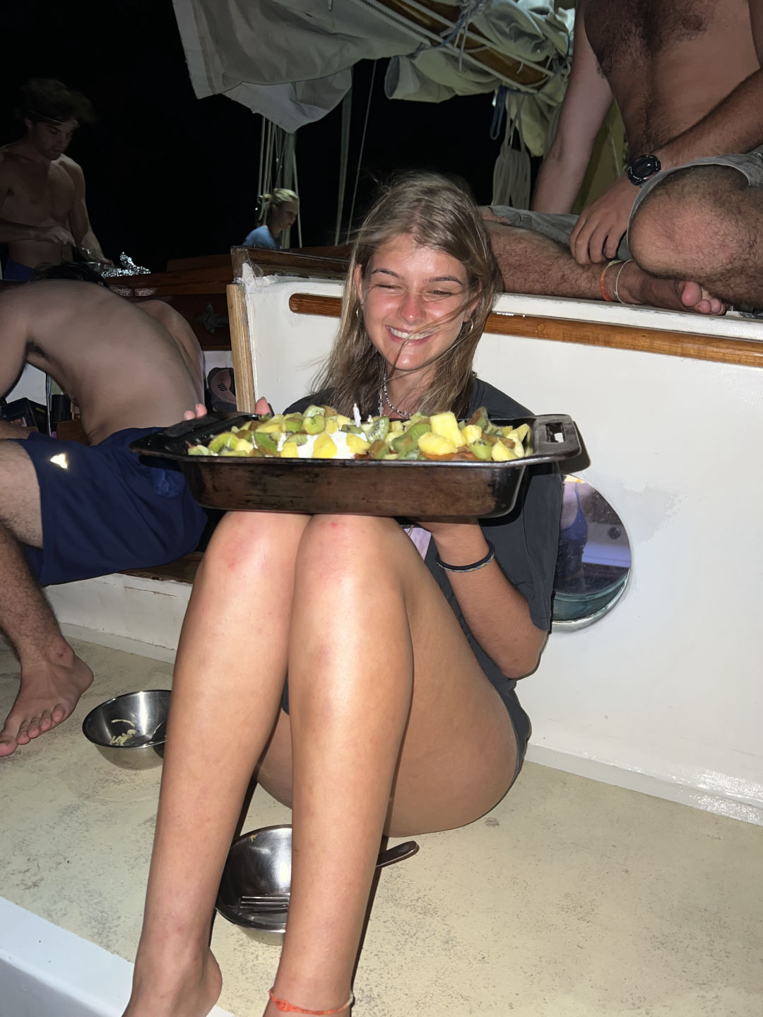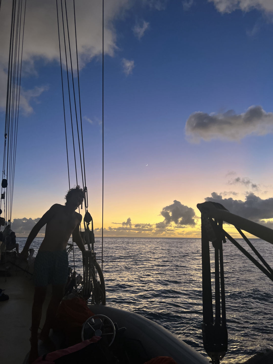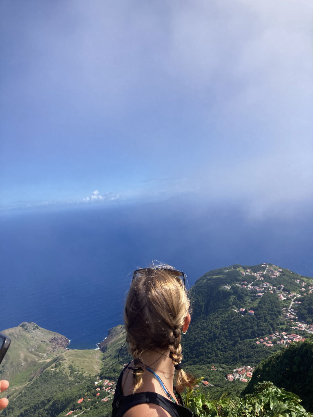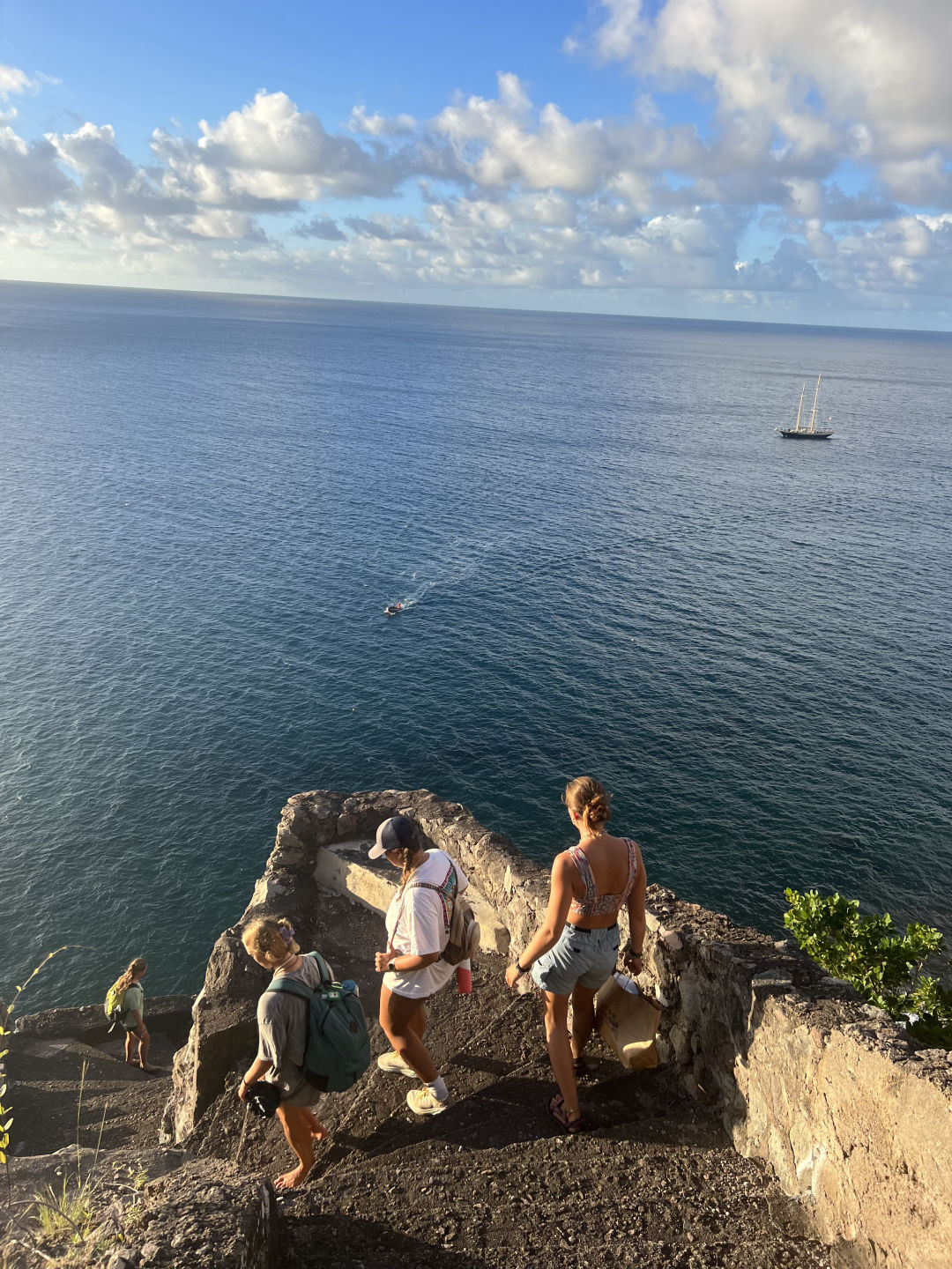 My day was rather similar to Carli’s, well, I didn’t wake up in the most intense food coma of my life like Carli, but other than that, we had similar mornings. Right up until she ditched me on the hike, I was left to fend for myself, climbing up more stairs than I ever have in my entire life. It was well worth it, though, because now I can say I’ve hiked the tallest peak in the Netherlands. Without even having to go to the Netherlands, how convenient. The view was insane, especially once the clouds parted and we could see the island below. The trek down was, as you guessed, more stairs but more enjoyable as I had run into Mia, Sydney, and Waring. Today’s hike really made me feel less bad about the dessert I ate for breakfast and gave me a newfound appreciation for flat ground. The trip down felt like five minutes, and we headed straight for town. The top priority for me was to get a cool T-shirt or two and then find some food. Both were a success, and I ate a pretty tasty salami sandwich. During our meal, this couple had begun to ask us to take a photo of them, and this other guy (remember him for later) came up and says that they couldn’t ask us to take a picture since they didn’t know us and we could steal their phonevalid point. The couple then hands their phone to the guy, a complete stranger, who jokingly takes a few steps away from the couple, pretending to steal their phone. It was quite comical, and everyone thought it was funny. Maybe it was the “you had to be there type” funny, but I thought I’d share. Our time on shore was almost up, but we took a quick walk over (well, it was actually quite slow because it was, unfortunately, all uphill) to this lovely little shop called Jobean. Maybe Carli mentioned it. But it’s a shop that sells a bunch of really cool glasswork, like jewelry and figurines. I did some damage in there and secured all the Christmas gifts for the fam because somehow that is like a month away. Also, don’t worry about the damage. It was only done to my credit card. Not any of the glass. That would be too expensive. Time flies when you’re having fun because, by the time we were done, it was just about time to find a ride back to the stairs. A few cars passed us and didn’t give us a ride, and this truck was about to stop for us when all of a sudden, we heard a voice saying, “remember me.” We look across the street, and you’ll never believe who it was. It was the guy from the restaurant. They pretended to steal the phone. What are the odds? (I mean probably pretty high considering its a small island, but still) The four of us hopped into his car and were on our way back to the ladder. The guy was giving some great advice on the drive back, like “even if you don’t know how to do it, just say you do.” For context, this was in reference to his work as an electrician in Holland. Wise words. He was such a lovely man and so kind to have given us a ride. He dropped us at the ladder and was off. And Just when you thought there were no more stairs, there were indeed more. I couldn’t tell you how many, but let’s just say I’m glad this boat has minimal stairs because I don’t even want to think about them for at least a week. I say that, but it was all so much fun Saba is easily one of my favorite islands down here, and I had such an amazing day. 🙂