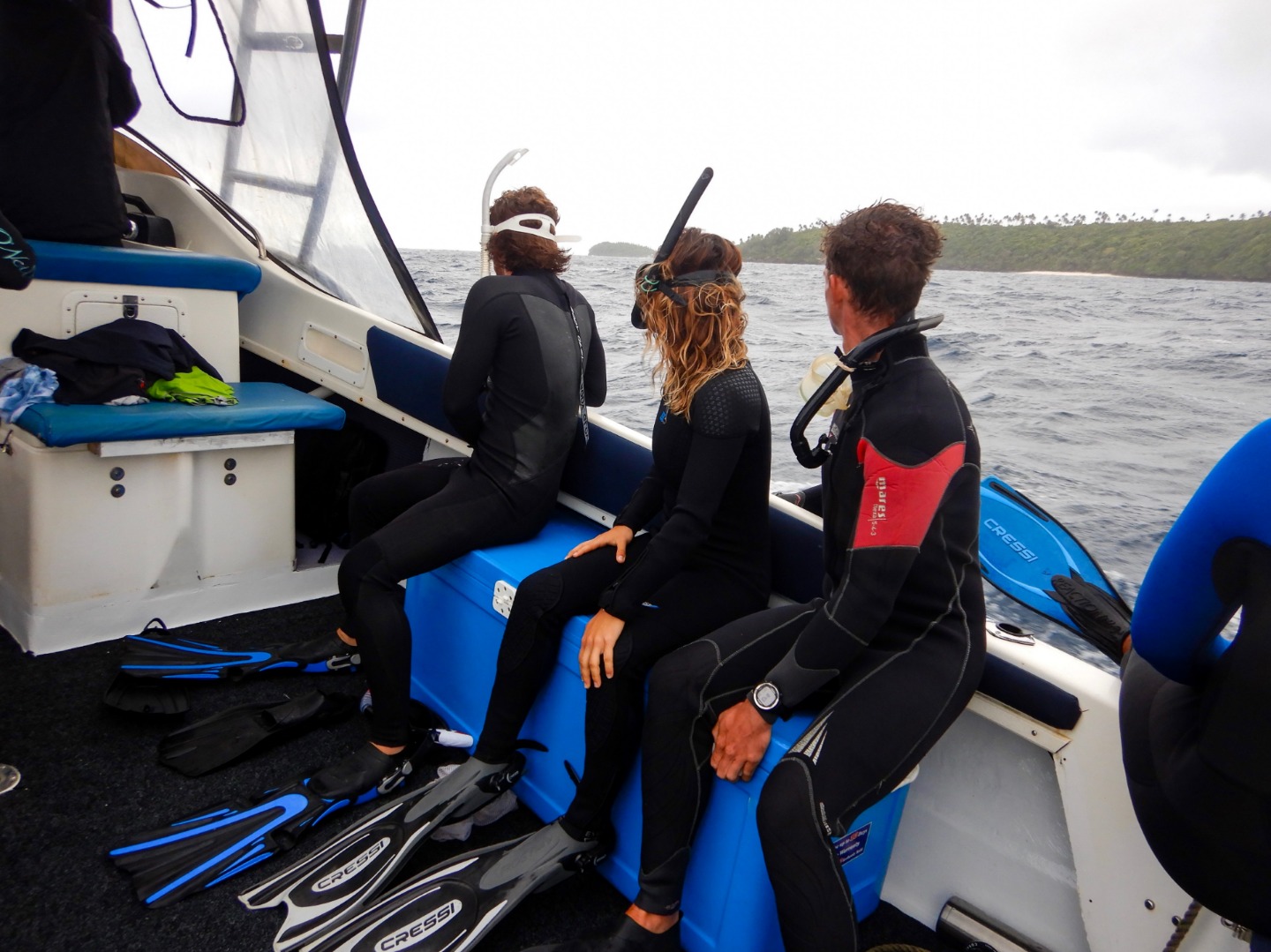 Today we had an early morning fire drill. Everyone was up at 5:30. After the fire drill, we started our day with some french toast. While most of us were cleaning, some of us were getting ready to swim with the whales. After clean-up, some people were getting ready for land, and others were getting ready for their dives. Each group went their own ways for the day. My group was diving today. We were going to start the dive off at a shipwreck we saw, then do two more dives while working on skills for Advanced Open Water. Today we all got certified for AOW on our three dives, but the most thrilling dive was the dive at the haunted ghost ship.