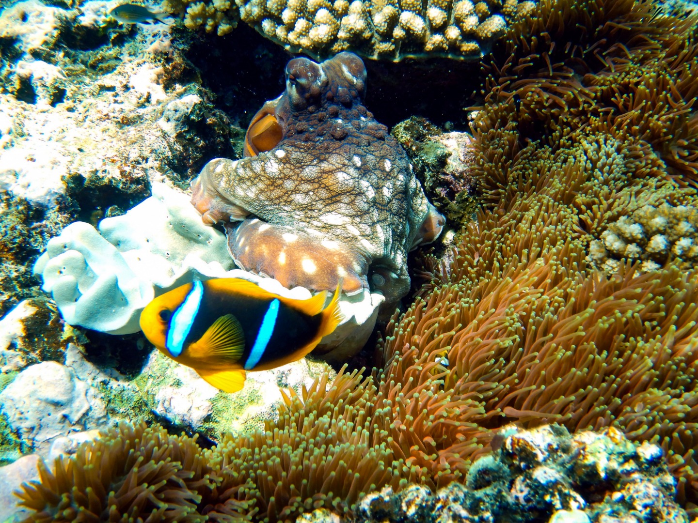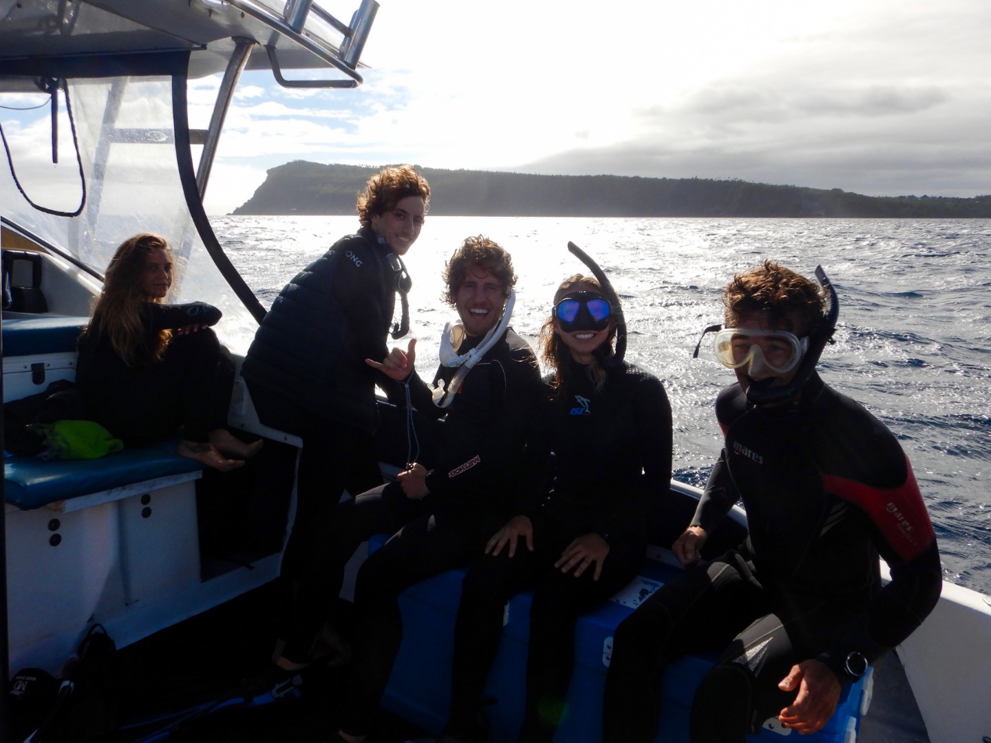 Pictured: Shelby, Rhea, Anastacia, Emily, and Coral on the way to the wreck; Emily inspecting a jellyfish while descending to the wreck; various views of the structure and marine life of the Clan McWilliam wreck; gorgeous mother and baby humpback whales; Henry, Lucy, and Tim enjoying searching for whales; Cat, Panos, Henry, Lucy, and Tim on the lookout; Henry, Lucy, and Tim continuing to search; Henry excited for whales; Lucy, Henry, and Tim dedicated to the search; Lucy excited to have spotted some humpbacks; awesome cave exploring after swimming with whales; octopus with anemones and anemonefish inside the cave; Garrison, Frank, and Sam enjoying some shore time views; Tim excited for his birthday brownies courtesy of Steph; sunset at the end of another wonderful day.mil