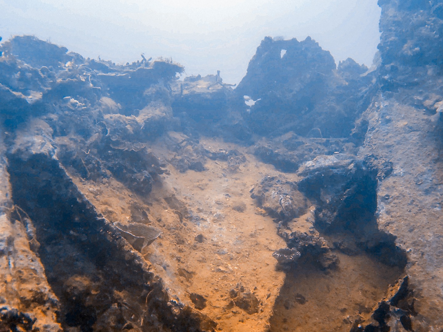 Once in the harbor, some crew members abandoned ship, but only the brave ones stayed. The captain and 28 others were still on board, trying to put the fire out. Once the fire got too big to put out, the captain knew the only way to save the boat and the rest of the crew was to beach the boat. While he was trying to run the boat aground, one of the 28 crew members, the engineer, locked the captain in the captain’s room. They did not have enough time to beach the boat, and the boat started to sink. The sinking of the ship took the lives of 28 crew members and the captain. The boat now sits at the bottom of the harbor waiting for people to dive it and relive the history of the boat. While diving the boat today, you could feel the presence of the crew on the boat. Looking into some holes of the boat felt like looking back into history and seeing the crew scrambling to save the boat. You could see where the boat gave out in three different compartments. The visitability was murky and gave off a spooky feeling.