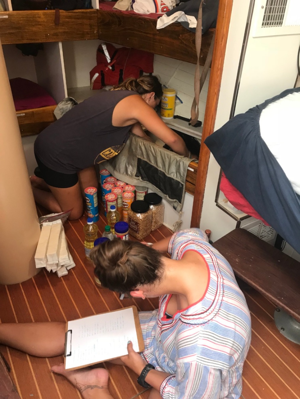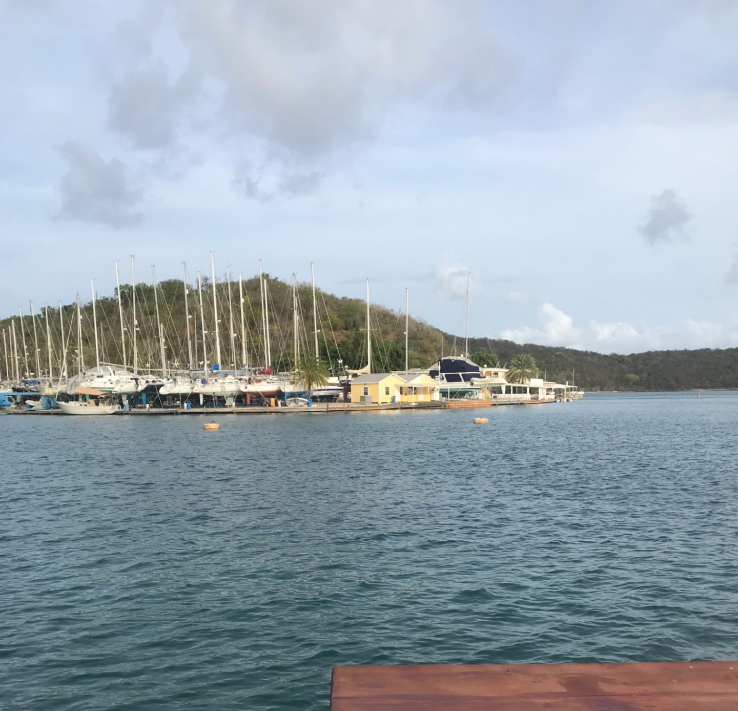 This morning, the crew got to sleep in until 8 for the first time. We then enjoyed a much-appreciated breakfast of waffles, bacon, and sausage, compliments of Ian. After eating, we began Boat Appreciation. We spent a while cleaning, tidying, and scrubbing both above and below deck, taking inventory of supplies, and fueling up at the fuel dock. Once the boat was squared up, we ate lunch and prepared to dock on the other side of the channel at Nelson’s Dockyard. Upon securing the boat to the dock, we gathered in the cockpit and began a Seamanship lecture on safety.