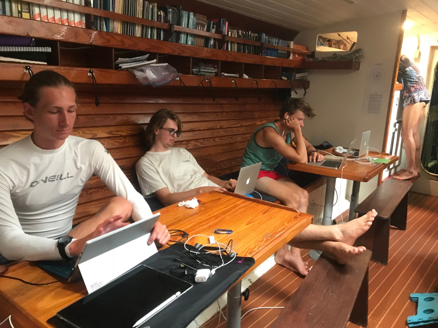 In the afternoon, we had study time to work on our assignments and study for our upcoming quizzes and midterms. We took advantage of the extra space that the dockyard provided and spread ourselves out over the boat and the dockyard to study. At dinner time, we were called back to the boat for grilled cheese and tomato soup.