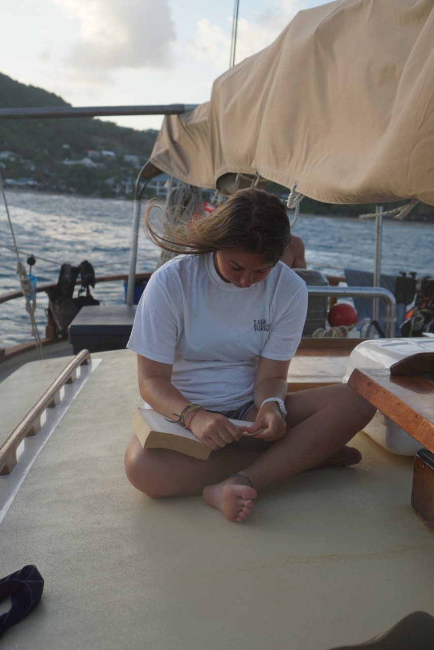As I looked at my watch, the time read 6:55 am, and I slowly rolled out of my bed to wake up the troops. I turned on my speaker and clicked on the happiest song I could think of, Here Comes The Sun by The Beatles. My goal is to wake the crew up with as much ease and grace as possible. Well, unless youre Duncan and Matty. They wont budge an eye unless you physically drag them out of bed. We began our day with some cereal as we looked out at Friendship Bay and took in the beautiful morning sunshine. The Open Water crew started the morning with their last dive to mark the end of the course. Our highly trained individuals, Kelsay, Matty, Will, Elle, and Duncan, are all officially PADI Open Water divers! The entire dive crew is now joining in unison with the rest of us and delving into the world of advanced skills and camaraderie. While they finished up their dive, the rest of the boat got a few quiet hours of study or nap time. Friendship Bay has given us a nonstop supply of swells, and we have resorted to sleep and chocolate at all costs. As lunchtime rolled around, we enjoyed some Thai peanut chicken made by my favorite sous chef, Kelsay. While we were eating, we all spotted a man in a dinghy curiously looking at our boat. As he approached the boat, he asked Steph if we were a Seamester vessel and if she knew Ian Wiggin. It just so happened that an old friend of Wiggys was in the same anchorage as us! What a small world. In the afternoon, I got to go diving with Scuba, Steve, and Peyton, and we went through a few skills, including equipment exchange, where we had to switch our fins, BCD, and mask, all while sharing a regulator between the two of us. It was quite a thrilling yet nerve-wracking experience, and it taught me the importance of staying calm and collected underwater when things get a little uncomfortable. The rest of the day was spent with more downtime, followed by showers and a delicious Caribbean chicken dinner.