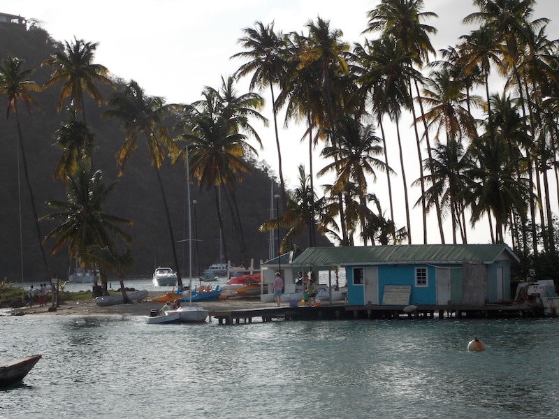 Climbing up the companionway was particularly pleasant this morning as we awoke with that fresh smell of rain. The sun rose up over the Petit Piton and greeted us with a new day. First up, a bit of Oceanography knowledge with Ivy on deck. Afterward, we cleared the deck, stowed the dive gear back down in the lazy, and said our farewells to the majestic Pitons. Now that our sexy lady Ocean Star was looking good again, we raised the hook, cast off our stern line (attached to a palm tree onshore), and then we were off! Continuing our journey north as we headed up the luscious green coast of St. Lucia for about 7 miles, where we then ducked into Marigot Harbour. Here, we sit pretty on a mooring ball amongst all the other cruisers and yachties alike. After a bit of shore exploration, the crew found some shore showers and laundry facilities to get their “so fresh and so clean” on. At the moment, we all are anxiously awaiting Noah and Ivy’s special Chili concoction for dinner. Post dinner, we plan to head into a little local hot spot named Doolittle’s, so named because it was a set for the original Dr. Doolittle film!