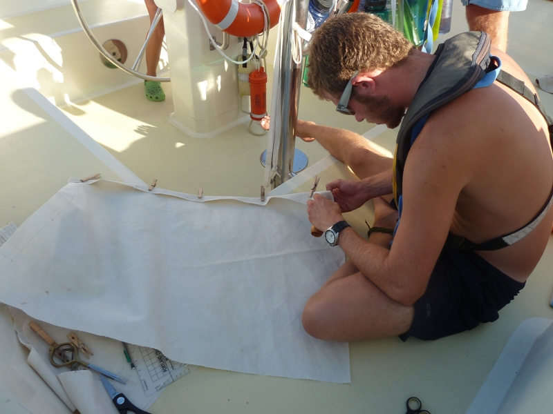 As we enter the final day of our Atlantic Ocean crossing, we are all amazed by the amount of water we’ve covered, the ease with which we take rapid-fire on-deck instructions, and how normal it is to cook a meal for 30 people while experiencing intense rocking. Two weeks after we depart from Cape Verdes, we’re all a lot tanner, a lot closer to one another, a bit saltier, and extremely grateful for the life that we’ve all been living together for the past two and a half months. Today, like most days while we’ve been underway in the Atlantic, consisted of waxing, polishing, hanging out in the saloon, napping, snacking, class time, good food, and lots of smiling and sweaty shipmates. After lunch, Kris led our last Oceanography lecture for this semester, while Matty introduced us all to the animals that live amongst hydrothermal vents during our Marine Biology class. Today, like the past two weeks, was ridiculously hot and sunny, and we all smelled again just a few hours after our refreshing on-deck afternoon showers. Those taking the Professional Skipper Course were able to relax a little bit today after taking a test last night, though they continue to study for another test coming up in a few days. After a delicious dinner of tuna casserole (with fresh Mahi Mahi mixed in!), one of the shipmates, Spencer, taught the group quite a lot about facial hair, which was very cool but more applicable to the 15 male shipmates than the five girls. As I write this, I must, unfortunately, report the distinct rumbling of the engine we all hear and the familiar vibrations it causes under our feet; right before dinner, the wind decided to do something funky, and we had to drop the mainsail. We’ve sailed for an unbelievable and history-making (for Seamester!) amount of this crossing. We are all hoping that the wind will pick up tomorrow morning and that we will be able to continue our sail towards the island of Dominica. It is so hard to believe that two weeks have flown by so quickly.