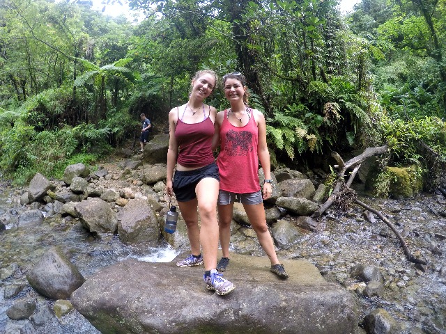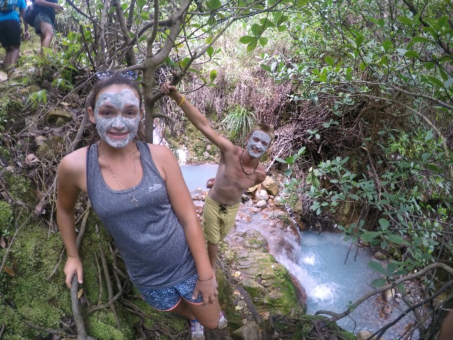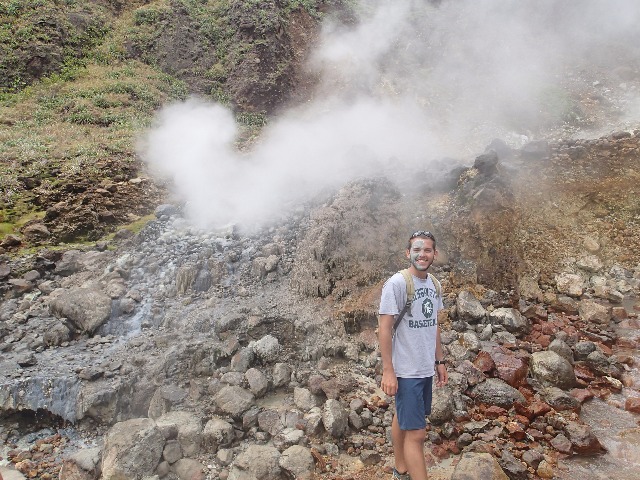 After a short swim, we filled our water bottles with fresh water flowing off a leaf on the edge of the trail. It was very exciting, and several people felt the need to take a selfie to remember the magnificent moment. Hydrated and refreshed, we continued on. Up and up and up we went, and then finally, we saw the steam rising from the boiling lake. At the top, we enjoyed peanut butter and jelly sandwiches and enjoyed the view. After lunch, it was time to head back. After a long trek back, a frigid, freshwater waterfall was waiting for our sore, tired, ached bodies. We jumped in, washed all the mud off our shoes, and explored before heading back to Argo for a relaxing evening.