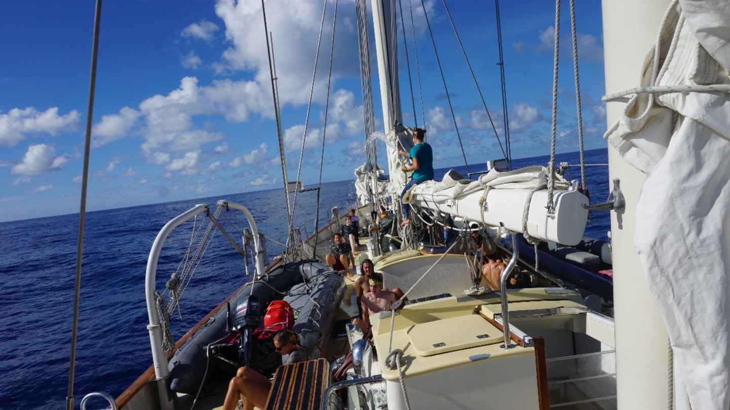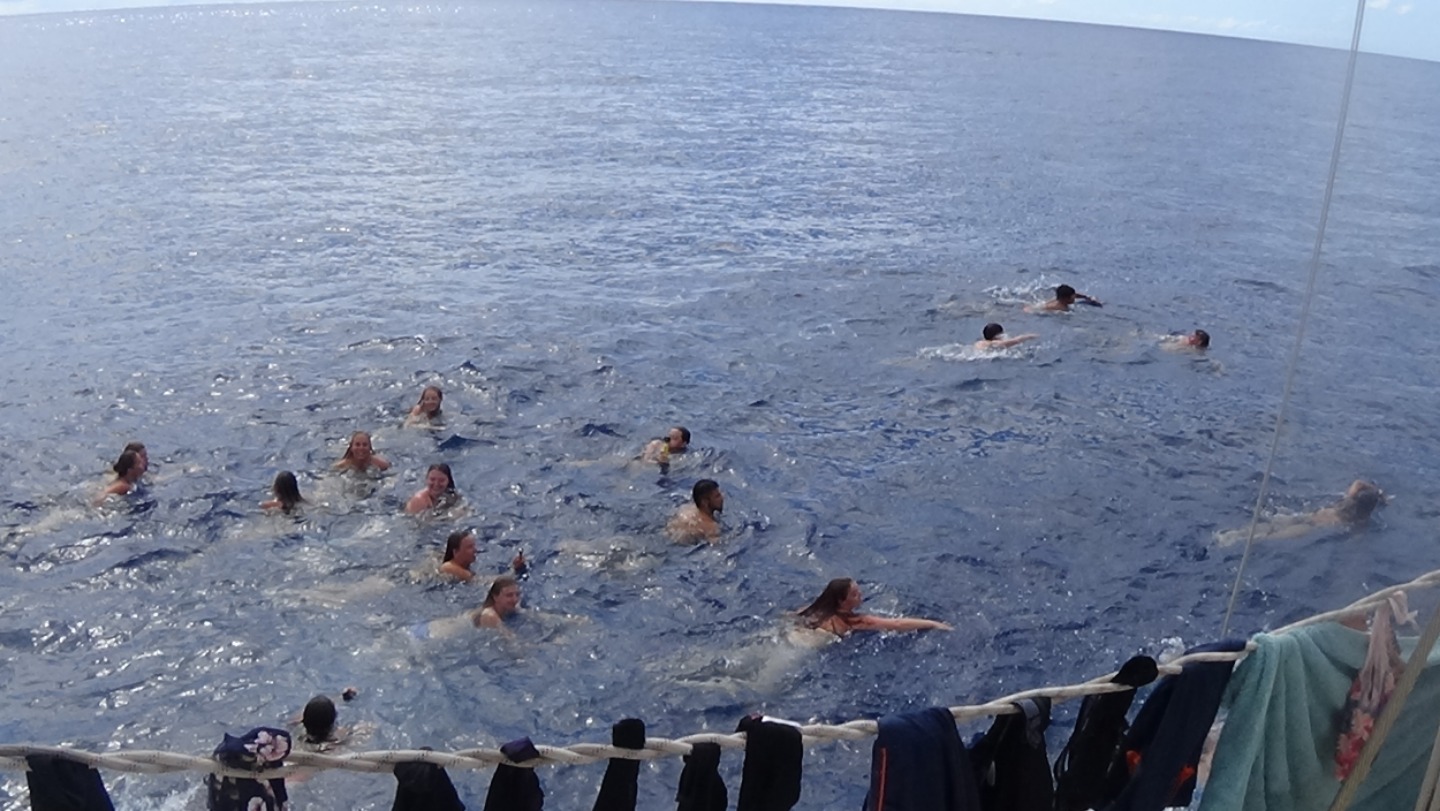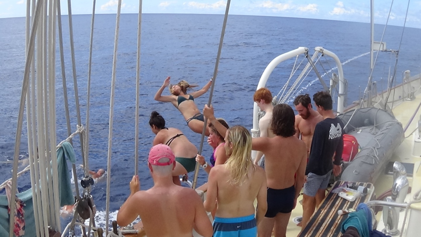 After our Leadership class on mediation, Ben started to slow down the boat. We all hopped off by doing backflips, cannonballs, pencil jumps, and belly flops, and continued to swim across the 0 Latitude line. We all think its cool that were able to say we crossed the Equator while sailing in the Atlantic so, literally the middle of nowhere – as opposed to just off the coast of Brazil or a similar place.