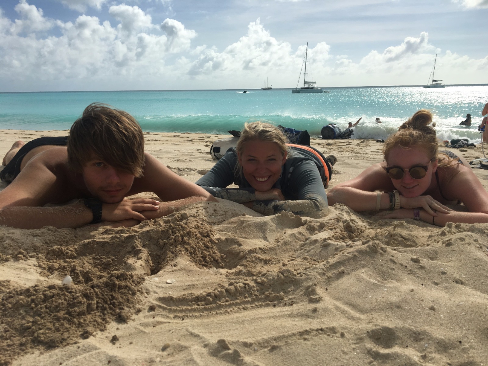Today, the crew of Ocean Star awoke to the clear blue waters and white sandy beaches of our first full day in Barbuda. The majority of the morning was spent with the students hard at work in class studying navigation in PEN. Those students who are taking the rescue diver course suited up early and jumped into the water to practice rescue maneuvers. Their main goal today was to learn how to get an unconscious victim out of the water and into the dinghy safely.