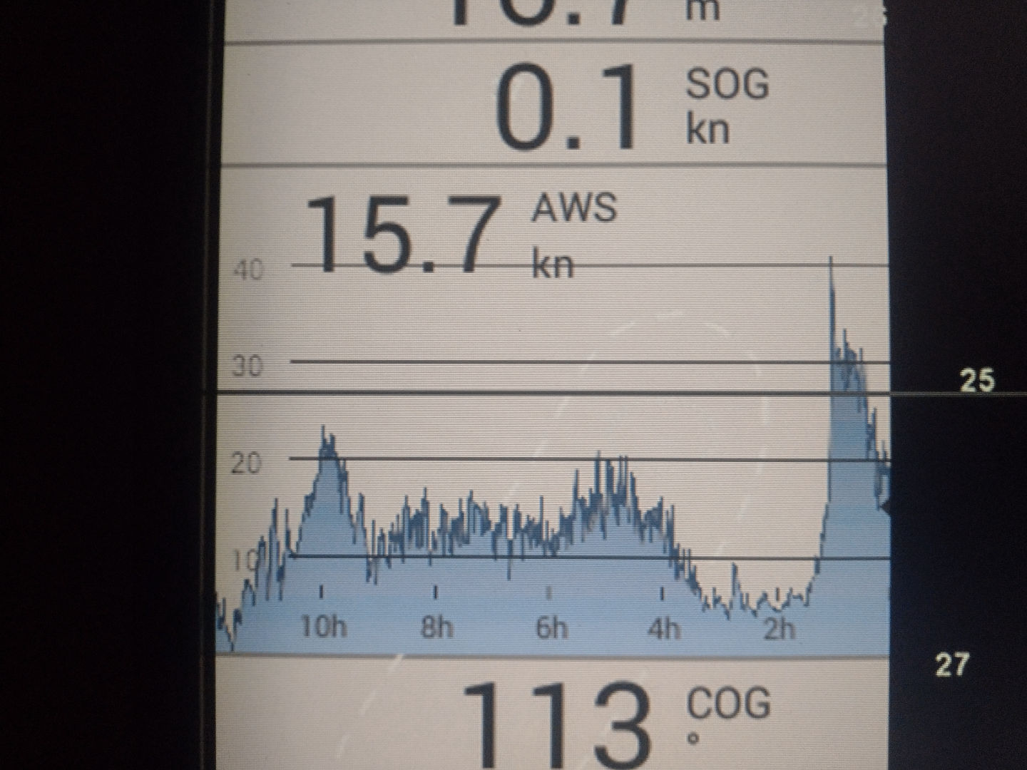 Or so we thought! At about 2200, a sudden squall decided to descend upon the entirety of northern Sardinia (apparently reaching Rome even!). As we were anchored in fairly shallow water and our position was compromised, we quickly pulled anchor, made our way north through the channel to the nearest island, and took shelter. All the while watching lightning surround us, and other vessels maneuver quickly, responding the same way. Thanks to Tom and all of the crew onboard, everything went smoothly! But wow, what an eventful evening.
