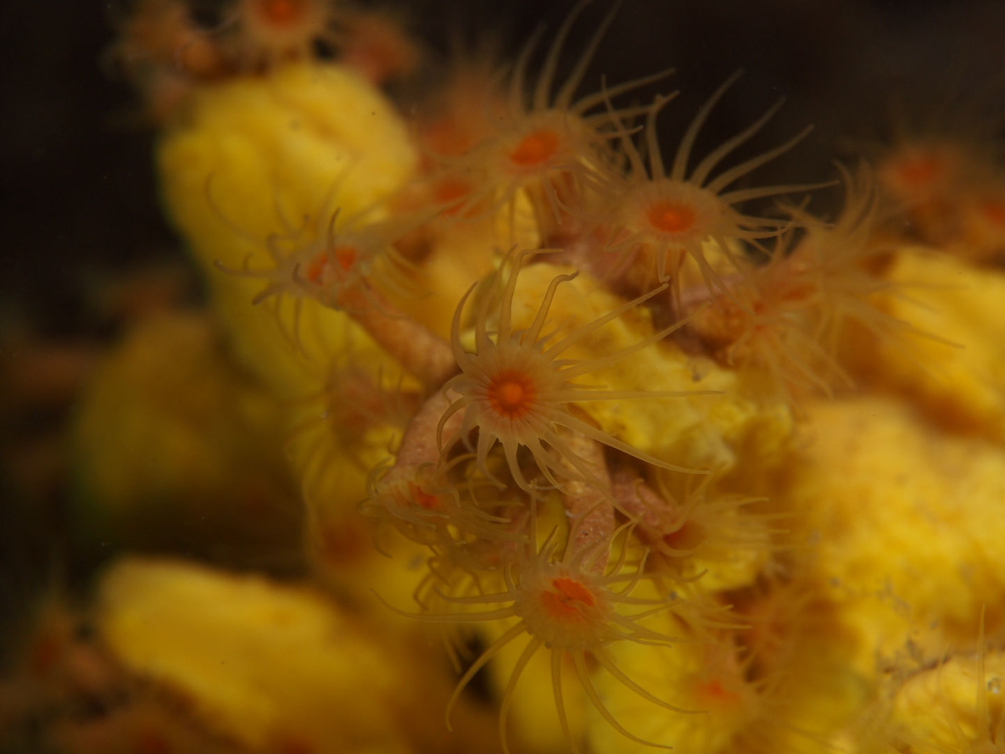 6. Zoanthids under the crevices inside the swim through (Parazoanthus axinellae)